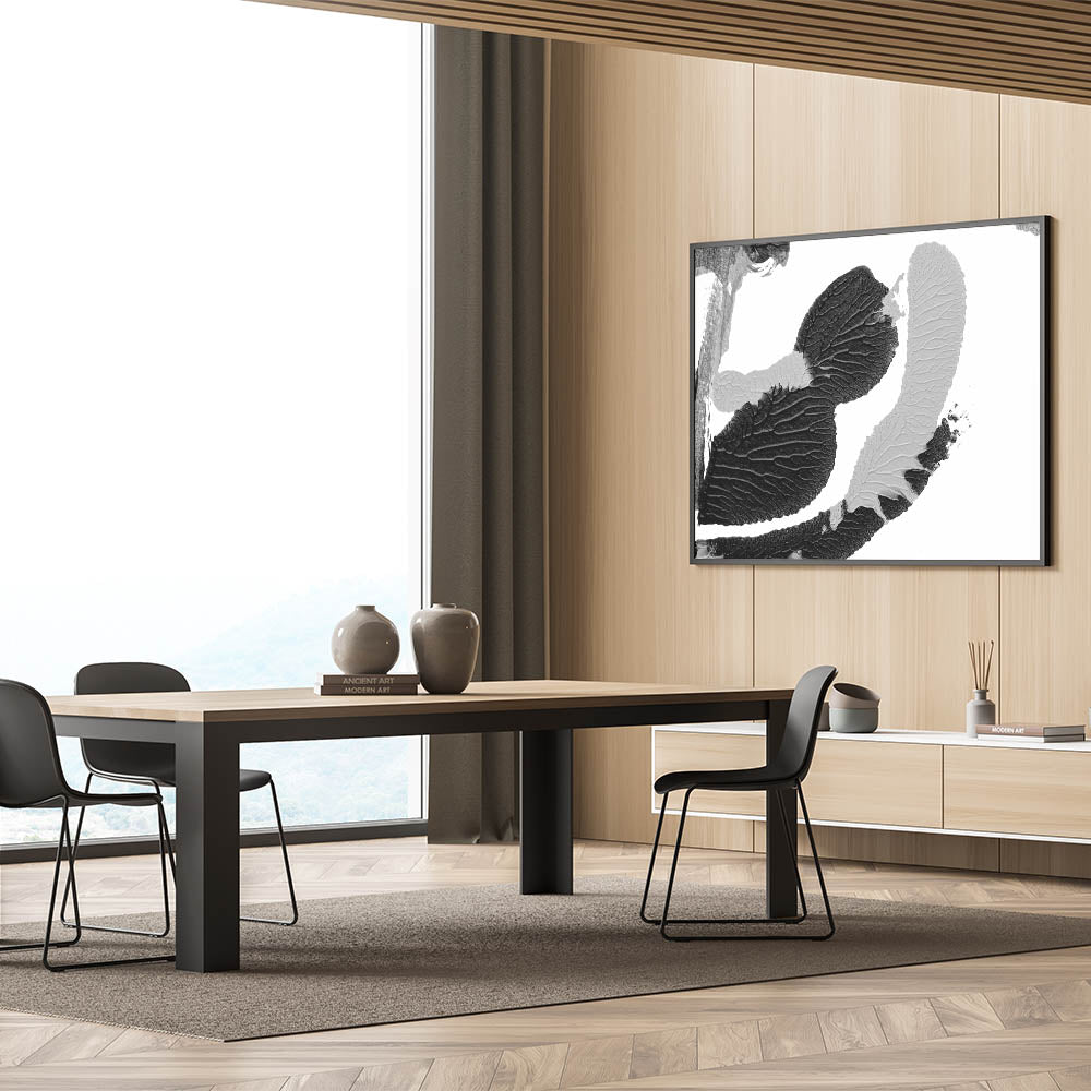 This stunning black and white art piece is more than just a decoration; it's a statement of texture and modernity. Its unique textured pattern and artistic monochrome design make it a versatile addition to any decor. Whether you choose a framed canvas or an acrylic glass option, this piece promises to elevate your space with its elegant and contemporary appeal.