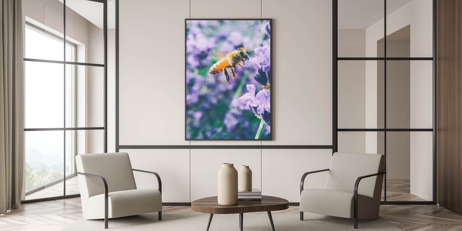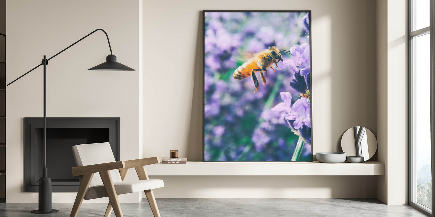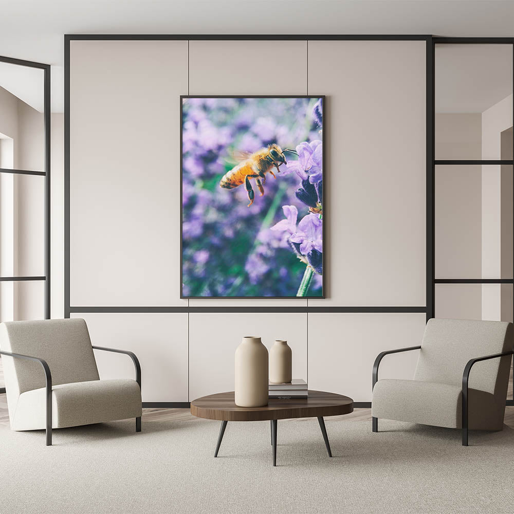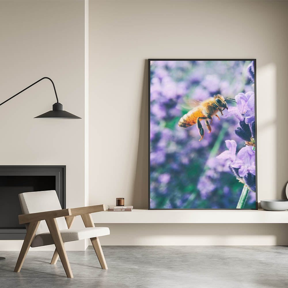 This Spring Art Print brings a sense of harmony and natural elegance to any space. The combination of lavender’s soft purple tones and the bee’s golden hues evokes a feeling of warmth and serenity, making it a soothing yet vibrant decor piece. Whether you're a lover of floral artwork, fascinated by pollinators, or simply looking to refresh your space with a spring-inspired design, this print is a stunning choice.