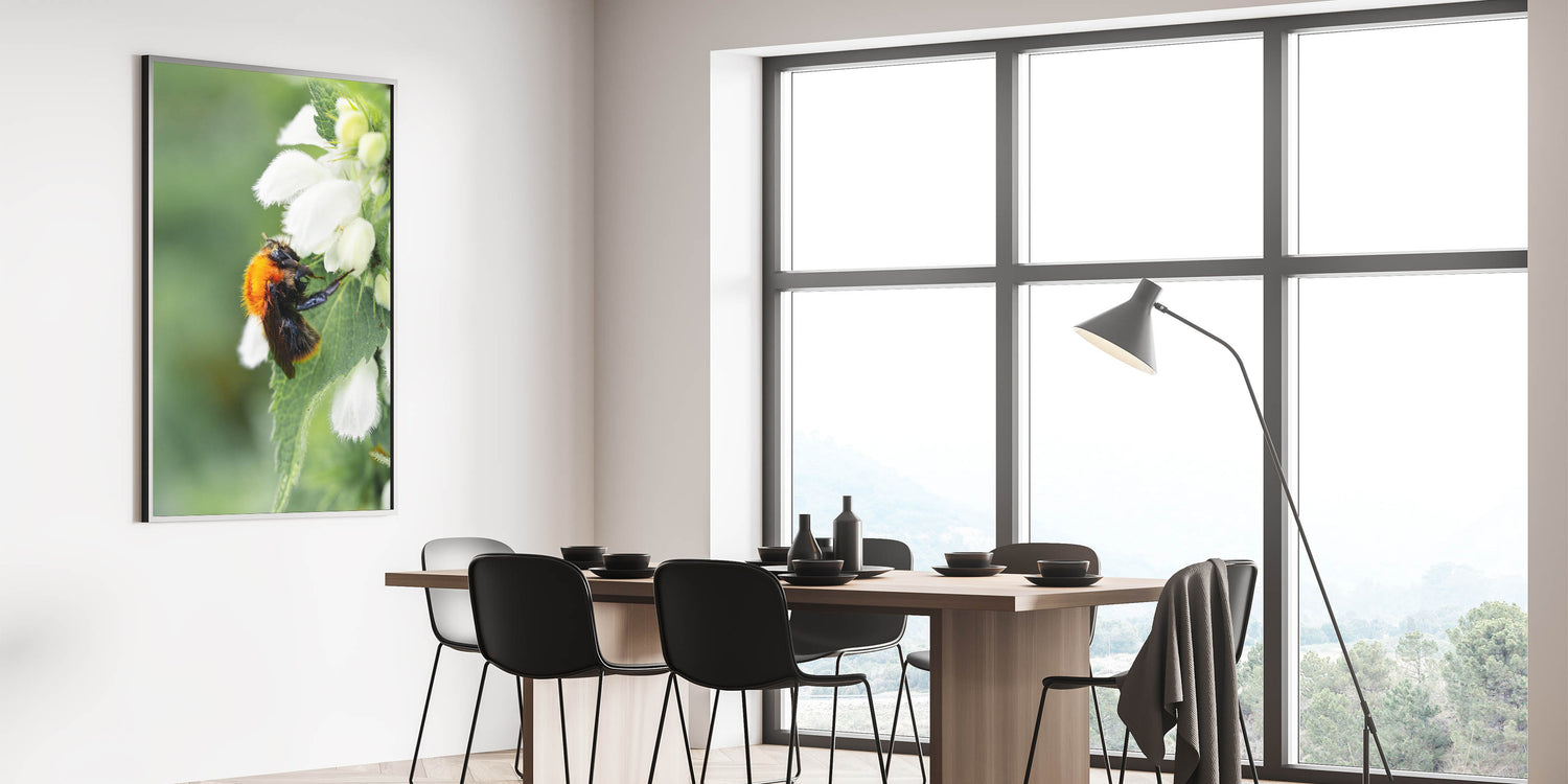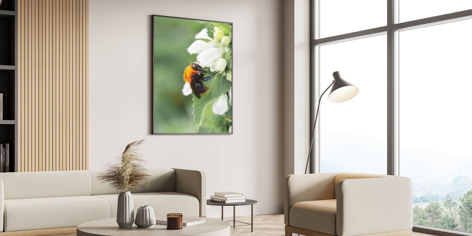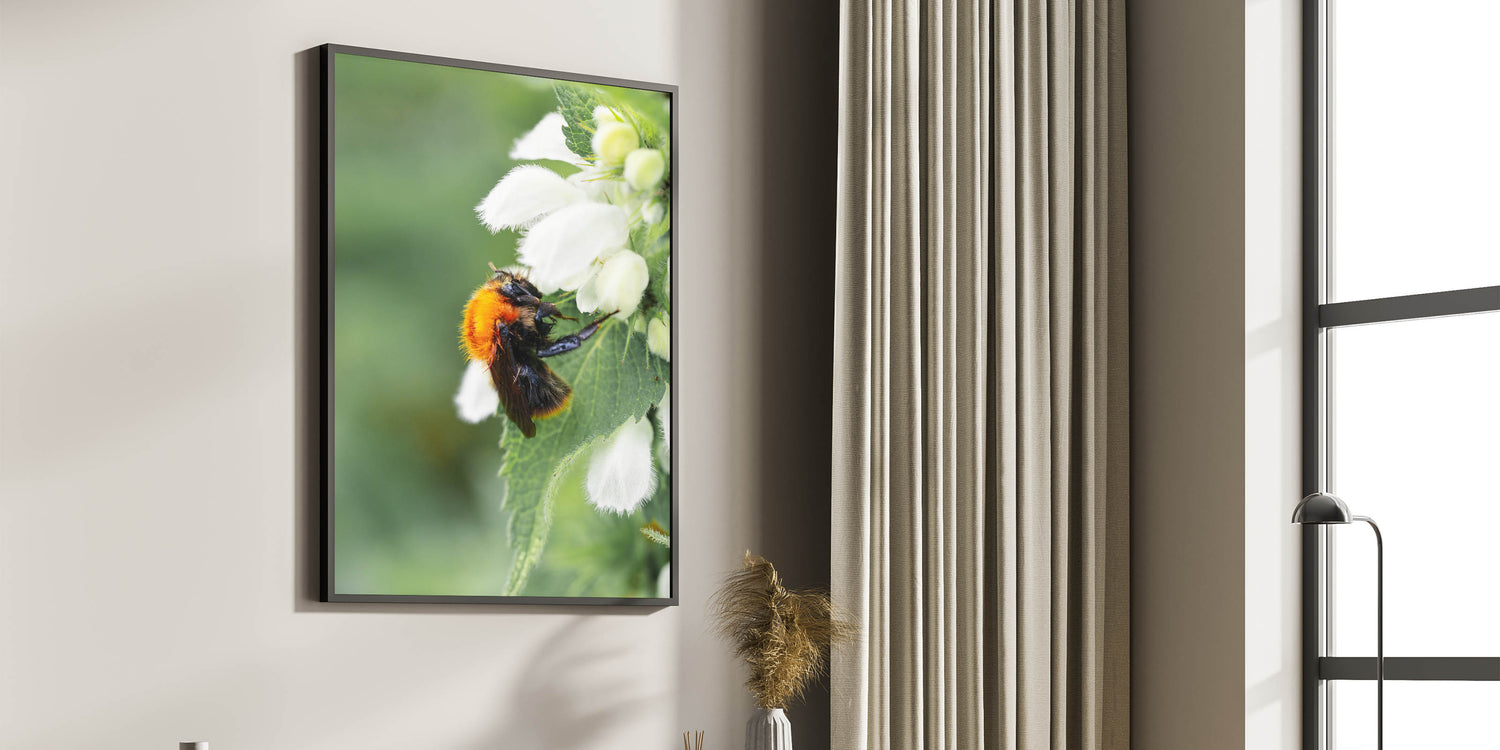 Capture the essence of spring with this stunning Spring Wall Art, featuring a vibrant bumblebee pollinating delicate white flowers. This close-up macro shot highlights the intricate details of nature, from the bee’s fuzzy orange and black coat to the soft petals of the blossoms. The harmonious blend of green, white, and golden hues creates a visually striking composition that radiates life and energy. This Botanical Wall Art is perfect for anyone who appreciates the beauty of nature and the importance of pollinators in our ecosystem.