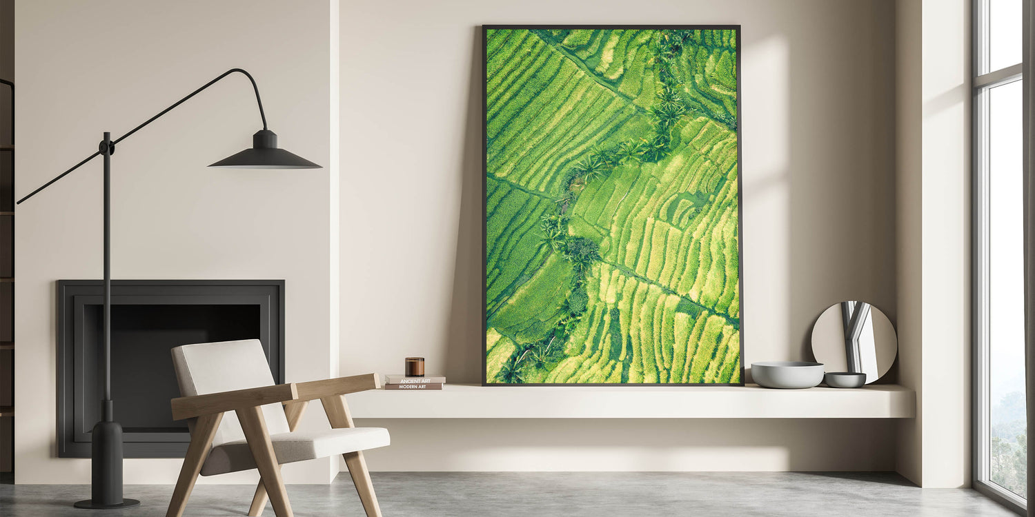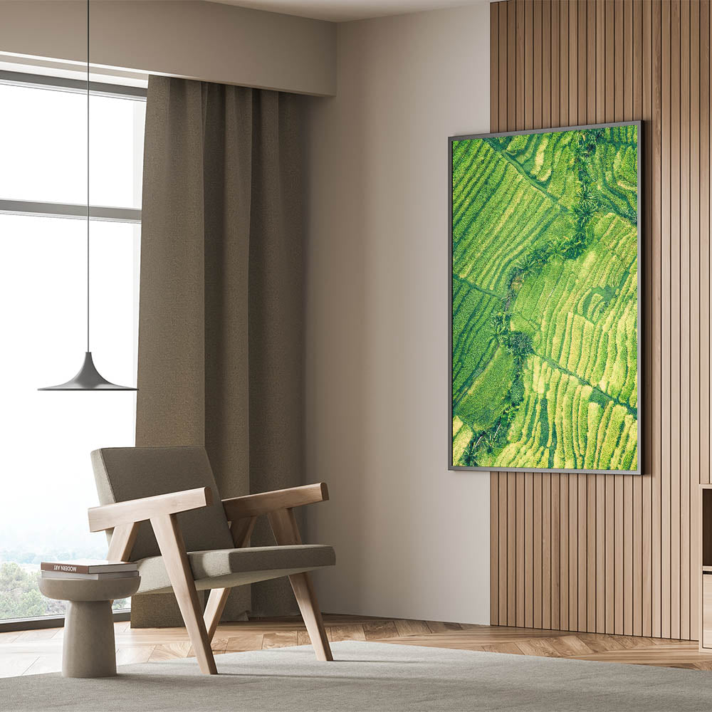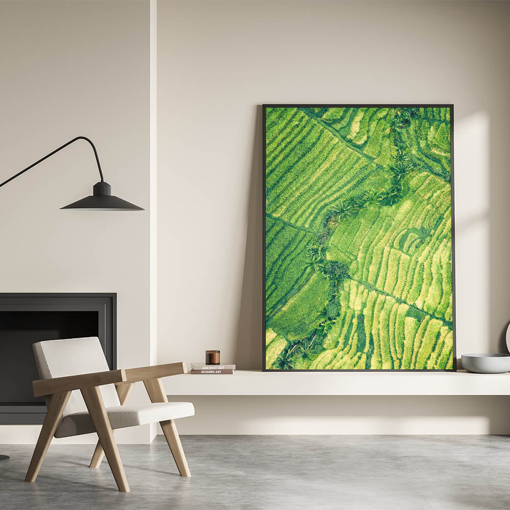 Bring the essence of nature into your home with this Spring Landscape Wall Art. This breathtaking aerial view of lush green fields and rolling landscapes captures the renewal and vibrancy of spring. The intricate patterns of the rice terraces, highlighted in various shades of green, create a mesmerizing composition that symbolizes growth, harmony, and peace. Whether displayed in a modern or rustic setting, this Spring Wall Decor adds a refreshing natural touch to any space.
