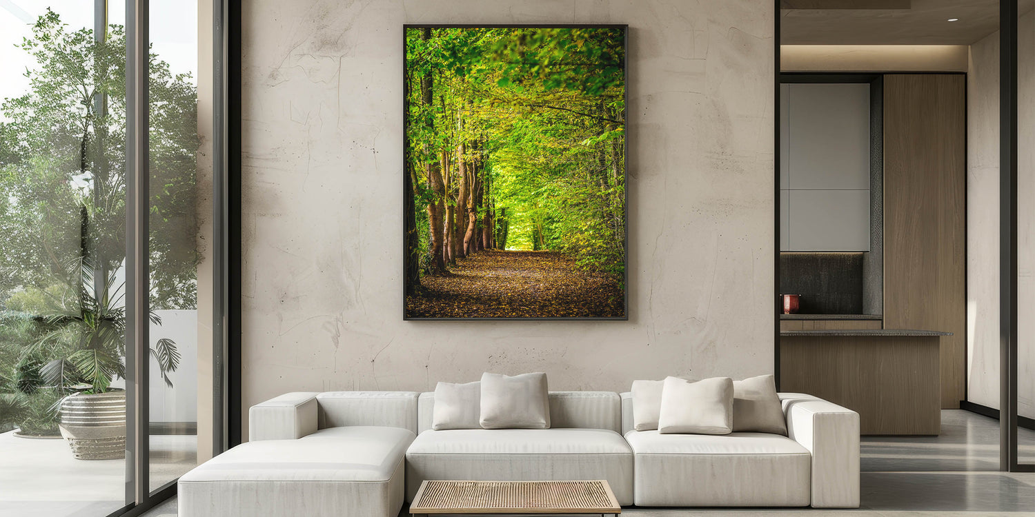 Immerse yourself in the serenity of nature with this Spring Landscape Wall Art, capturing a stunning woodland path surrounded by lush green foliage. The dappled sunlight filtering through the trees adds warmth and depth, making this Spring Canvas Art a soothing and refreshing addition to any space.