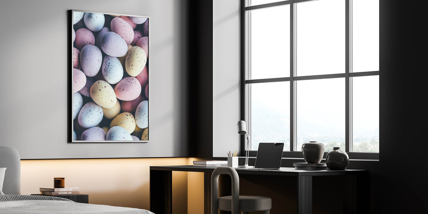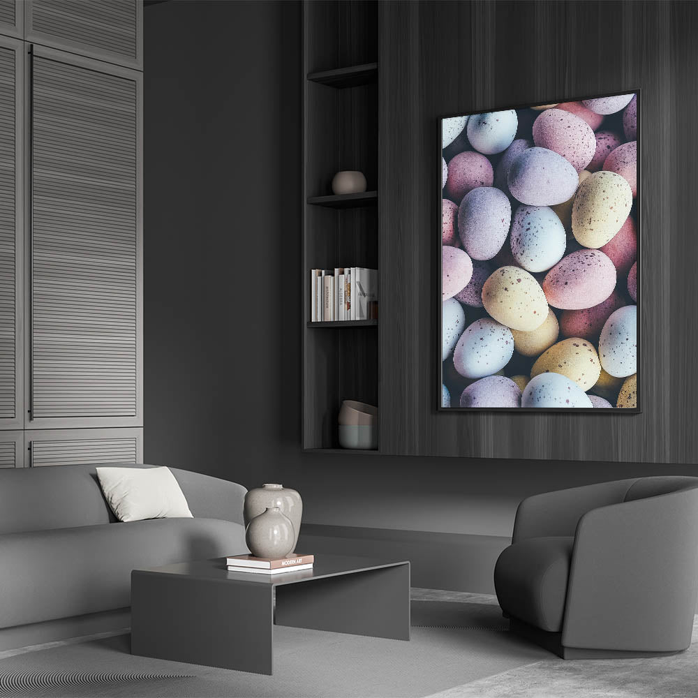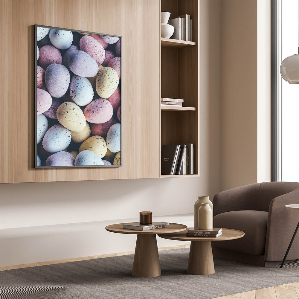 Spring Wall Decor – Close-Up Pastel Easter Eggs Art Print