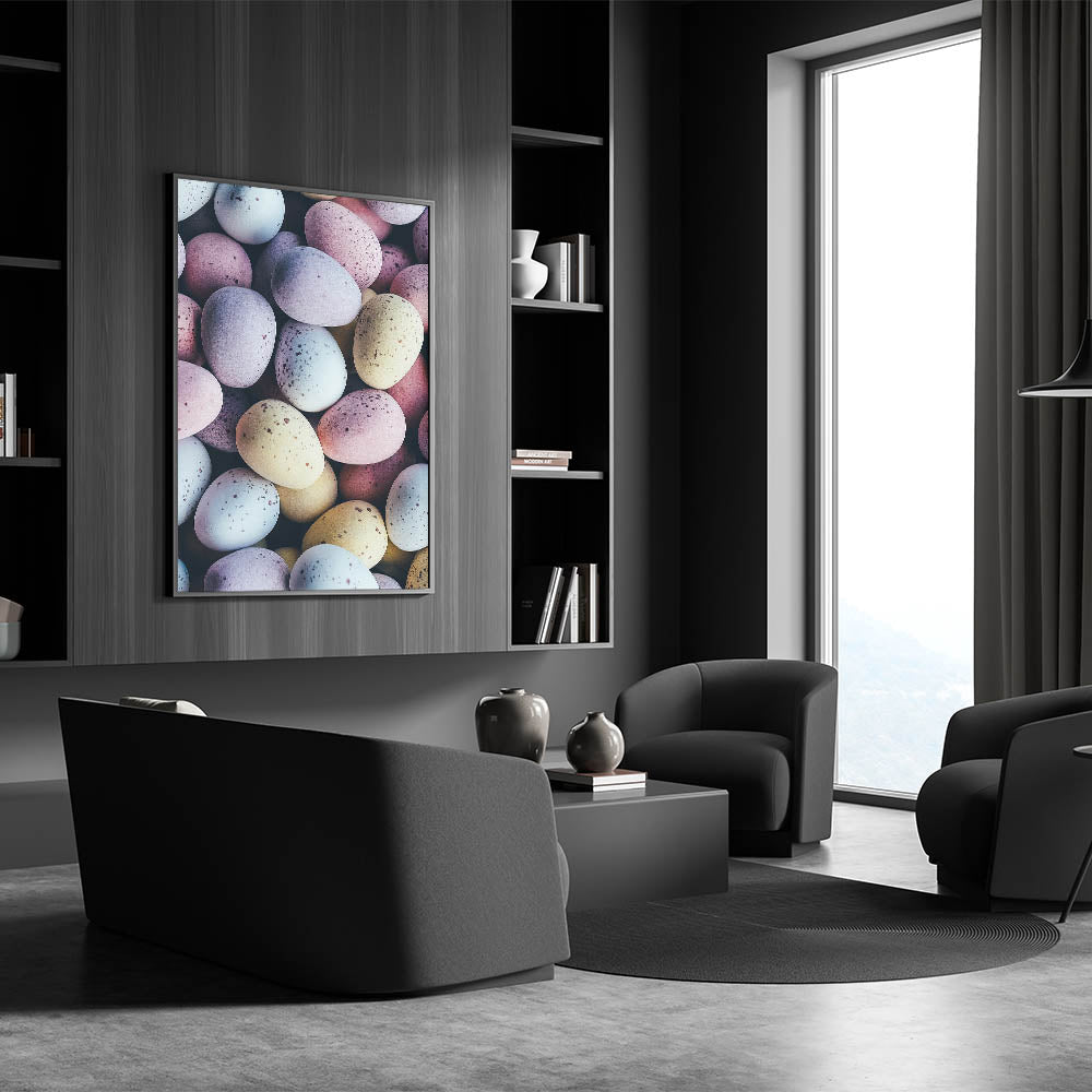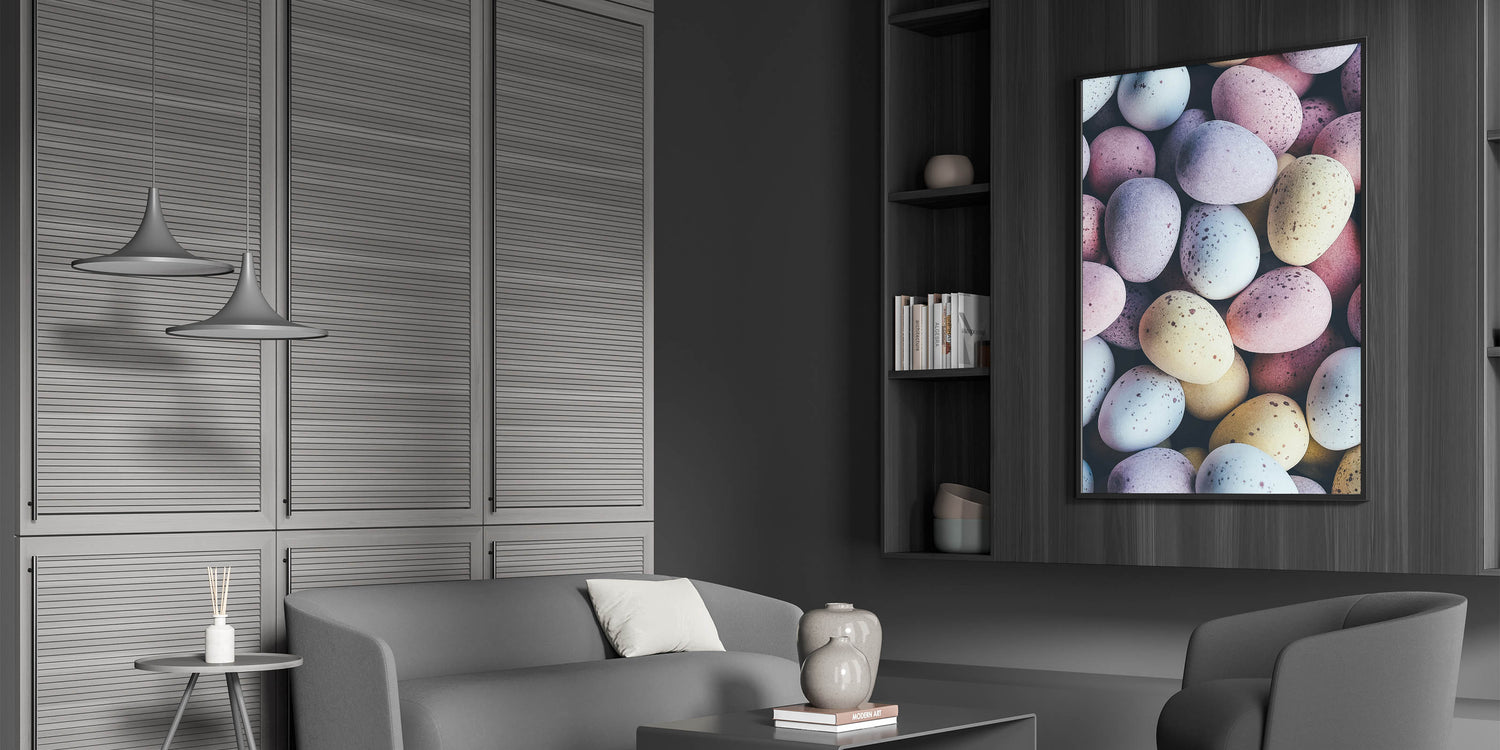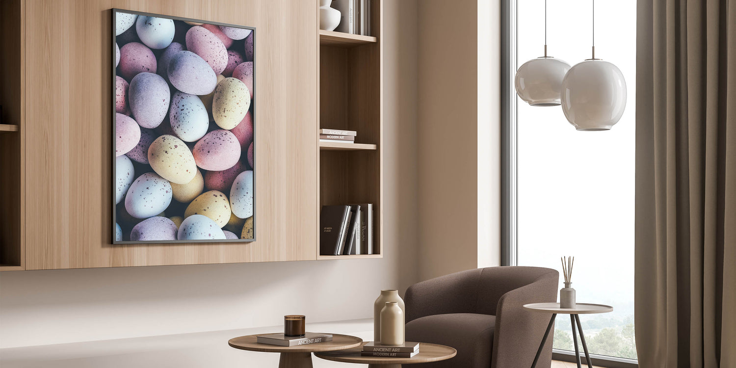 Spring Wall Decor – Close-Up Pastel Easter Eggs Art Print