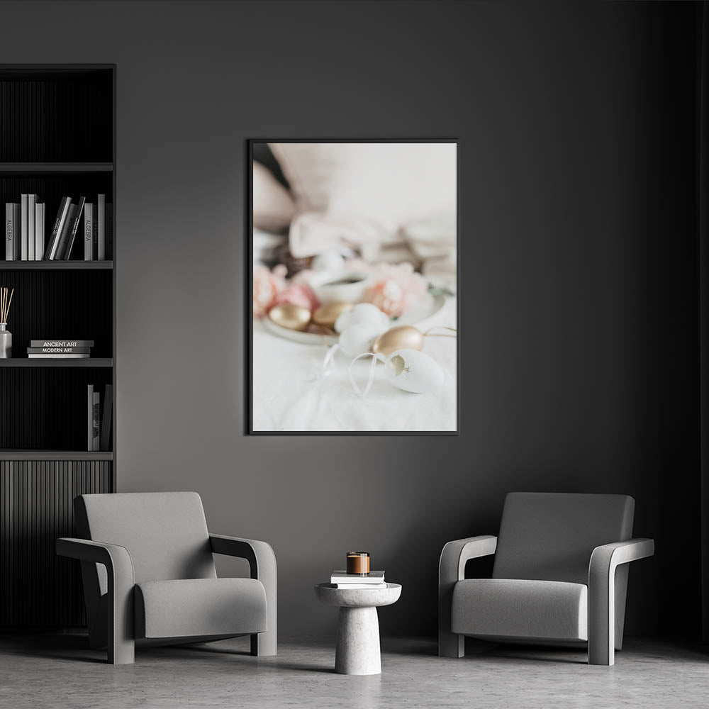 Celebrate the elegance of spring with this sophisticated Spring Wall Art, featuring delicate white and gold decorative eggs set against a soft, dreamy background. Paired with blush pink flowers and cozy neutral tones, this composition exudes warmth, serenity, and a refined seasonal charm. Whether displayed in a dining room, bedroom, or living space, this Spring Canvas Art brings a graceful and festive touch to any decor style.