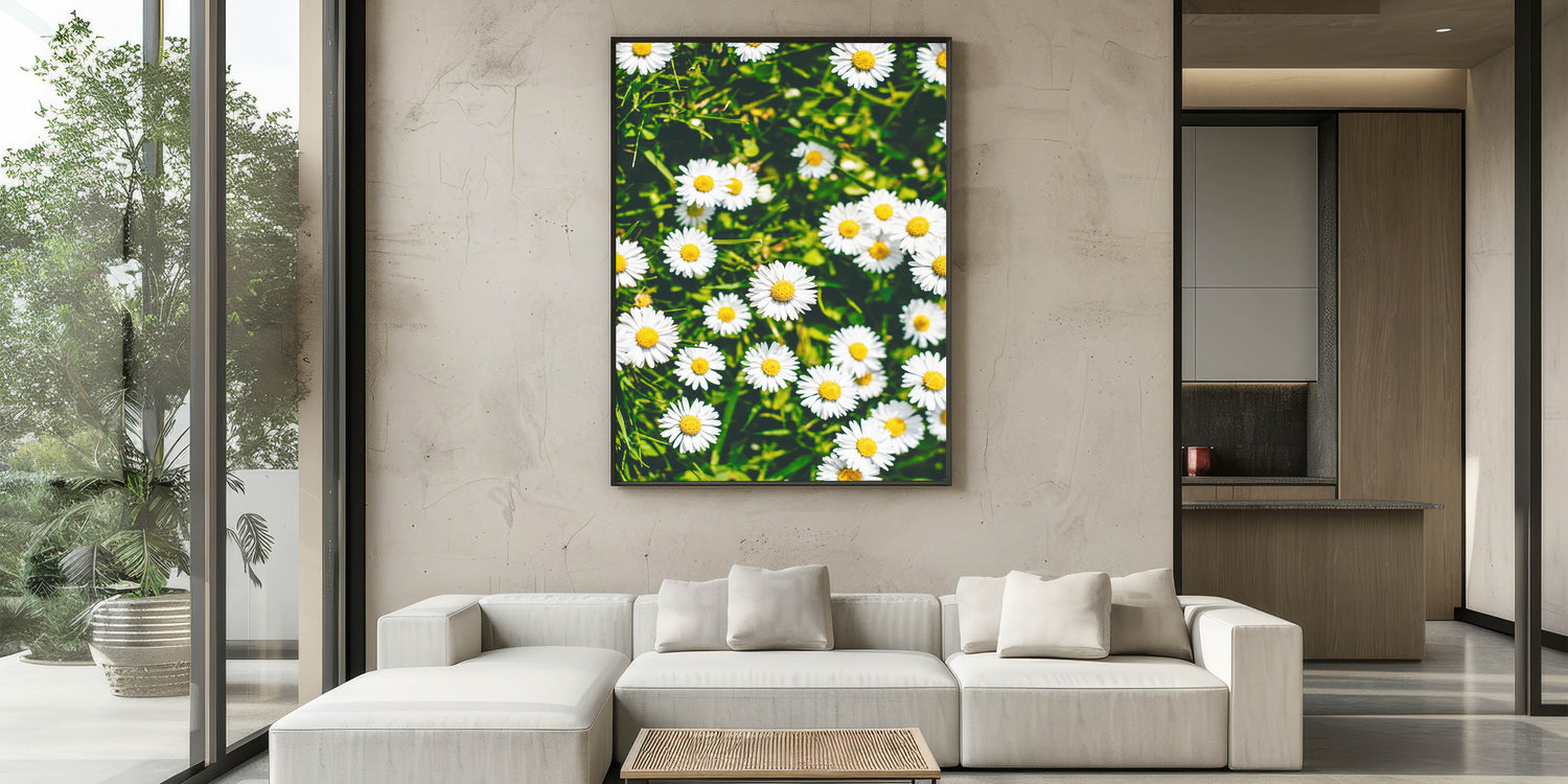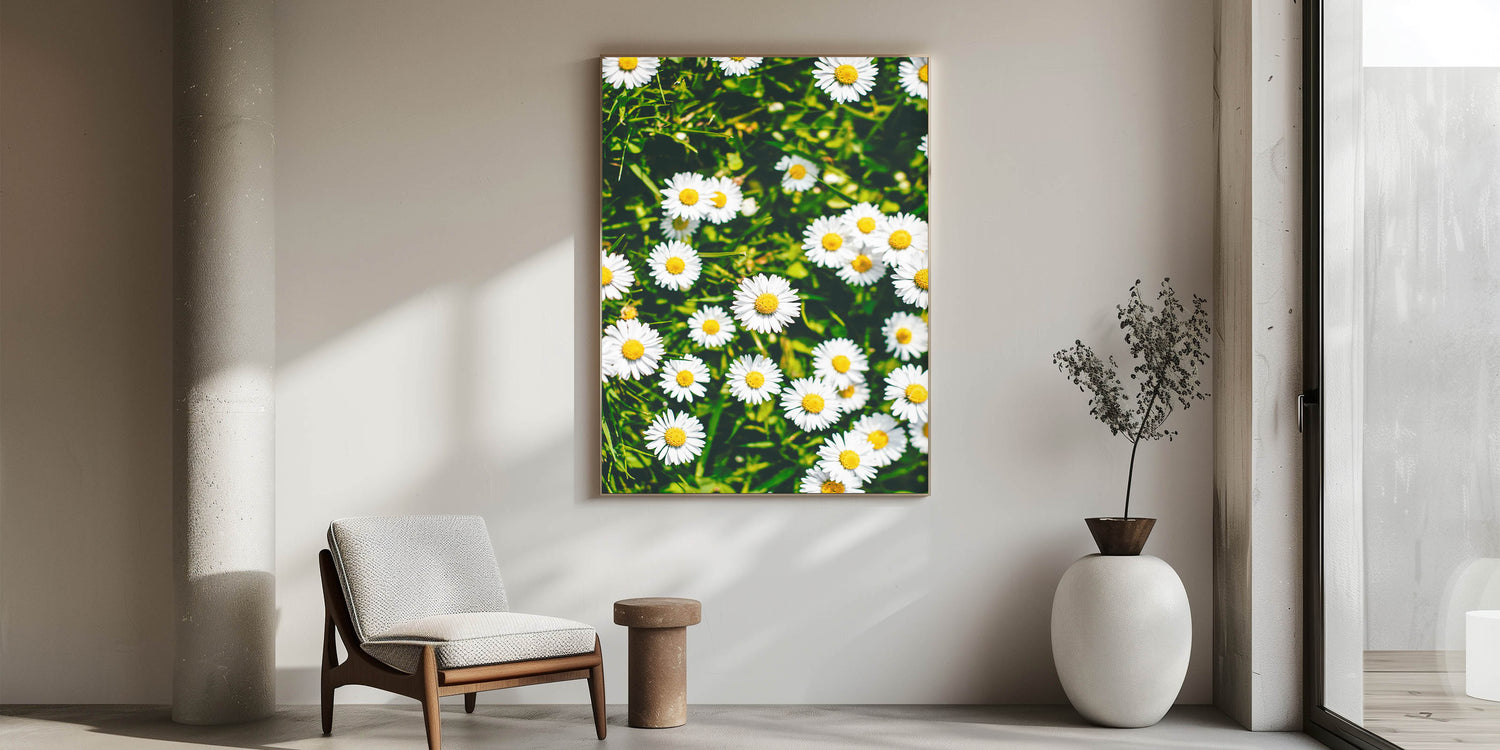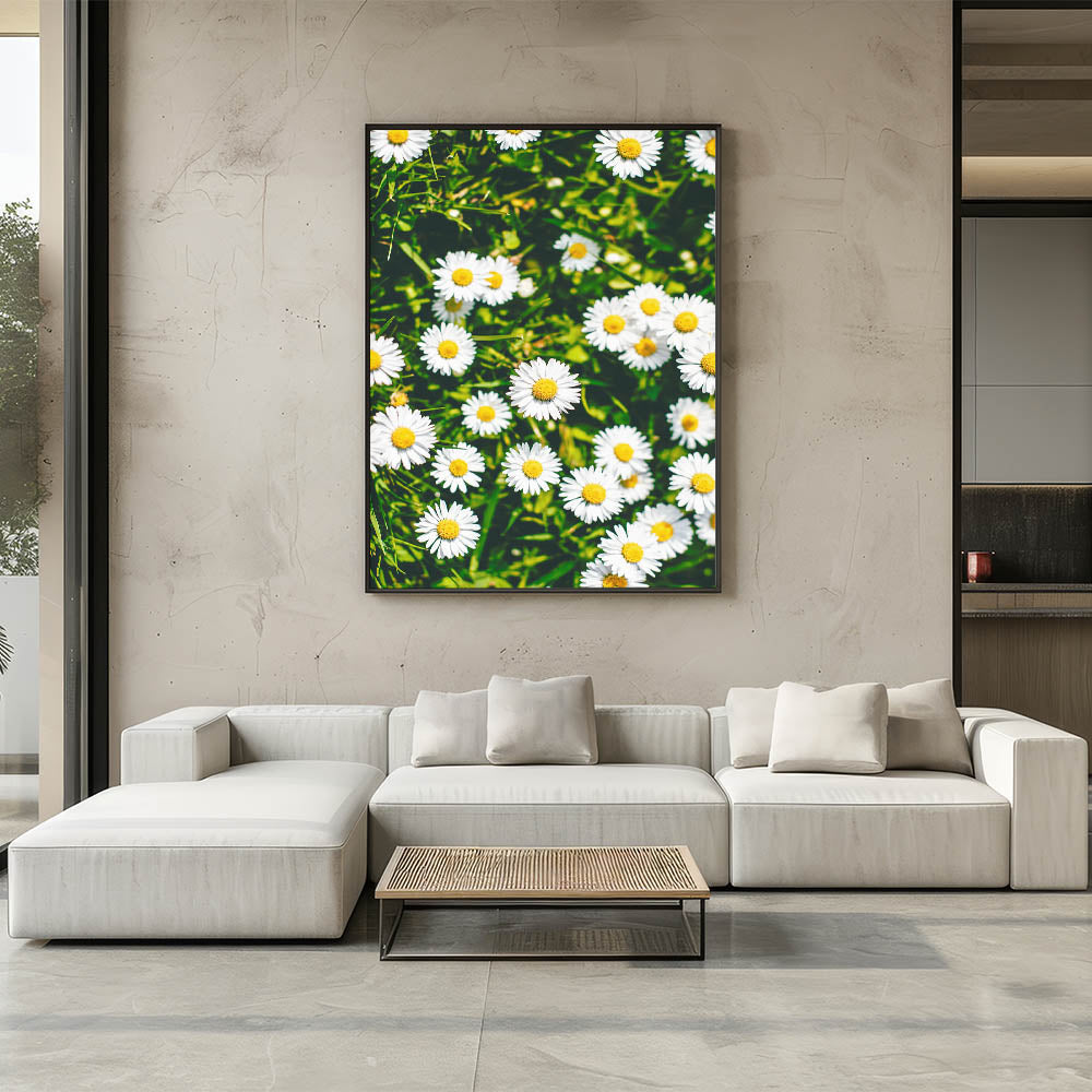 White Daisies Floral Field - Spring Wall Art Botanical Canvas