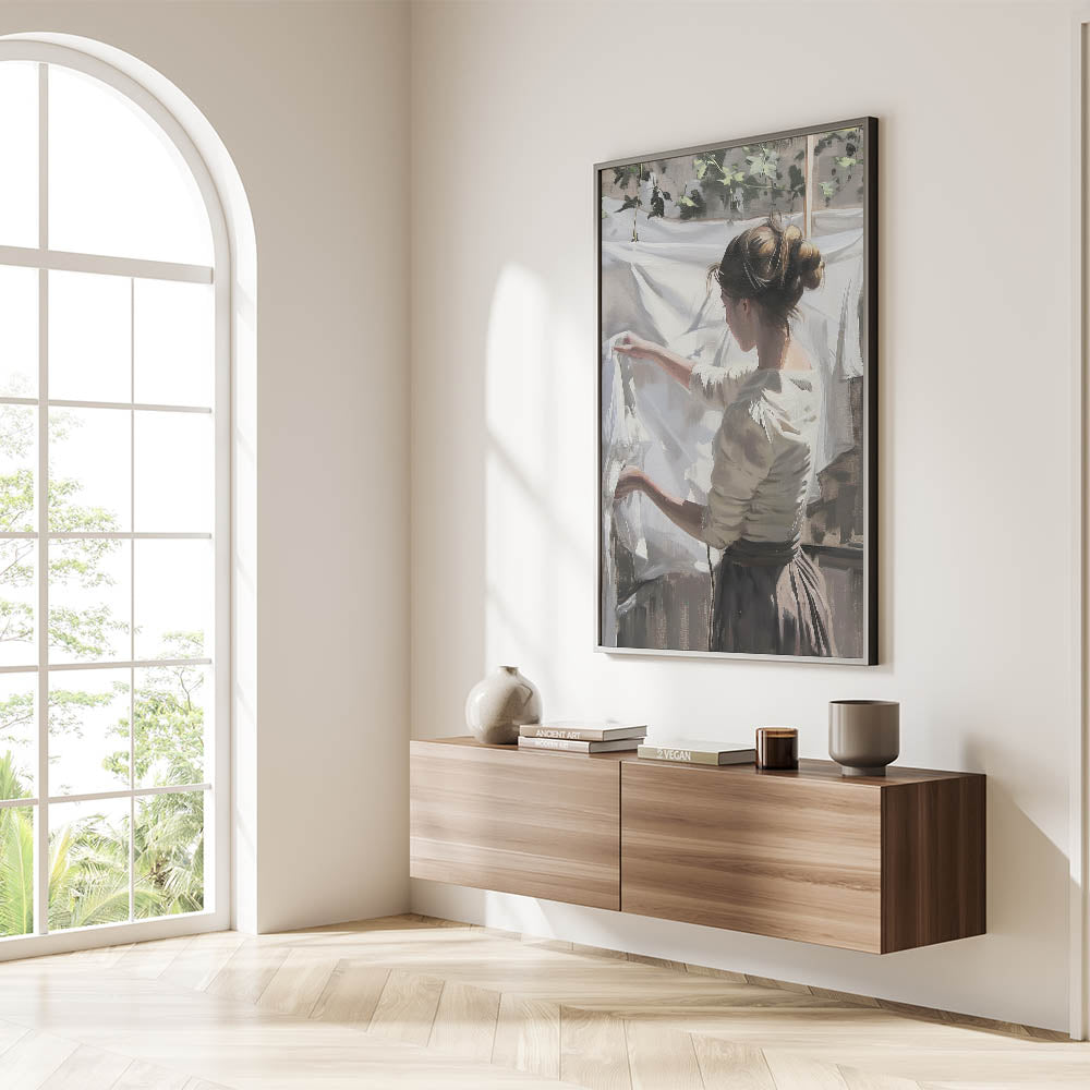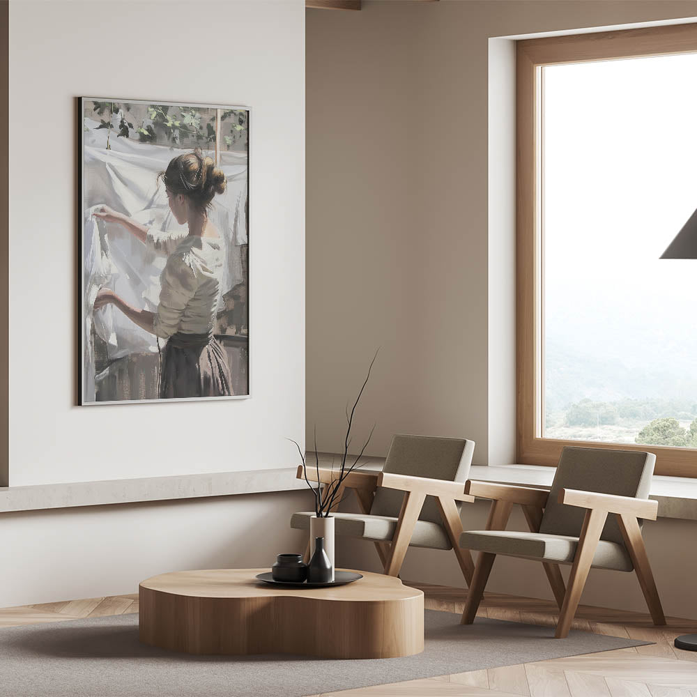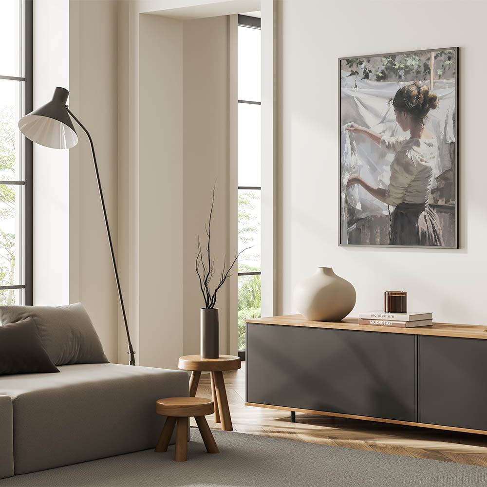 This stunning figurative canvas print is ideal for living rooms, bedrooms, or any cozy corner where you seek to create a peaceful ambiance. Its intricate yet understated details complement both contemporary and rustic interiors, making it a versatile addition to your decor.