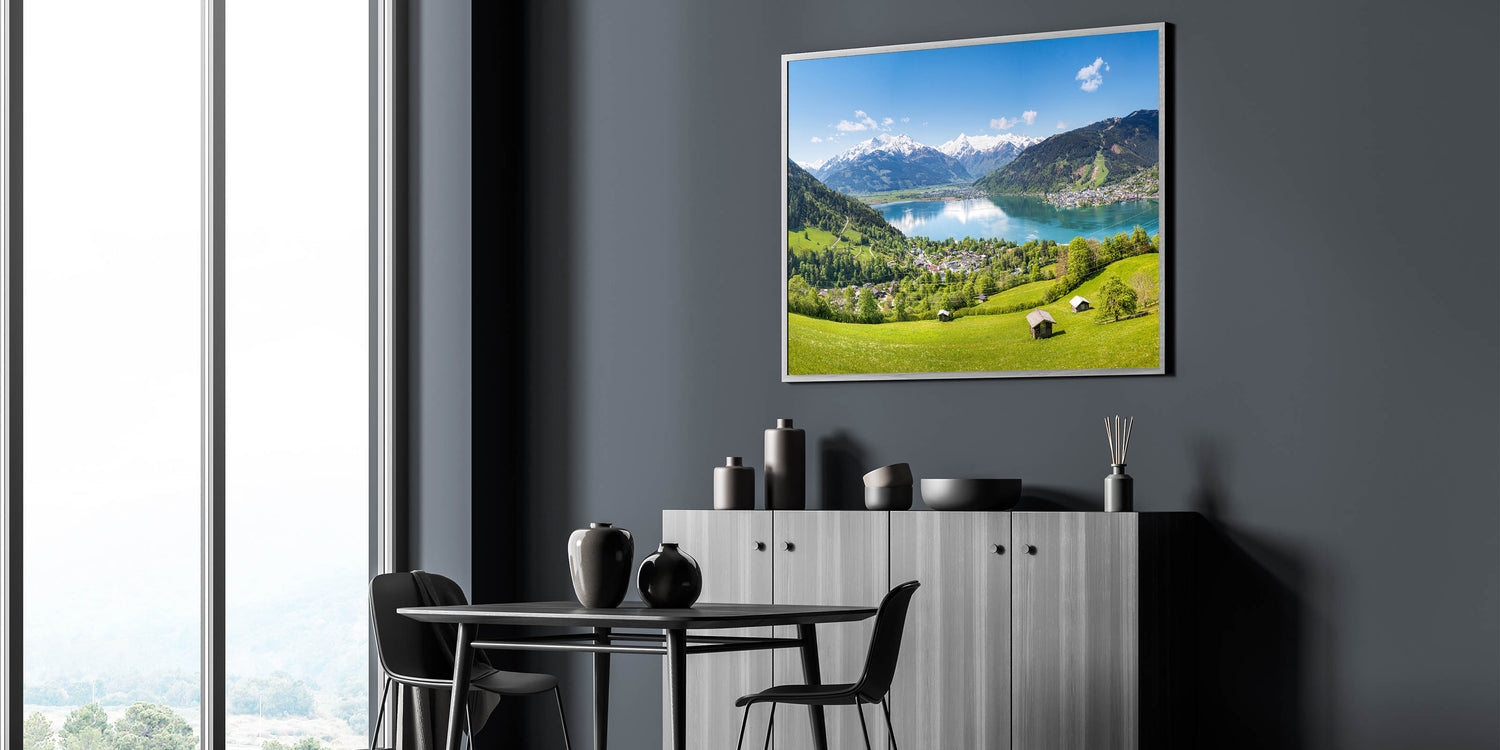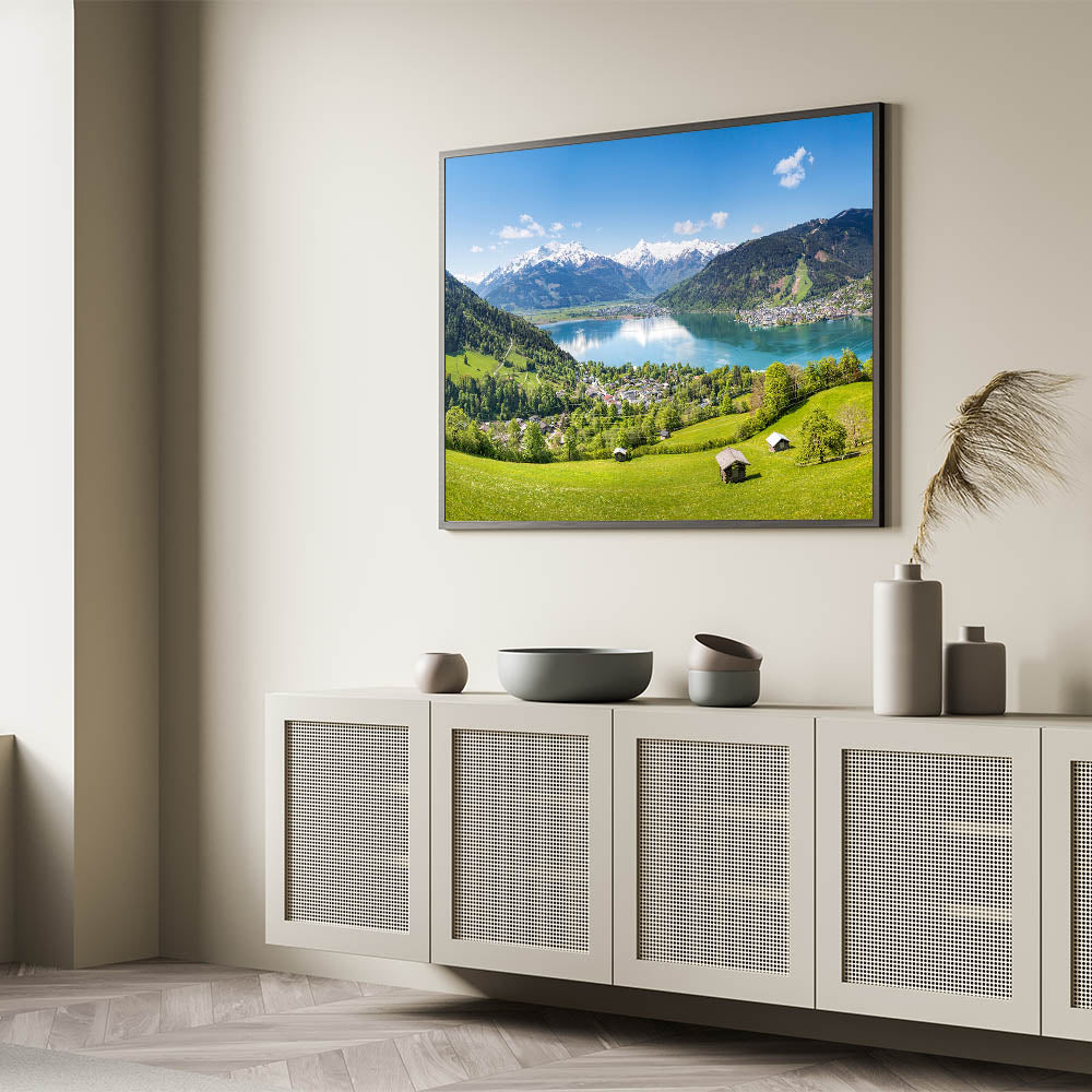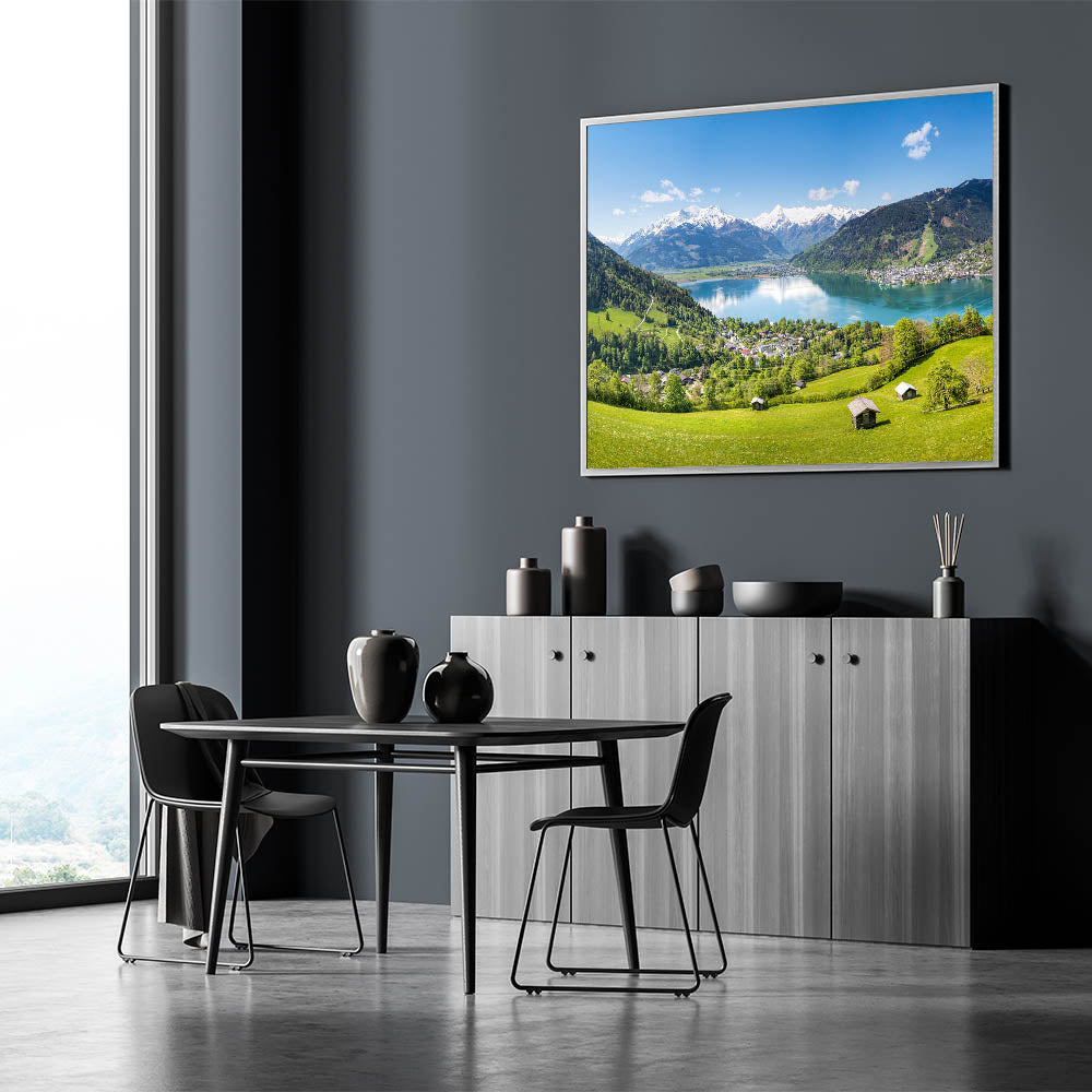 • Ideal for enhancing a serene and peaceful atmosphere with the beauty of Austrian Alps photography.