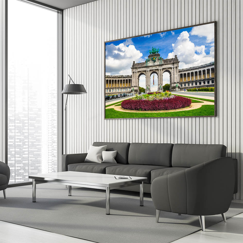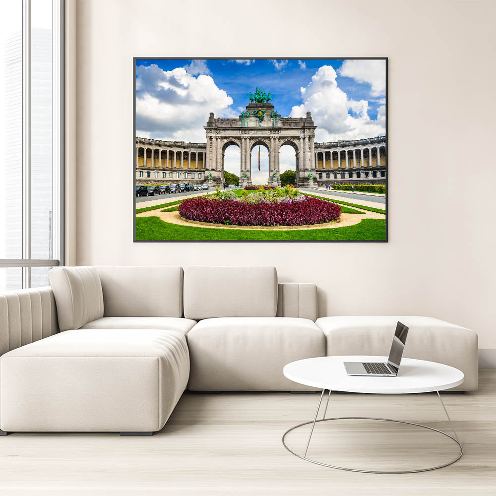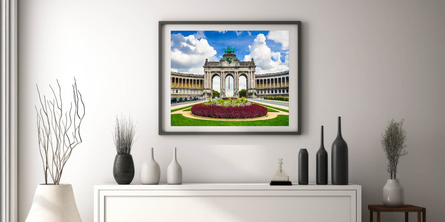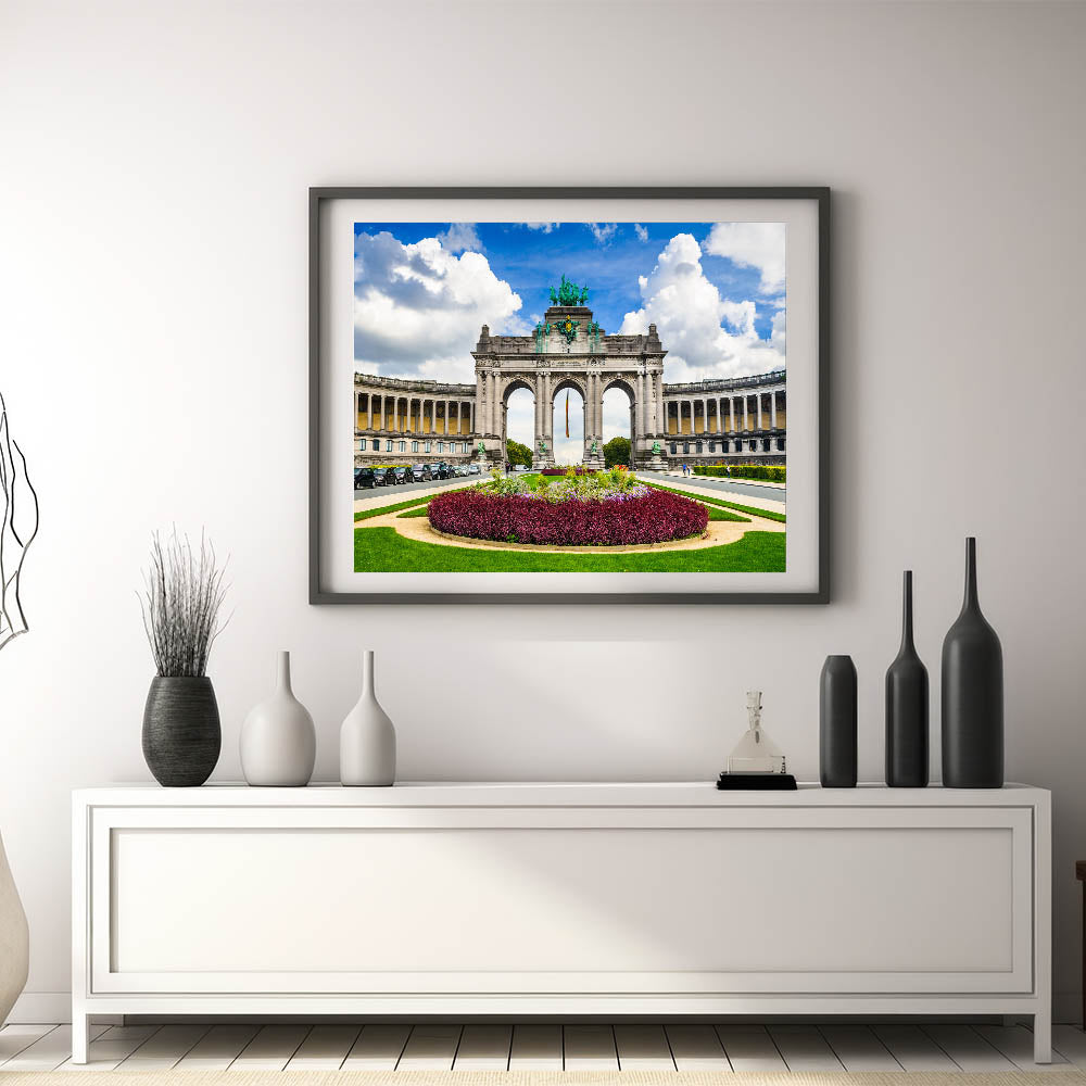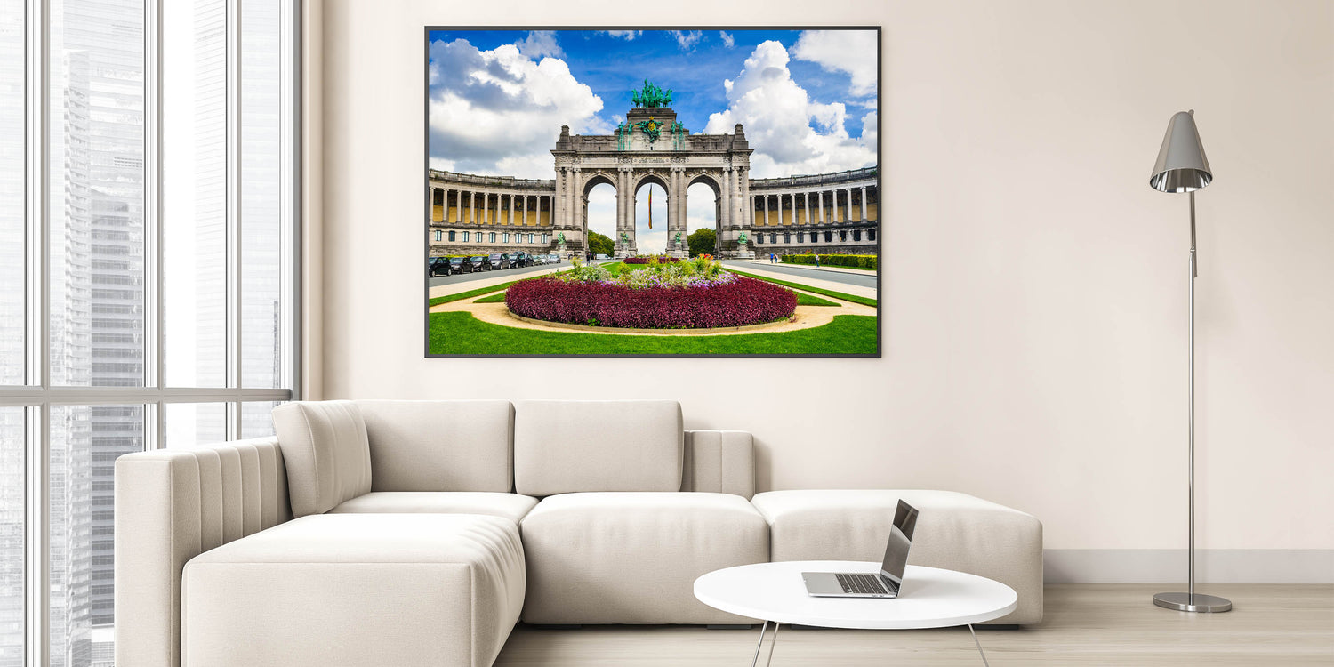 - High-quality print of the Cinquantenaire Arch, ideal for modern interiors.