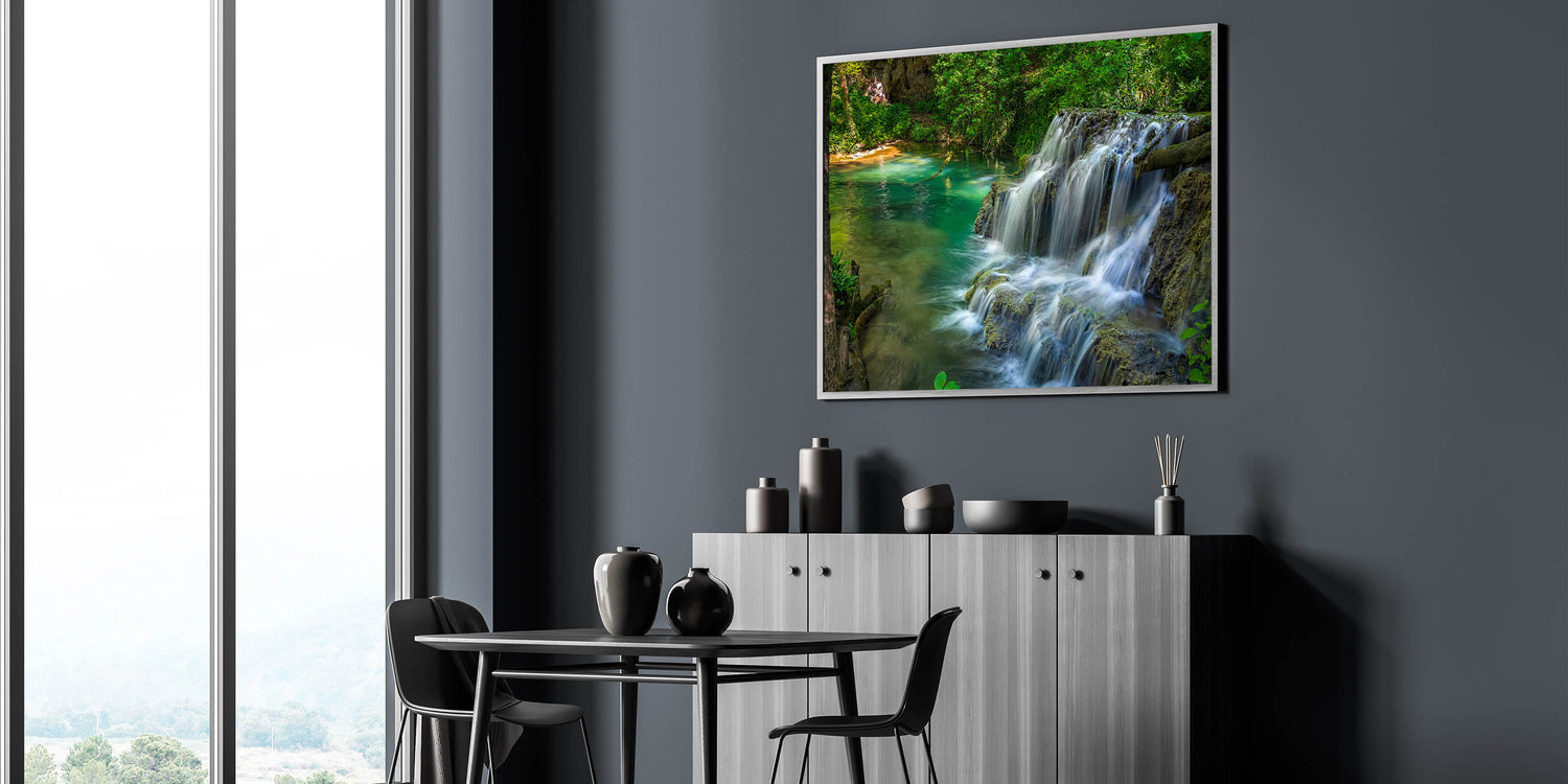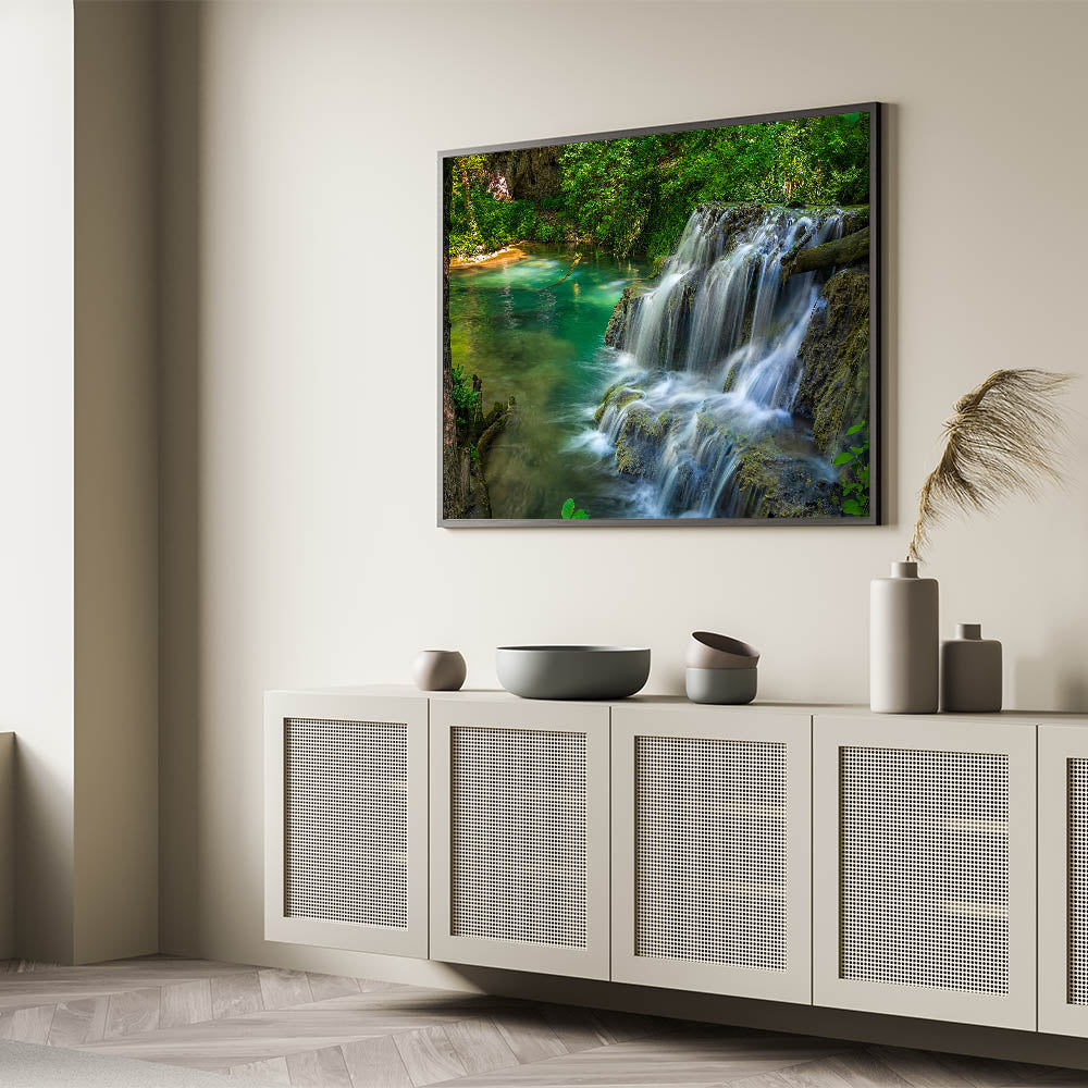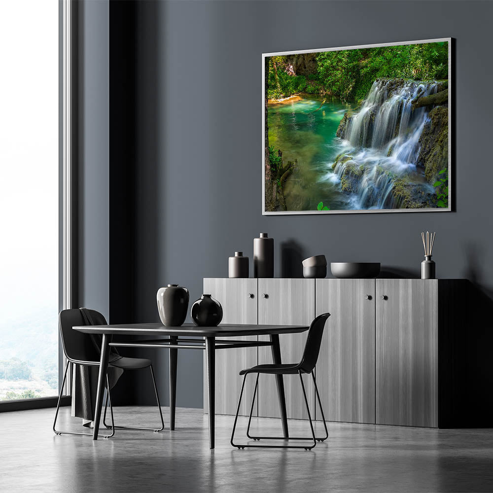 This artwork serves as a daily reminder of nature's quiet grandeur and the soothing power of waterfalls, making it a perfect addition to any room looking for a touch of calm and inspiration.