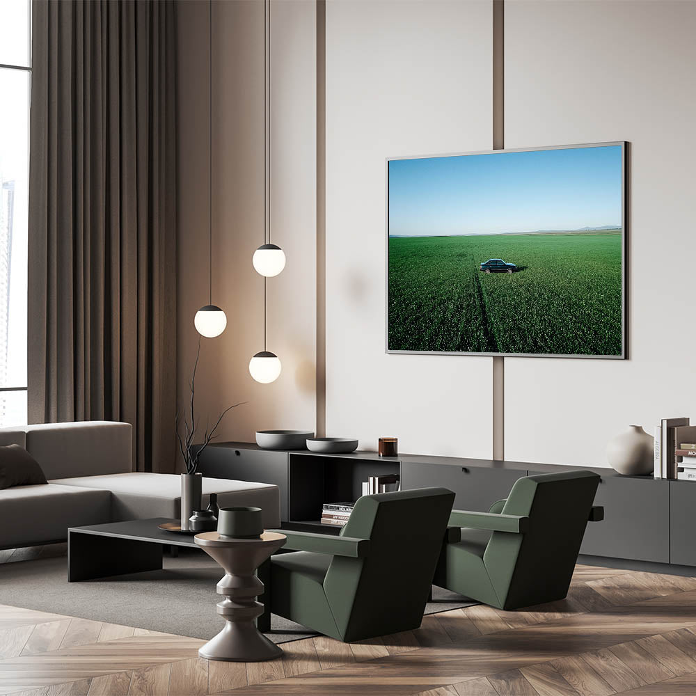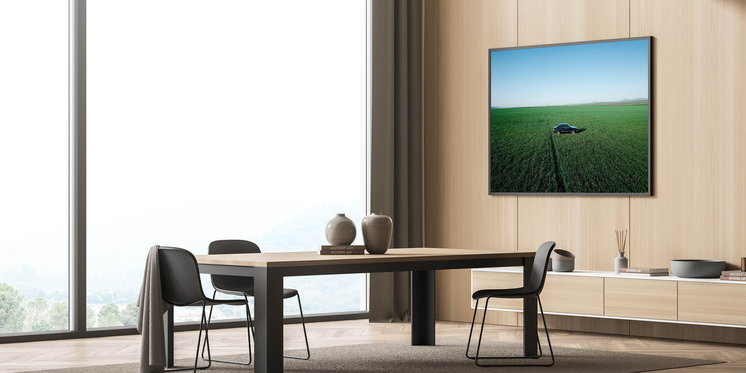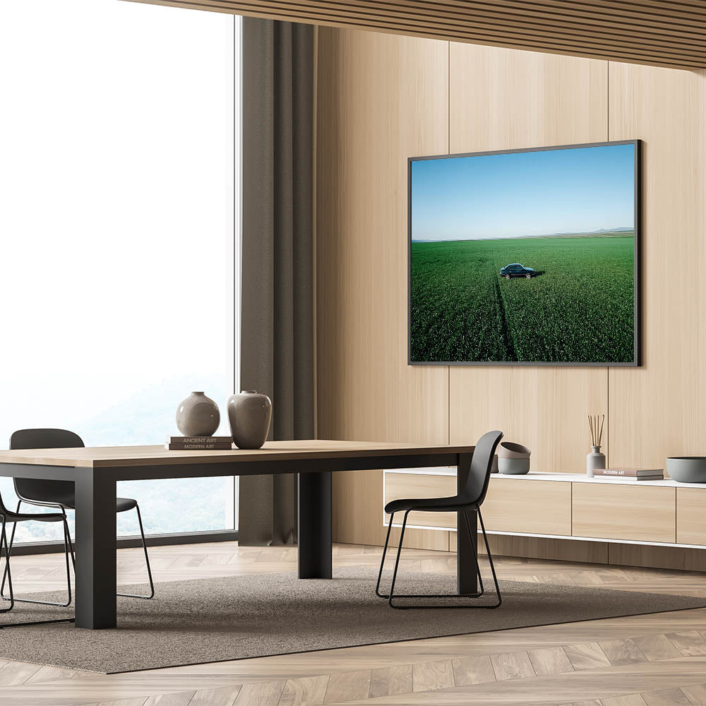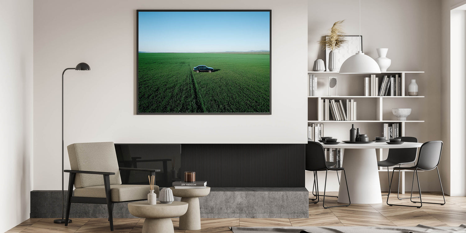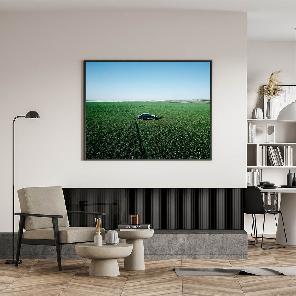 Embrace the calm simplicity of rural life with this striking countryside wall art. Featuring a lone car in the middle of a vast green field under a clear blue sky, this artwork captures the quiet beauty of open spaces and the freedom of the countryside. Perfect for modern interiors or rustic farmhouse decor, it’s a minimalist yet impactful addition to your home or office.