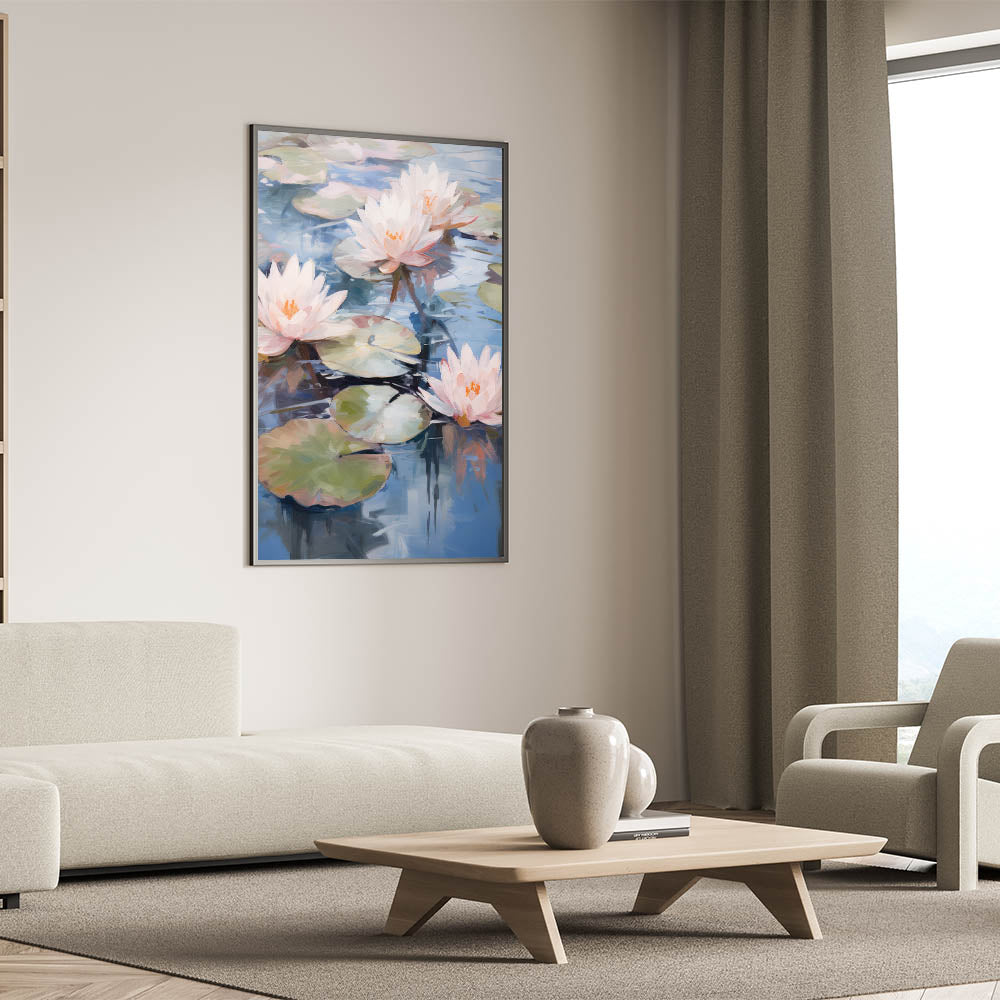 Electric Water Lily Wall Art - Tranquil Pond Scene with Soft Pastel Hues