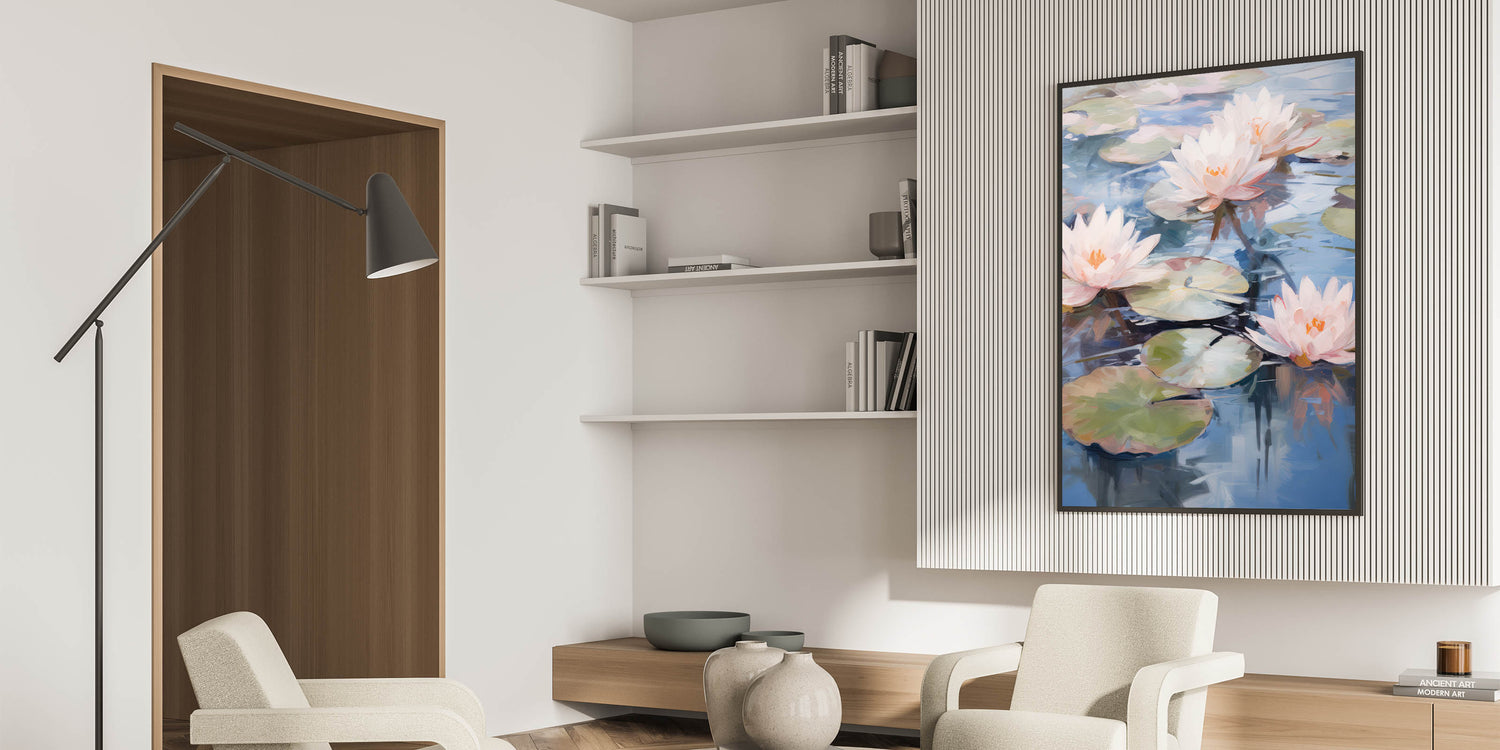 Transform your space with this bold electric artwork, designed to bring the peaceful beauty of water lilies into your home, creating a serene and stylish environment.