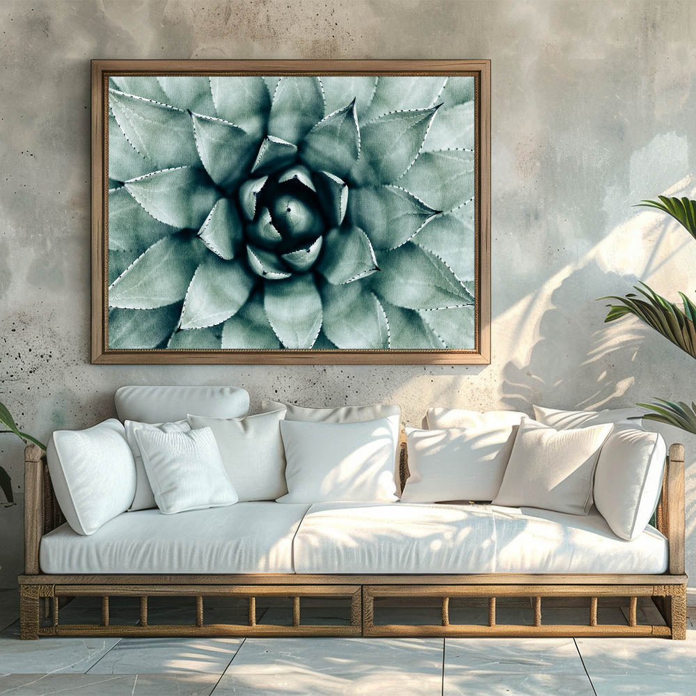 Bring a touch of natural elegance into your home with this farmhouse wall art featuring a stunning close-up of a succulent plant. The intricate details and soothing green tones of the plant create a calming atmosphere, making it an ideal addition to any rustic or modern farmhouse decor. This artwork perfectly blends the beauty of nature with a minimalist aesthetic, adding a fresh, organic vibe to any room.