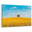 Brighten your space with the radiant charm of this countryside wall art. Featuring a golden field stretching across rolling hills under a bright blue sky, with a solitary tree as its focal point, this artwork captures the peaceful beauty of rural landscapes. Perfect for rustic farmhouse decor or modern interiors, this piece brings warmth and tranquility to any room.