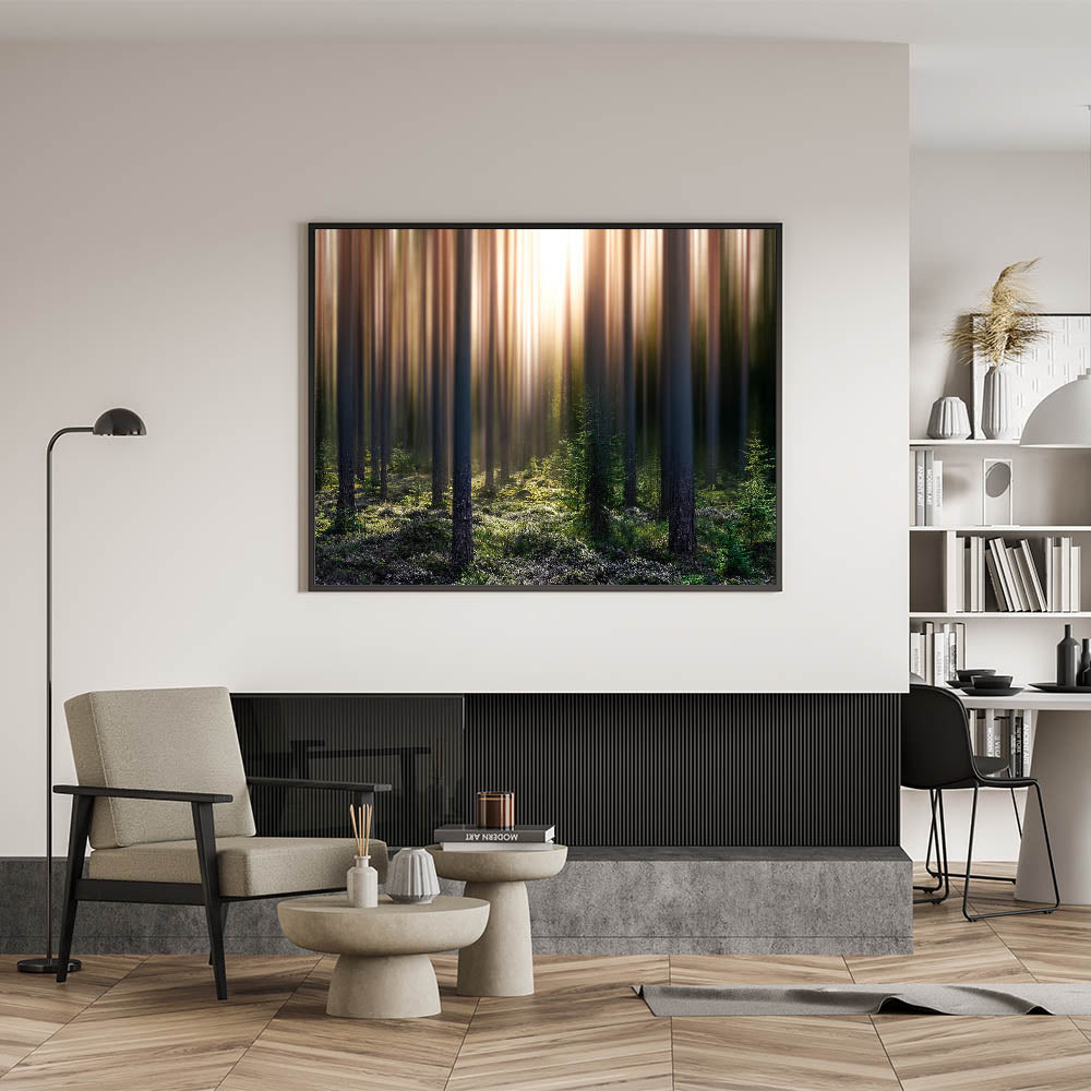 - Unique Design: Beautiful Latvia wall art featuring the glow of sunlight through a lush forest.