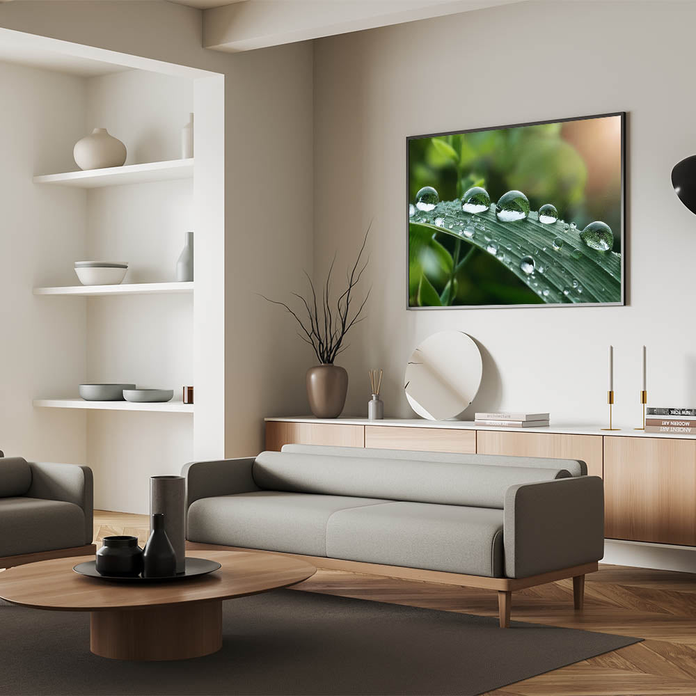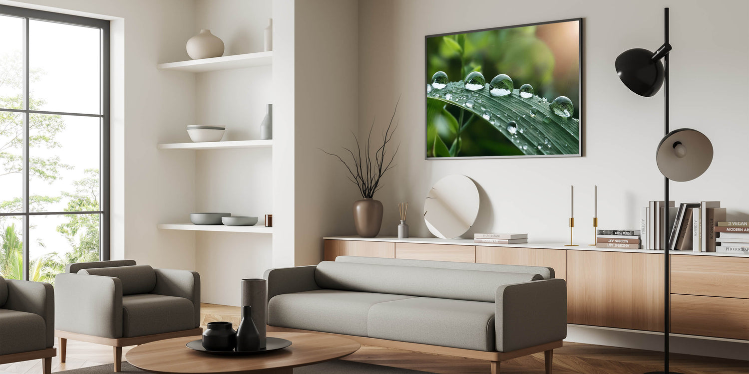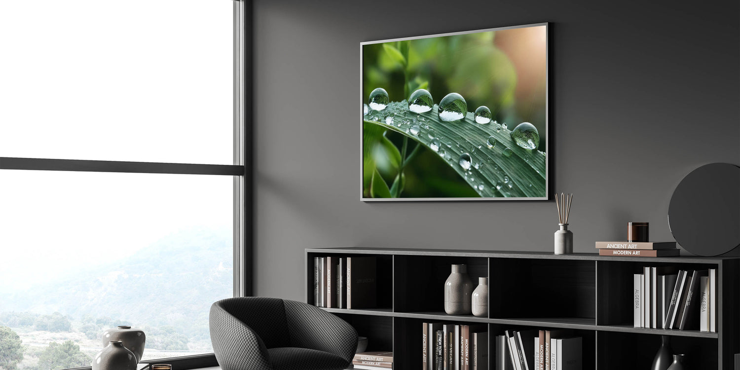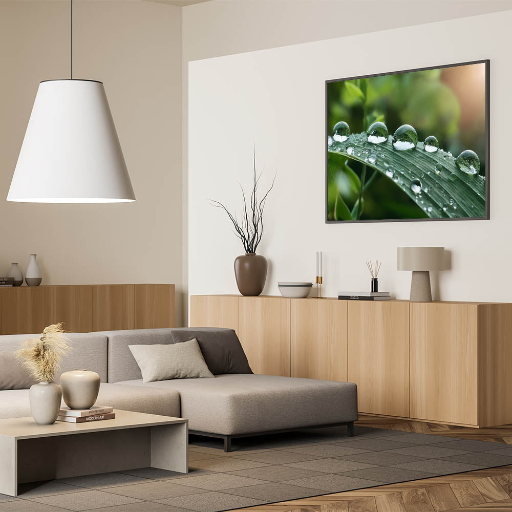 This scenic water art is perfect for anyone looking to create a calming and nature-inspired environment. Let the delicate beauty of water droplets and greenery elevate your space with peace and serenity.