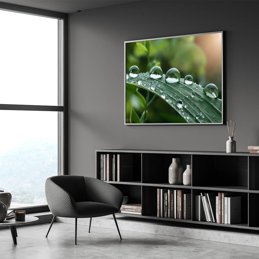 Nature Close-Up Water Art – Dew Drops on Leaf Photography Wall Decor