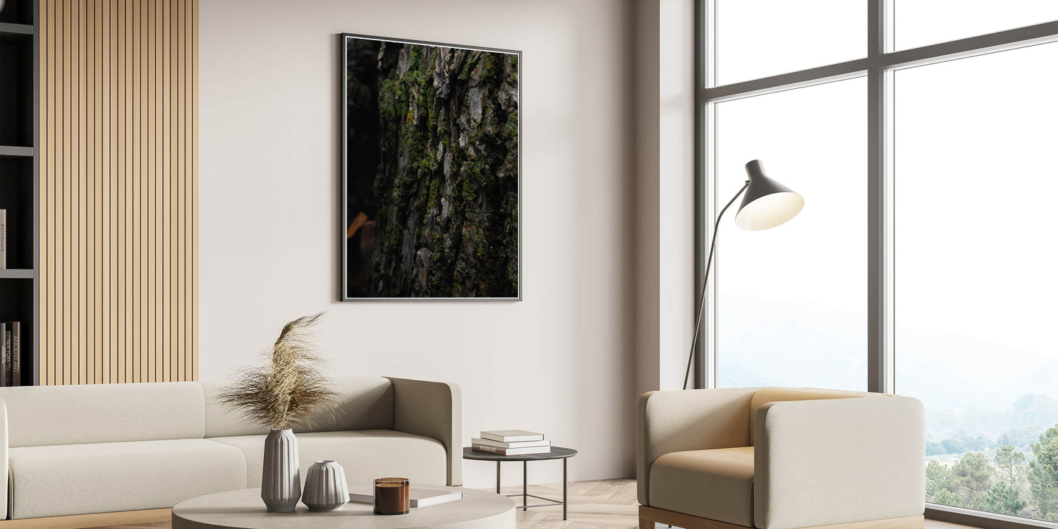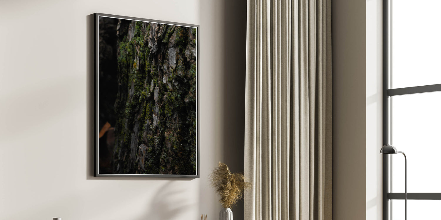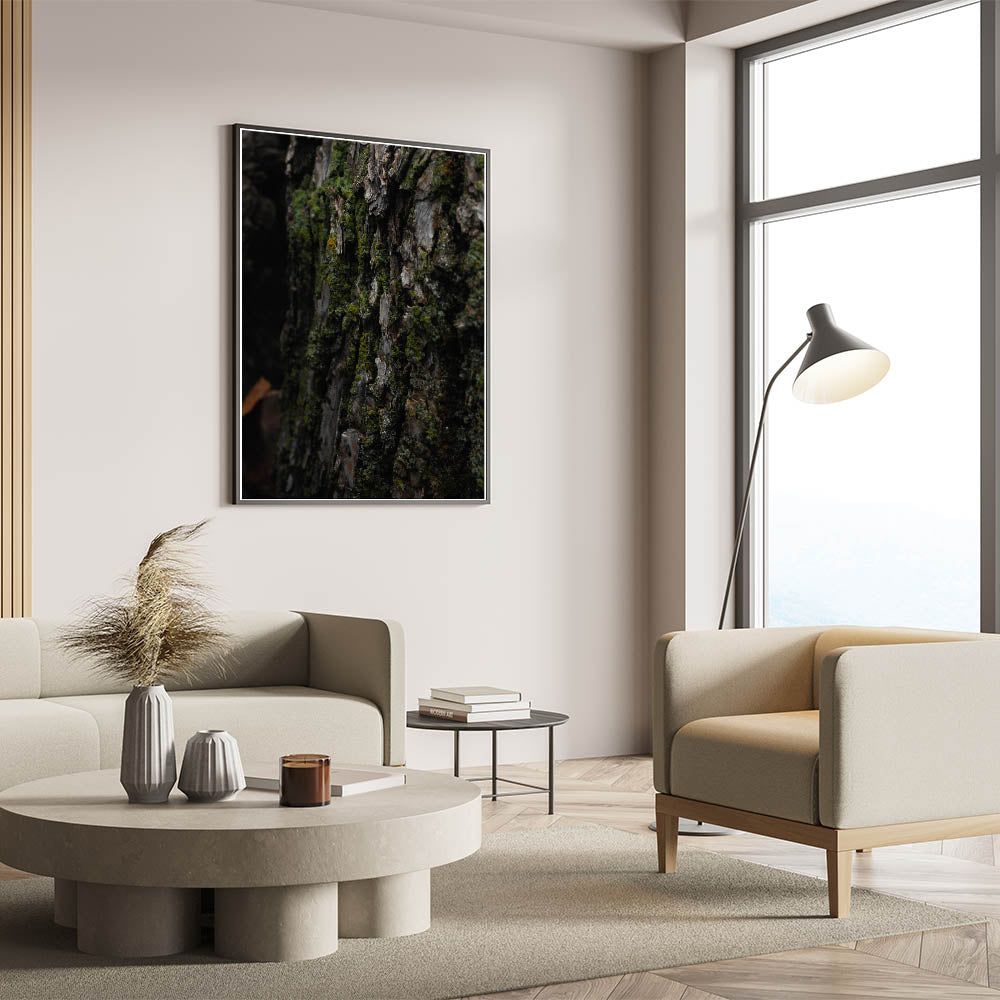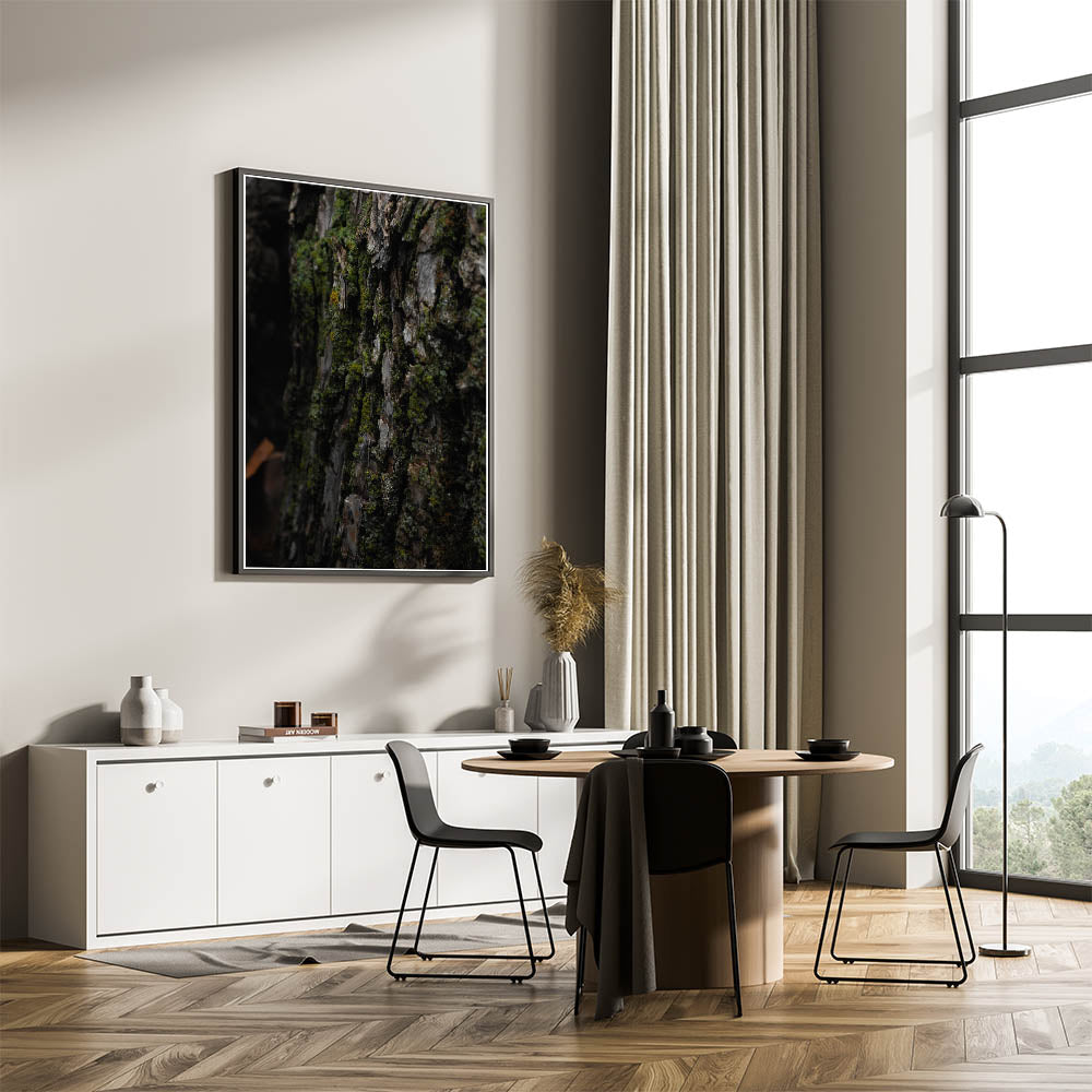 Bring the raw beauty of nature into your home with this rustic bark wall art, featuring an up-close view of tree bark covered in rich, earthy textures and mossy green accents. This piece captures the essence of the forest, adding a touch of natural beauty to any room. Perfect for those who love rustic and woodland-inspired decor, this artwork evokes the calm and grounding feeling of the outdoors, ideal for creating a peaceful atmosphere in living rooms, bedrooms, or entryways.
