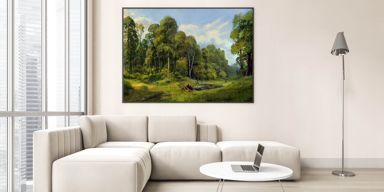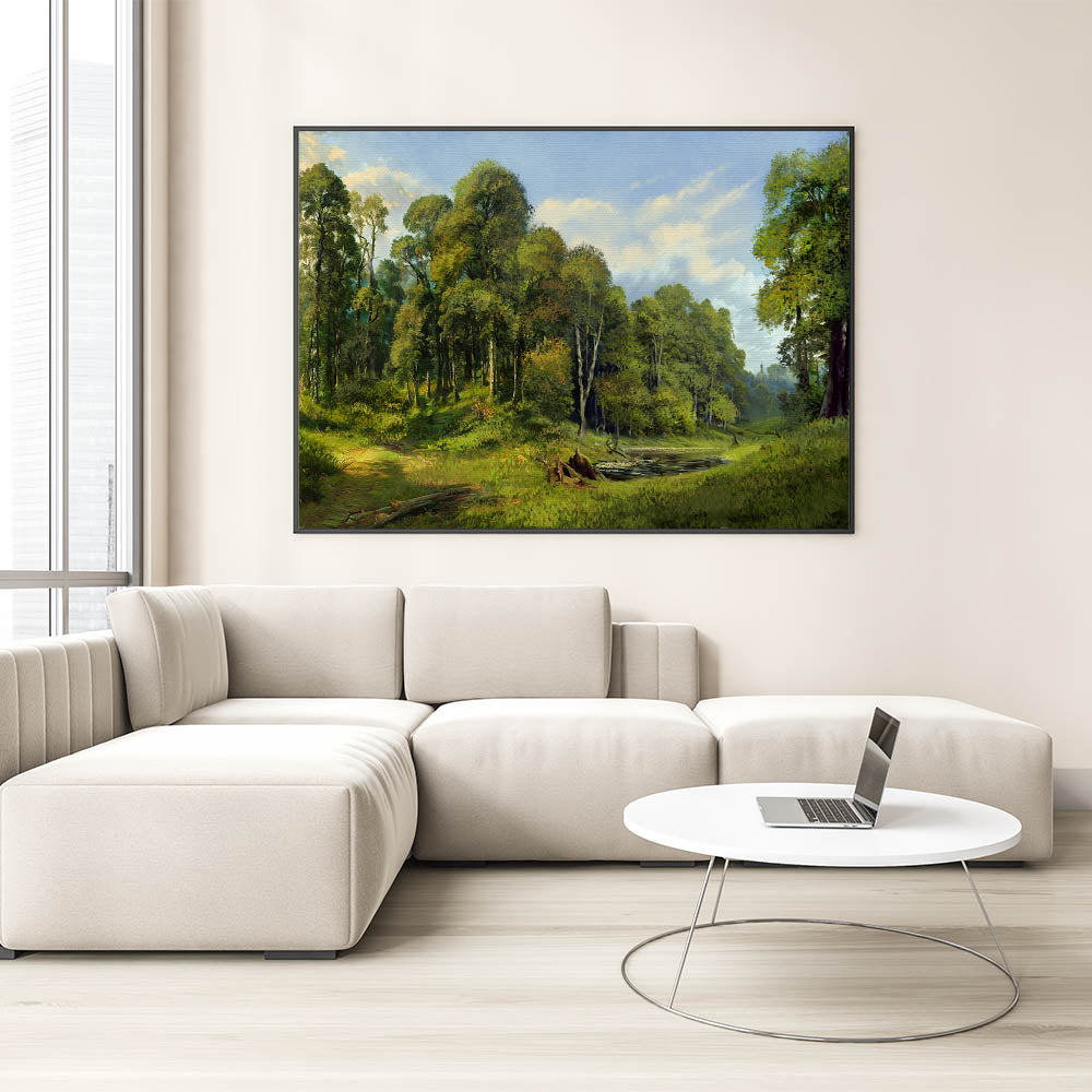Capture the timeless beauty of the countryside with this exquisite pastoral wall art. This piece depicts a serene woodland scene bathed in the soft light of a sunny day, making it an ideal addition to any space that celebrates the tranquility of nature. The detailed brushwork and vibrant greens create a calming atmosphere, perfect for bringing the outdoors into your home.
