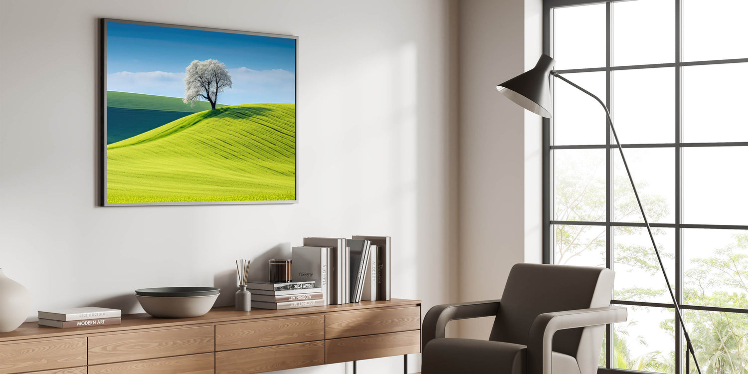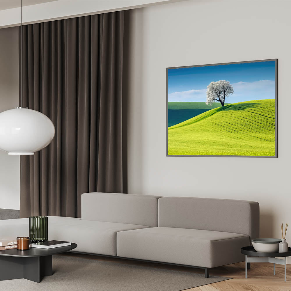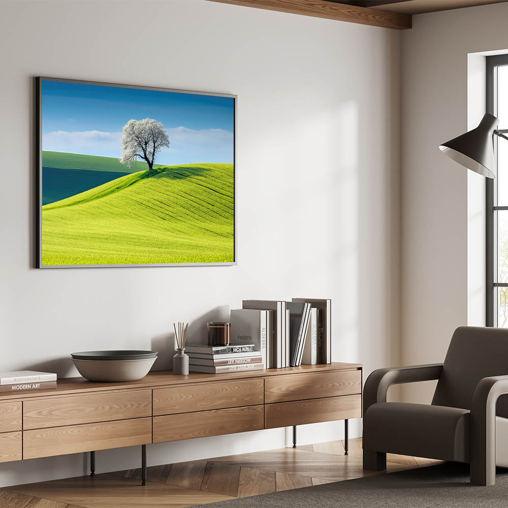 - Highlights the peaceful charm of a solitary tree in the rolling green hills, ideal for home or office decor.