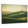 Create a peaceful atmosphere in your home with this elegant Serene Fields Art Print. Featuring rolling green hills bathed in the soft light of sunrise, this artwork captures the tranquil beauty of the countryside. The solitary tree adds a minimalist charm, perfect for modern and classic decor alike.