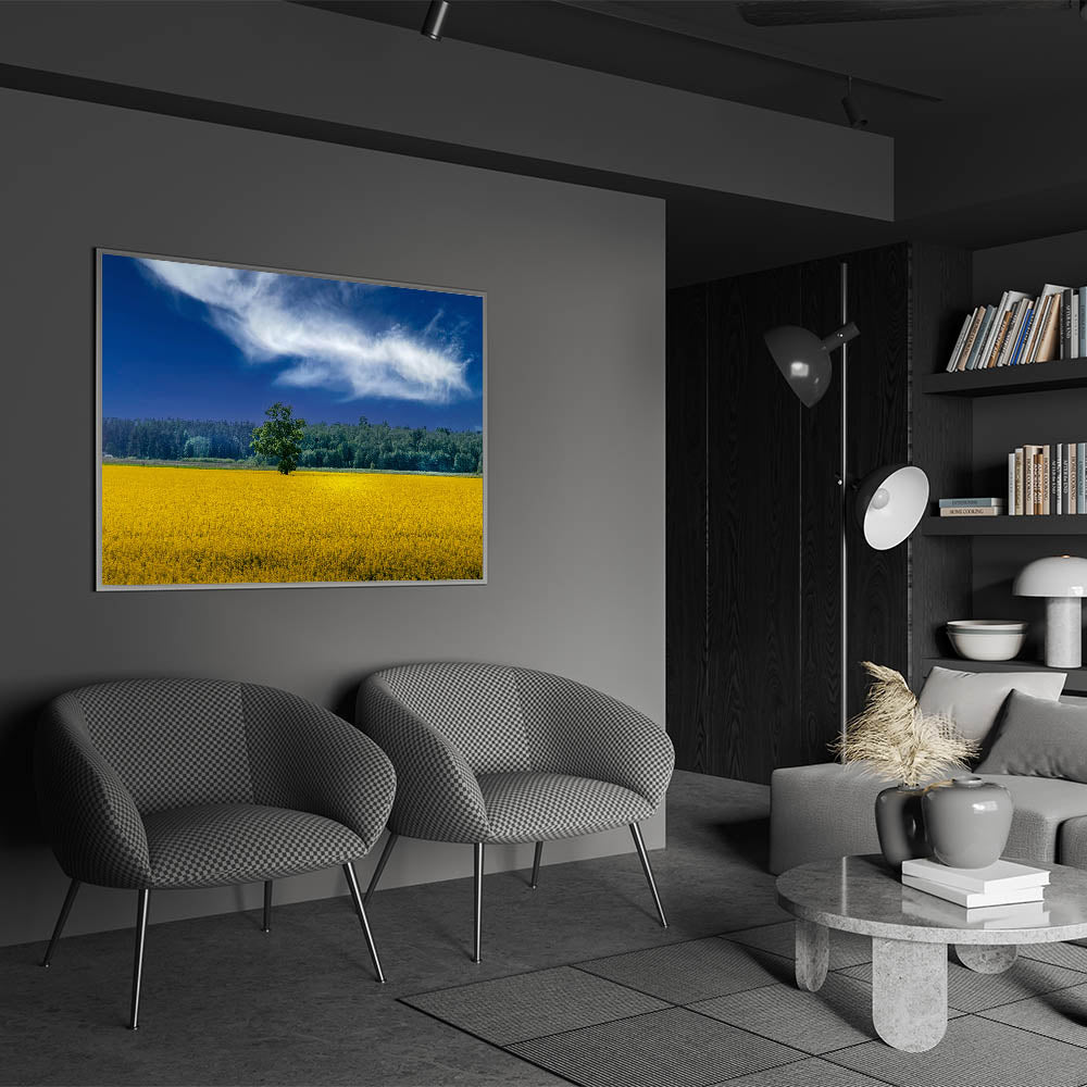 Enhance your living space with this striking piece of Ukrainian landscape art, featuring a golden field under a brilliant blue sky with a solitary tree. This captivating artwork from the Ukraine Scenery by Region Collection perfectly captures the natural beauty of Ukraine’s countryside, making it an ideal addition to any home or office. The combination of bold colors and tranquil scenery makes this piece both a conversation starter and a soothing presence in any room.
