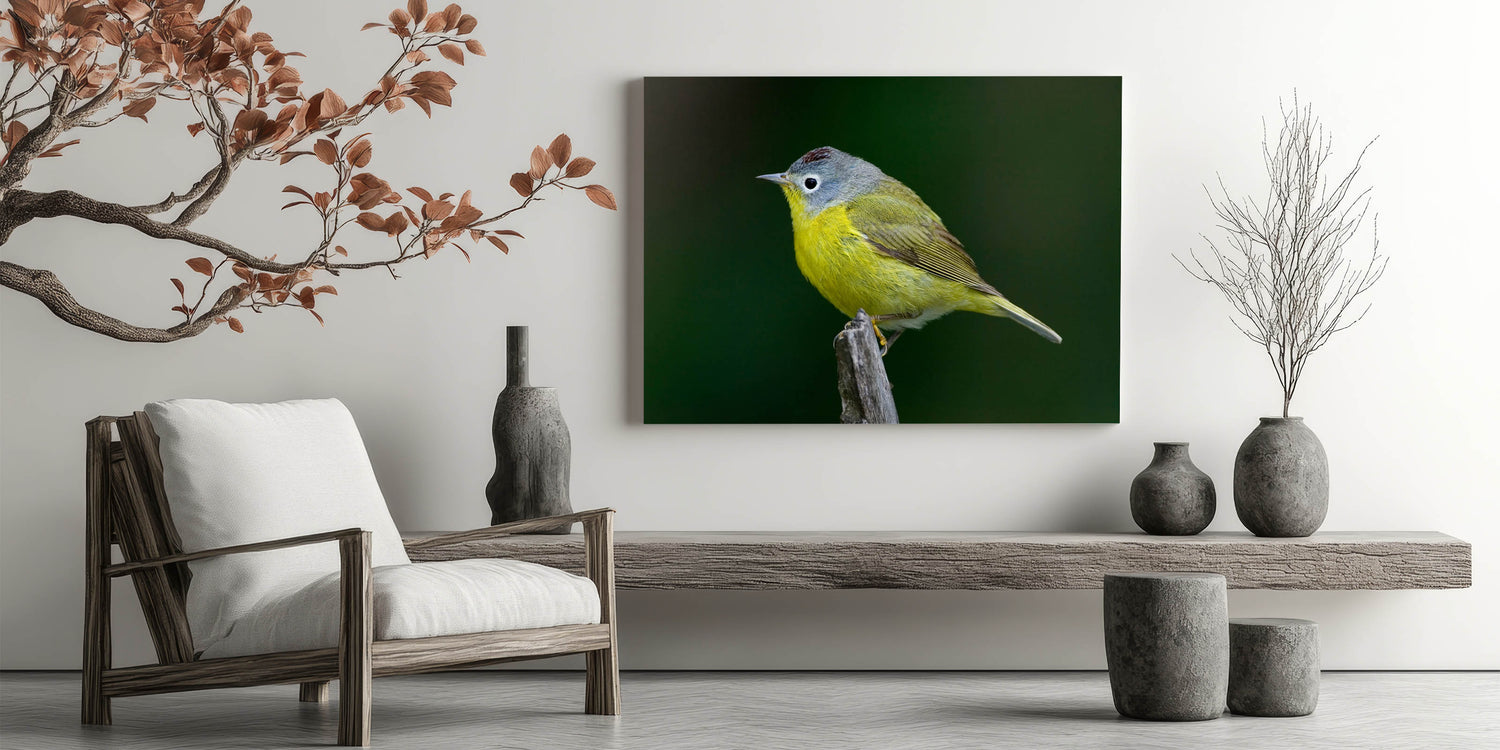 Bring the serene beauty of nature into your home with this stunning Garden Birds Wall Art. Capturing the vibrant colors and delicate details of a songbird perched in a lush garden, this piece is perfect for bird watching enthusiasts and nature lovers alike. The vivid yellow and green hues of the bird stand out beautifully against the deep, natural background, creating a striking focal point in any room.