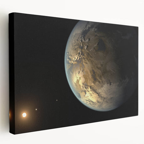 • Side view of a stretched canvas featuring a serene Georgian landscape in soft earth tones, ideal for kitchen wall art.