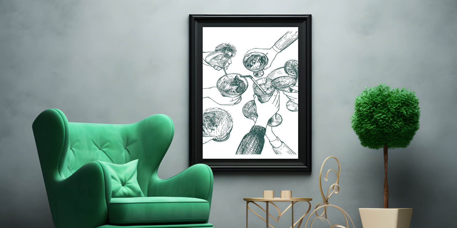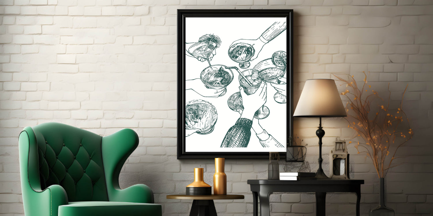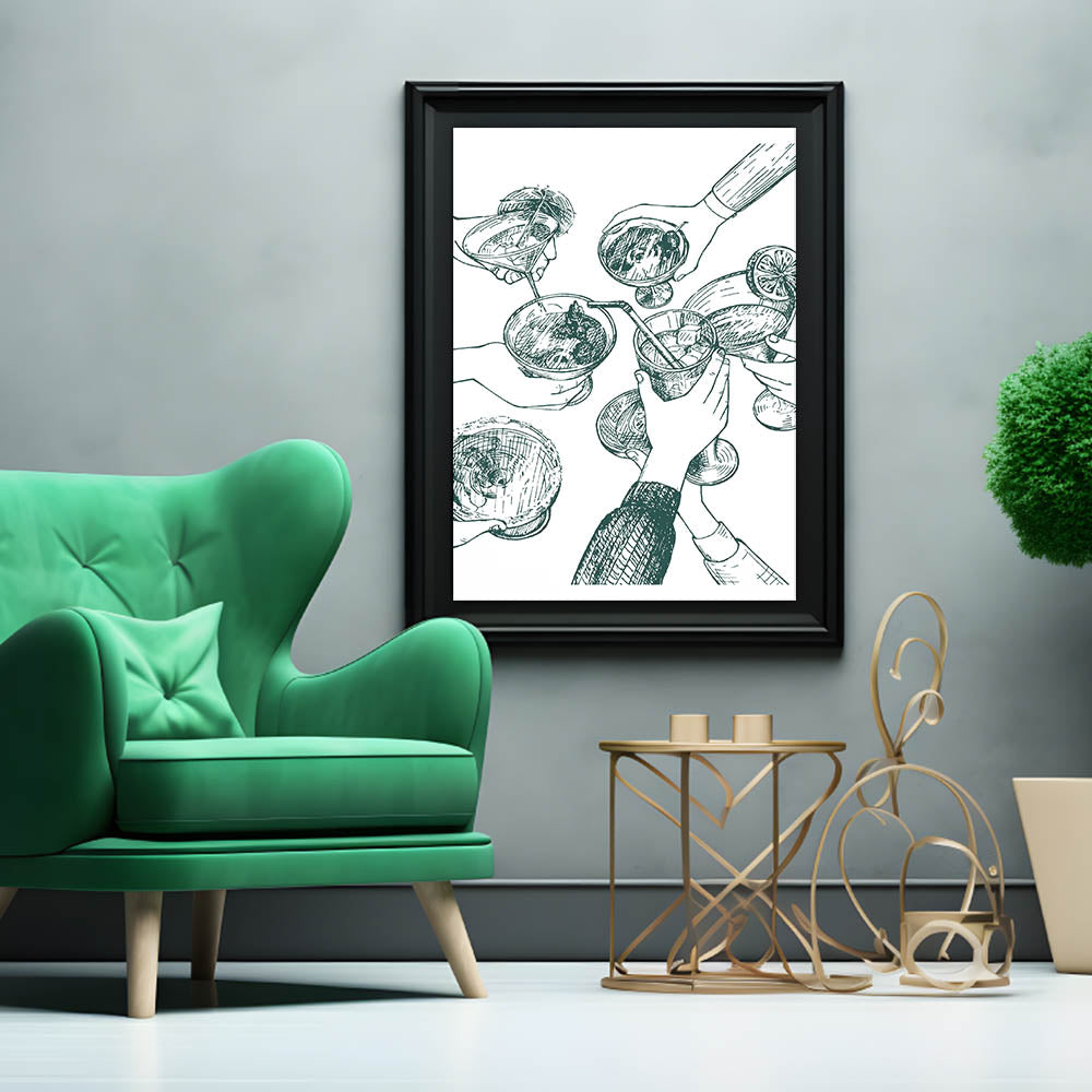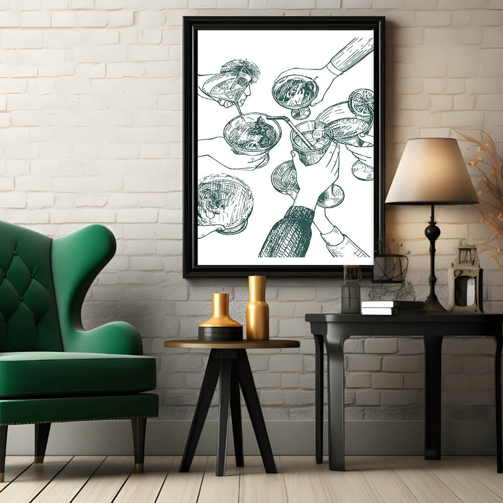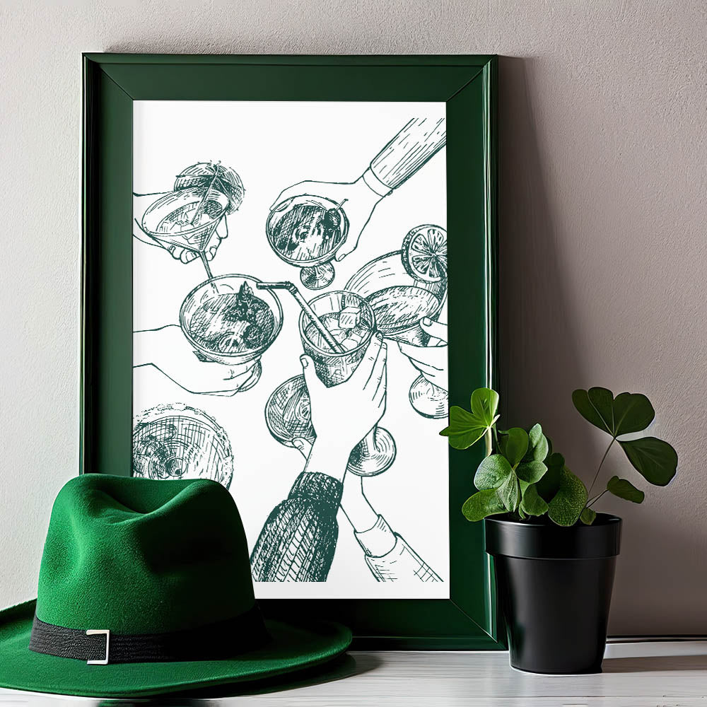 Celebrate St. Patrick’s Day in style with this elegant St. Patrick’s Day Wall Art featuring a beautifully sketched cocktail toast. This Irish Wall Art captures the spirit of festivity, friendship, and celebration, making it a perfect addition to your home, bar, or party space. The hand-drawn details and deep green hues create a classic and timeless Shamrock Wall Art aesthetic that fits seamlessly into your St. Patrick’s Day Decorations.