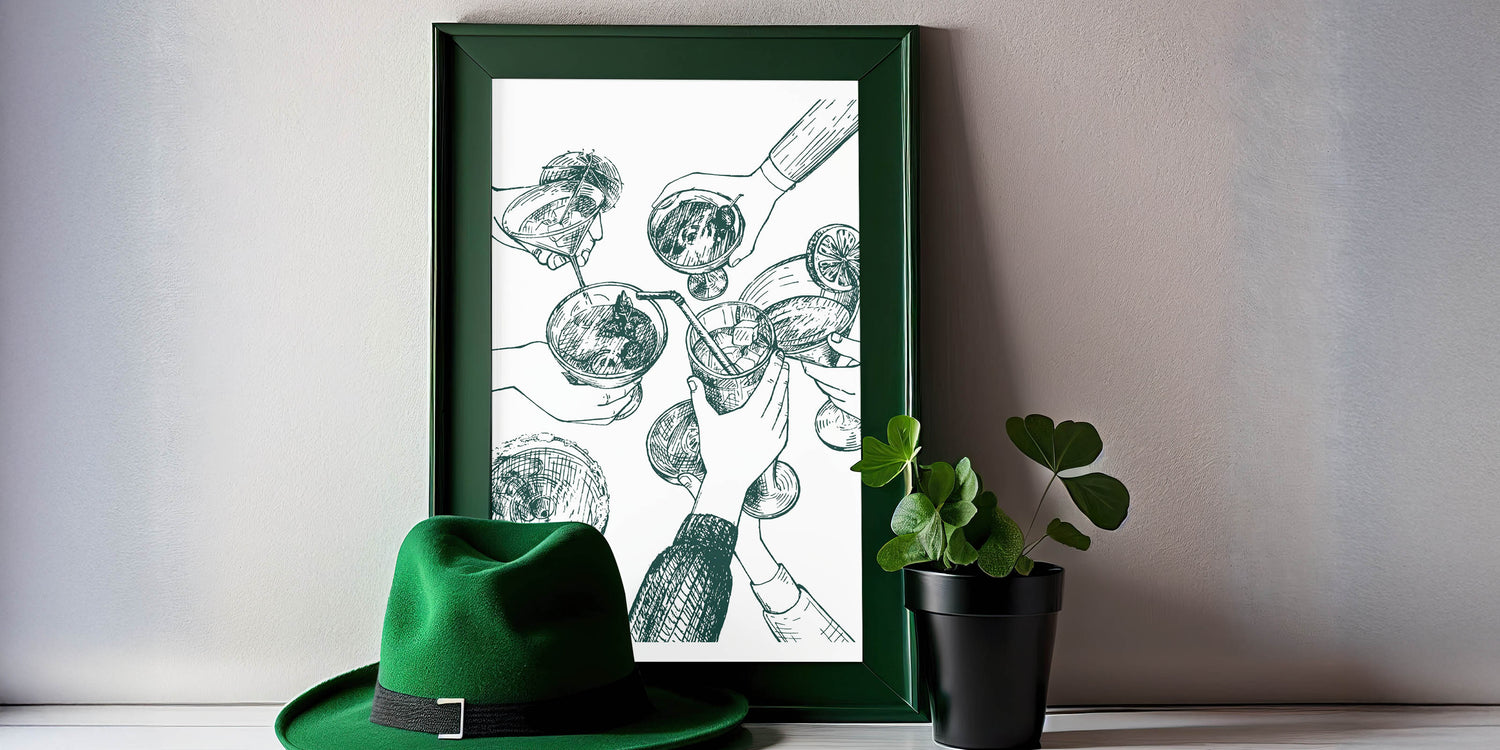 St. Patrick’s Day Wall Art – Irish Cocktail Sketch for Festive Decor
