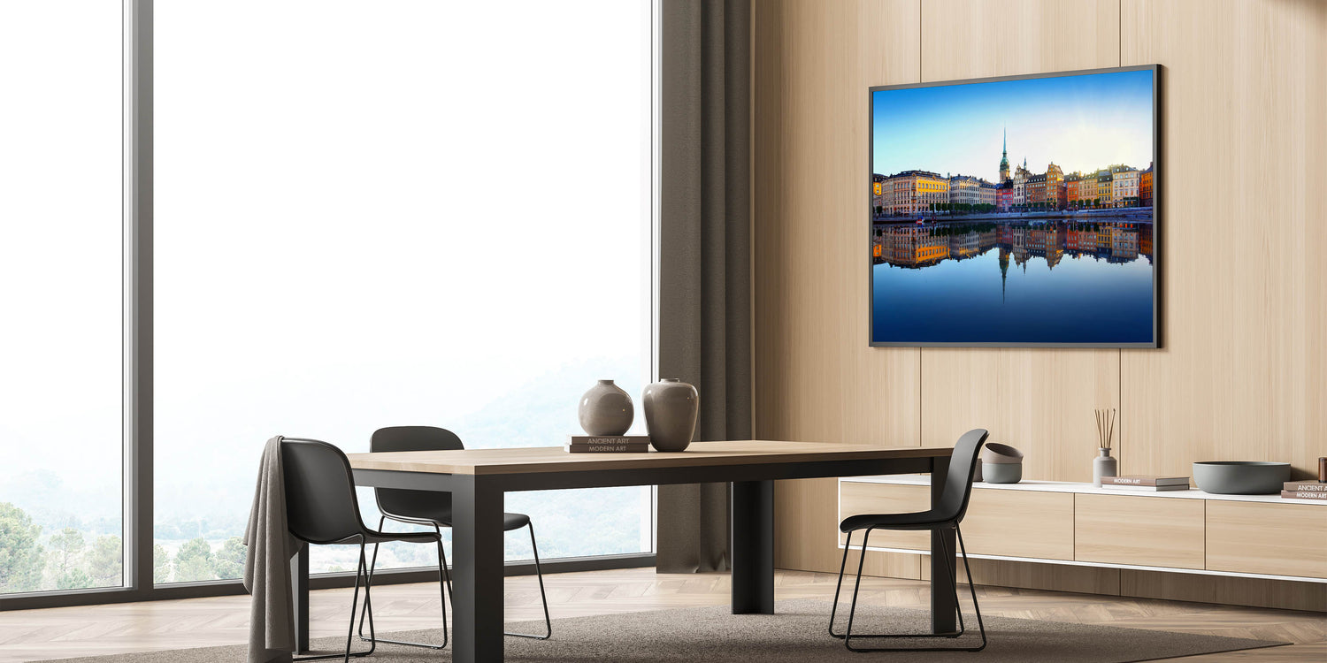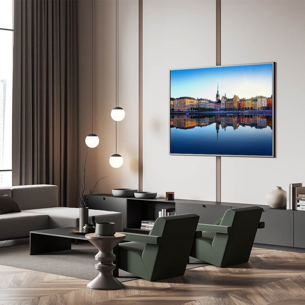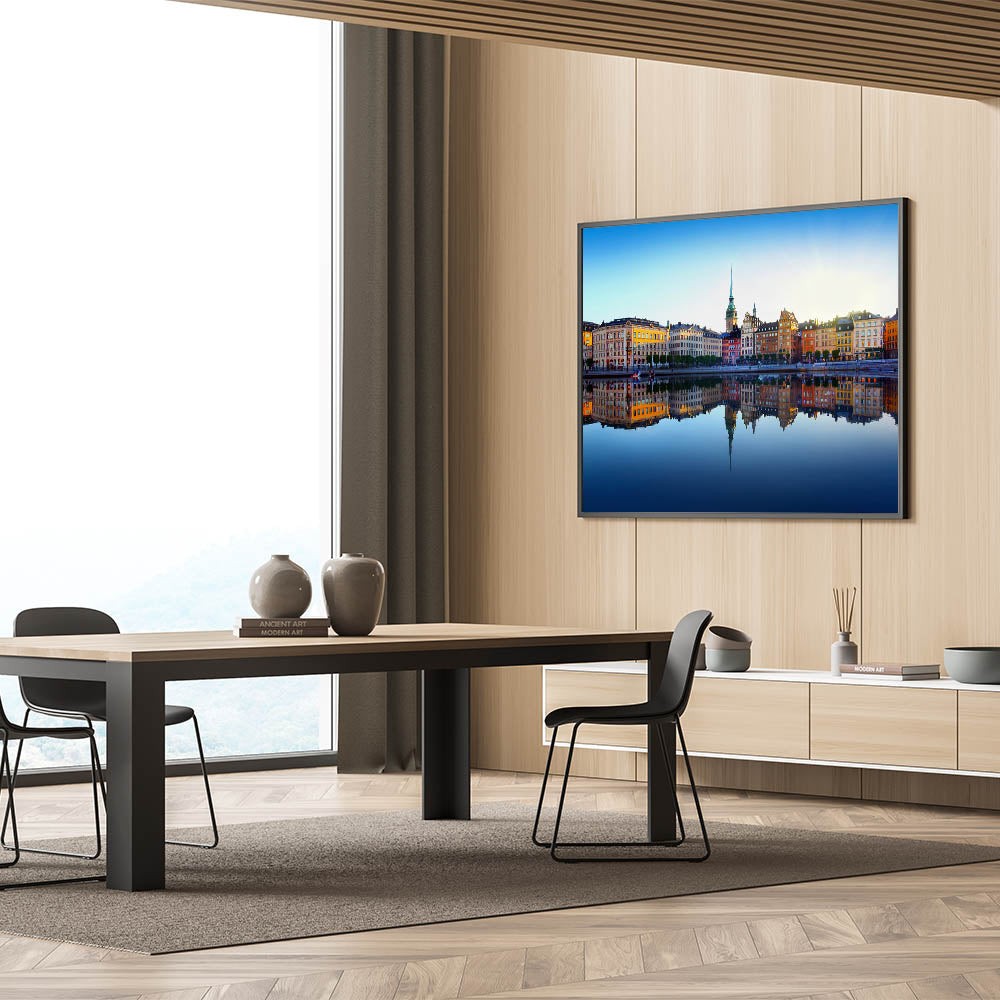 Whether you choose a framed Stockholm art piece or a sleek acrylic glass option, this cityscape is sure to elevate your decor. Perfect for living rooms, bedrooms, or offices, the picturesque reflection and vibrant colors make this Stockholm cityscape photography a must-have for anyone who loves urban beauty.