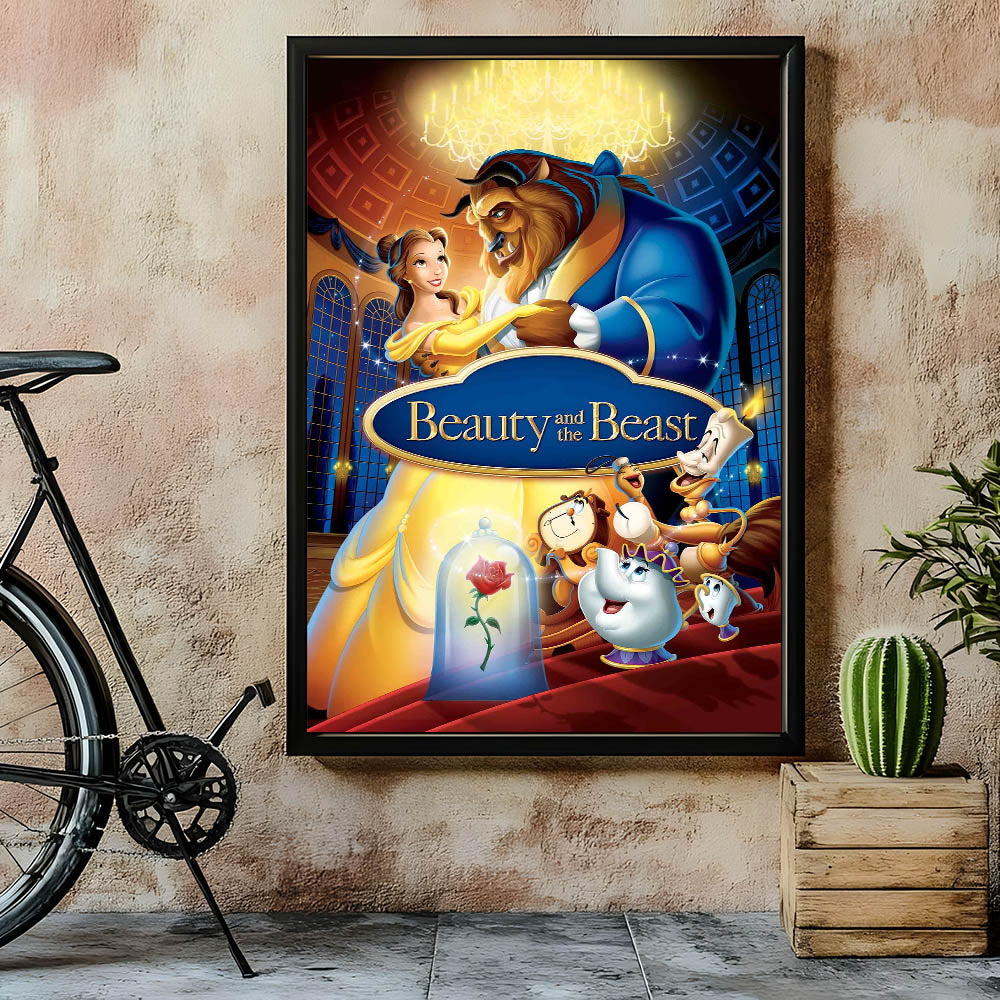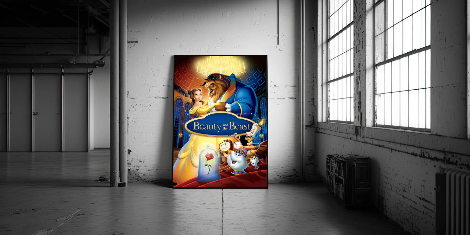 1990s Vintage Movie Poster – Beauty and the Beast Retro Disney Art
