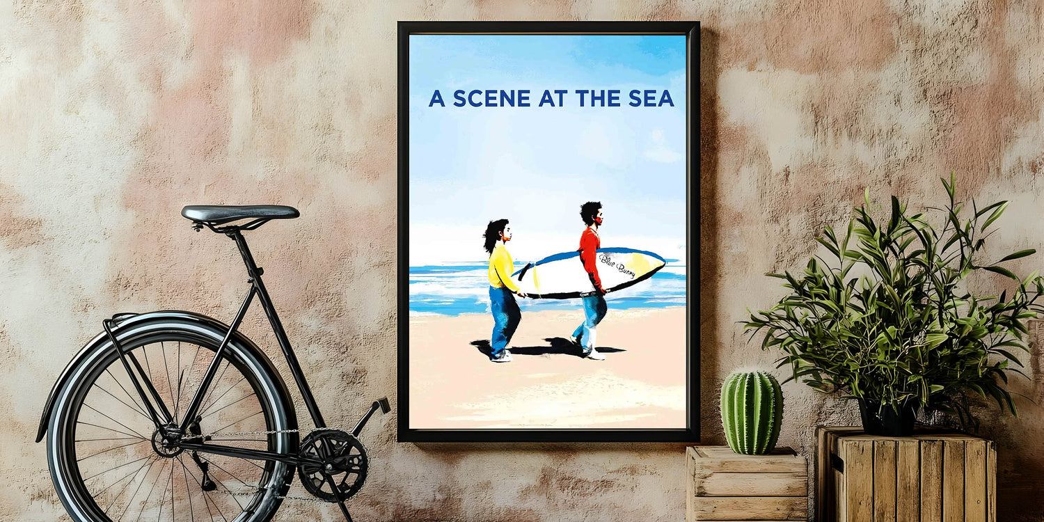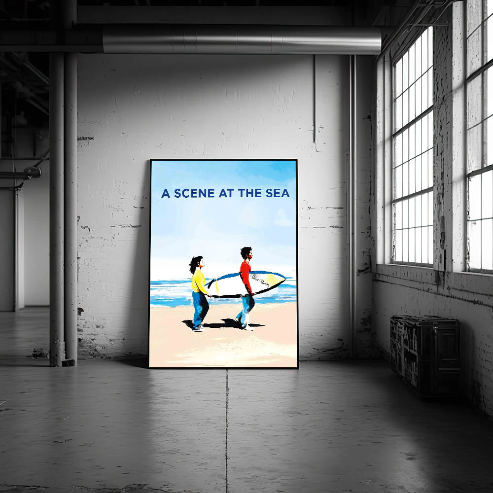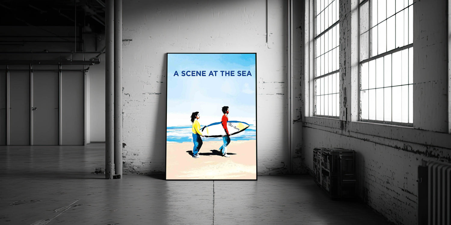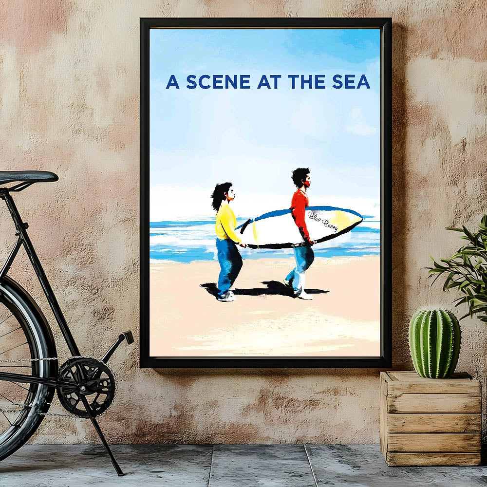 Embrace the quiet beauty of A Scene at the Sea with this 1990s Vintage Movie Poster. This Retro 1990s Movie Print captures the minimalist and serene aesthetic of the classic Japanese film, making it an essential Nostalgic 90s Cinema Art piece. Featuring a calming beachside atmosphere with soft, painterly textures, this Vintage Film Poster from the 90s brings a peaceful and artistic touch to any collection.