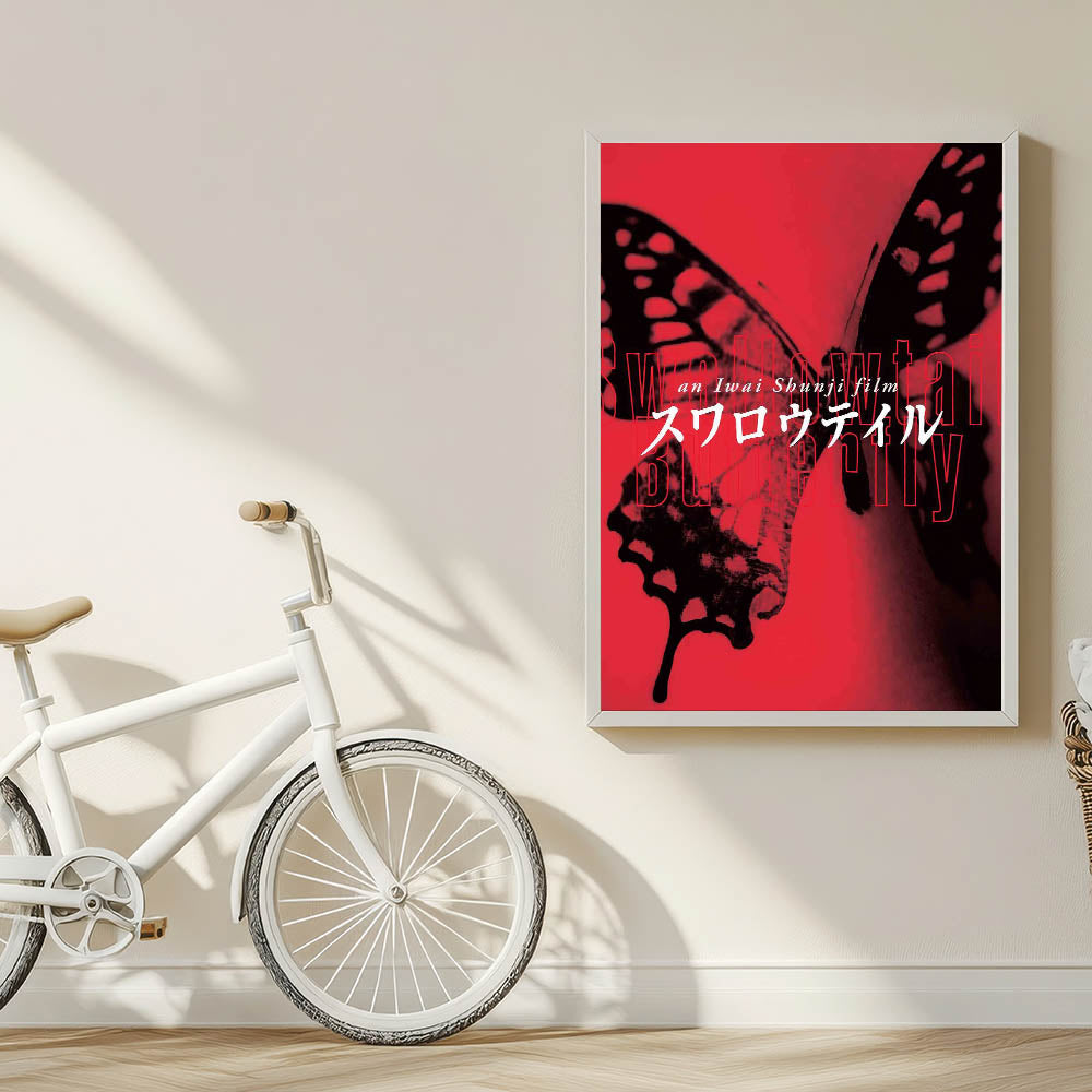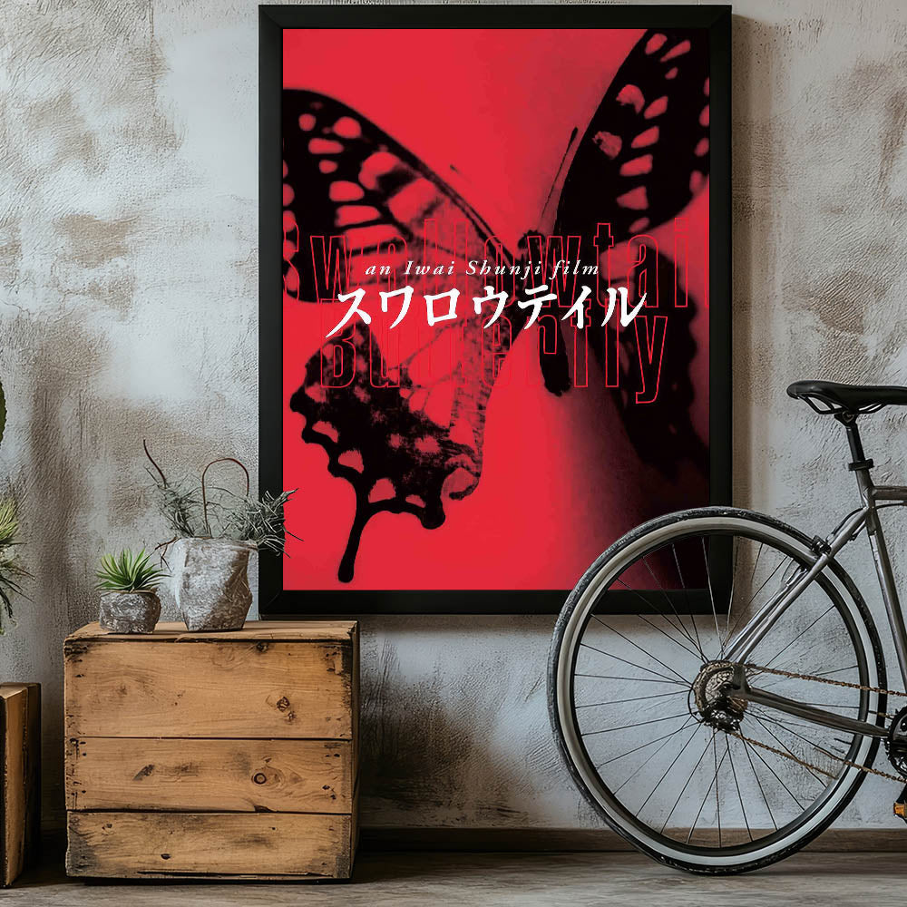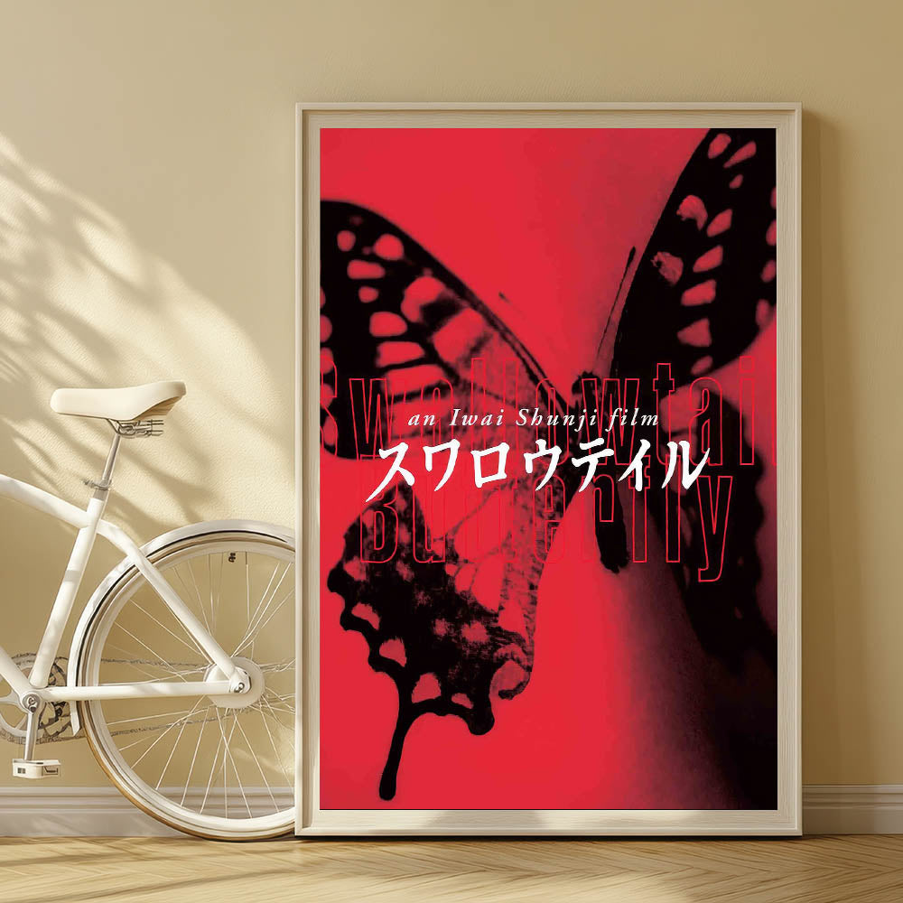 Experience the bold and artistic vision of nostalgic 90s cinema art with this vintage film poster from the 90s, featuring Swallowtail Butterfly by Shunji Iwai. This iconic 90s film poster showcases a striking red and black color scheme with an avant-garde aesthetic that perfectly embodies the film’s themes of survival, identity, and urban life. A must-have for collectors of international cinema and authentic 1990s movie collectibles.
