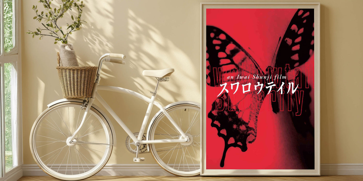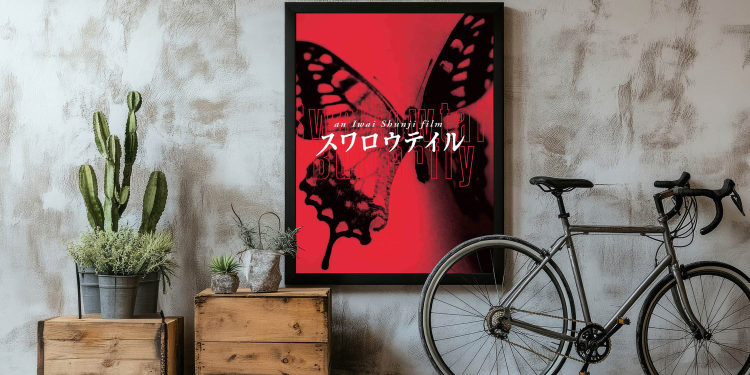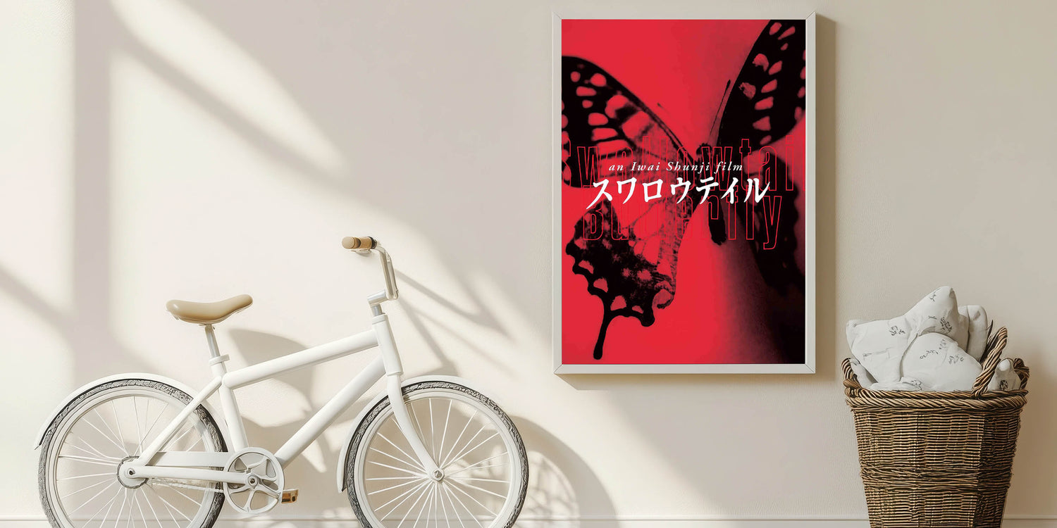 Experience the bold and artistic vision of nostalgic 90s cinema art with this vintage film poster from the 90s, featuring Swallowtail Butterfly by Shunji Iwai. This iconic 90s film poster showcases a striking red and black color scheme with an avant-garde aesthetic that perfectly embodies the film’s themes of survival, identity, and urban life. A must-have for collectors of international cinema and authentic 1990s movie collectibles.
