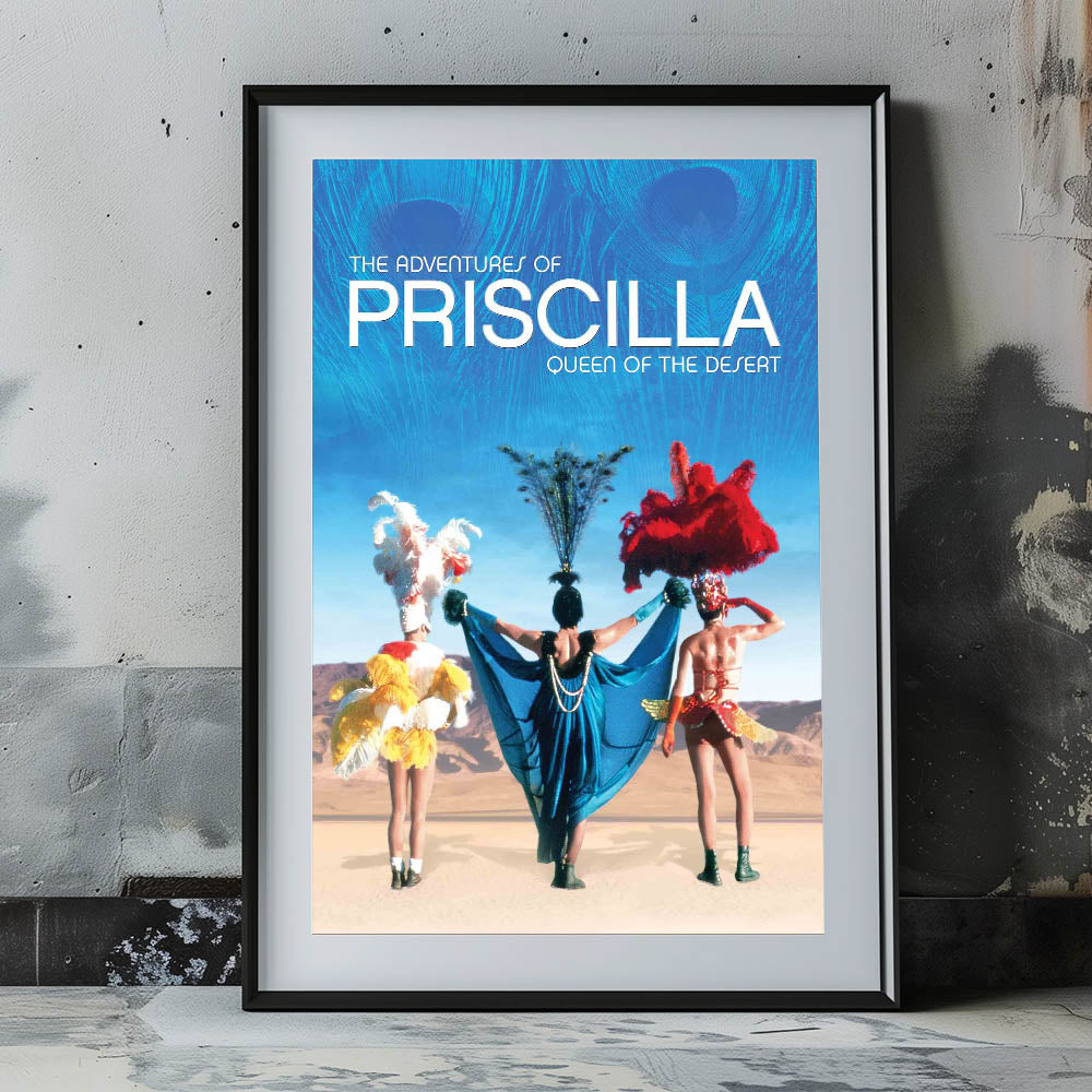 Step into the dazzling world of nostalgic 90s cinema art with this vintage film poster from the 90s, featuring the beloved cult classic The Adventures of Priscilla, Queen of the Desert. This iconic 90s film poster captures the vibrant energy, extravagant costumes, and breathtaking desert backdrop that made this film a standout in LGBTQ+ and independent cinema. A must-have for collectors and fans of authentic 1990s movie collectibles.