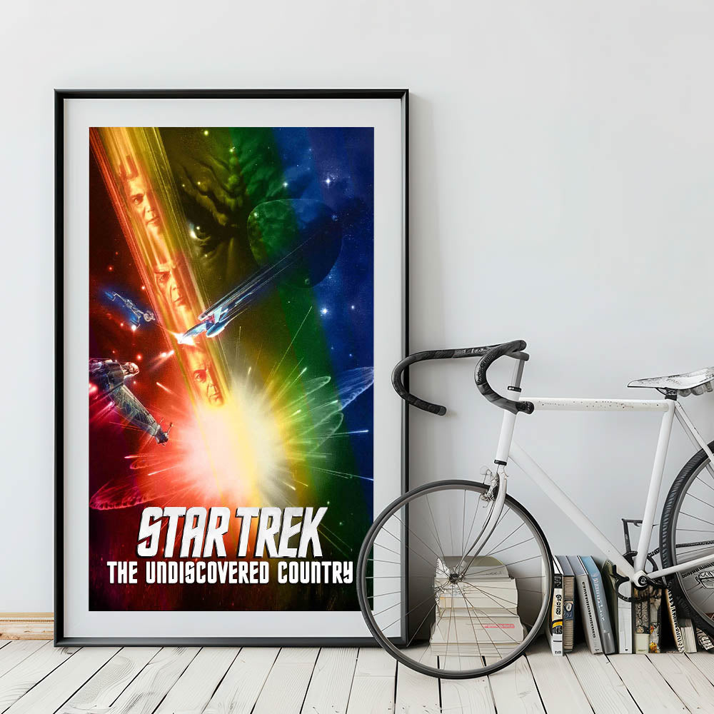 Bring home this retro 1990s movie print, designed to capture the essence of intergalactic adventure and cinematic history. Whether you are a Star Trek aficionado or simply love vintage movie posters, this artwork is a timeless tribute to classic 90s film art.