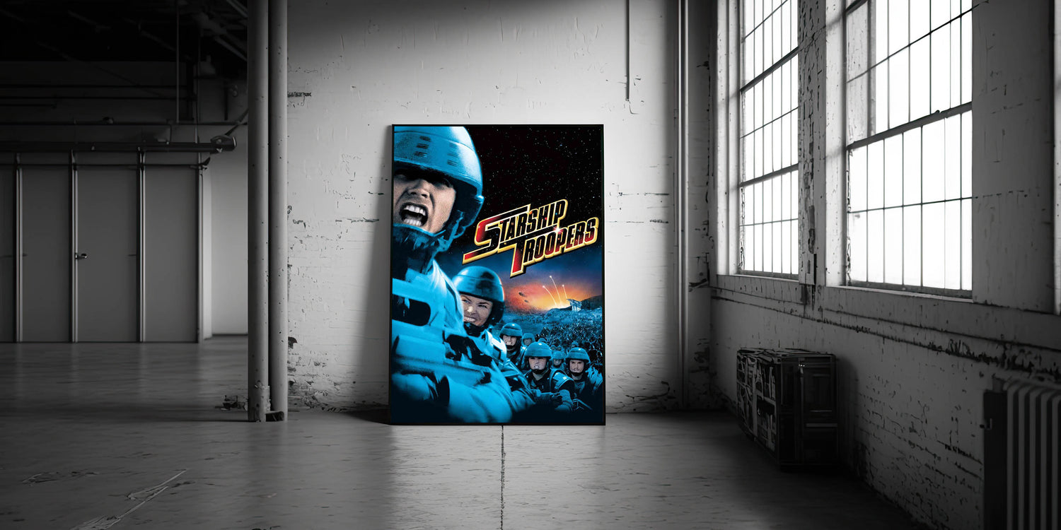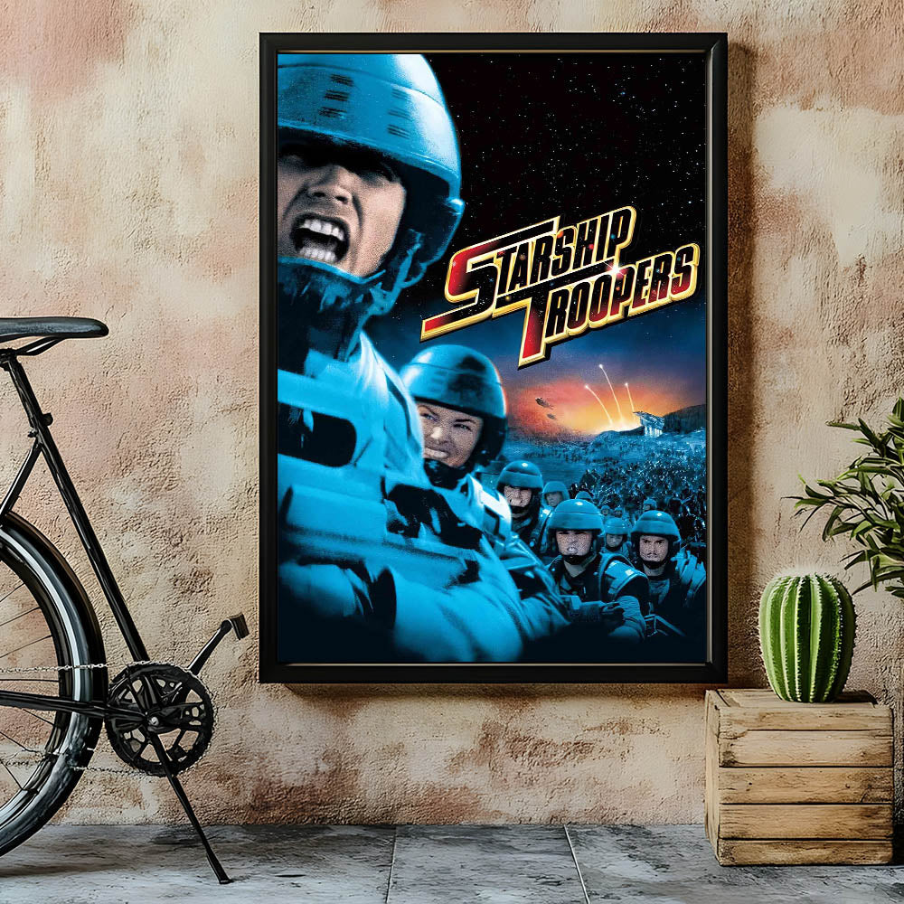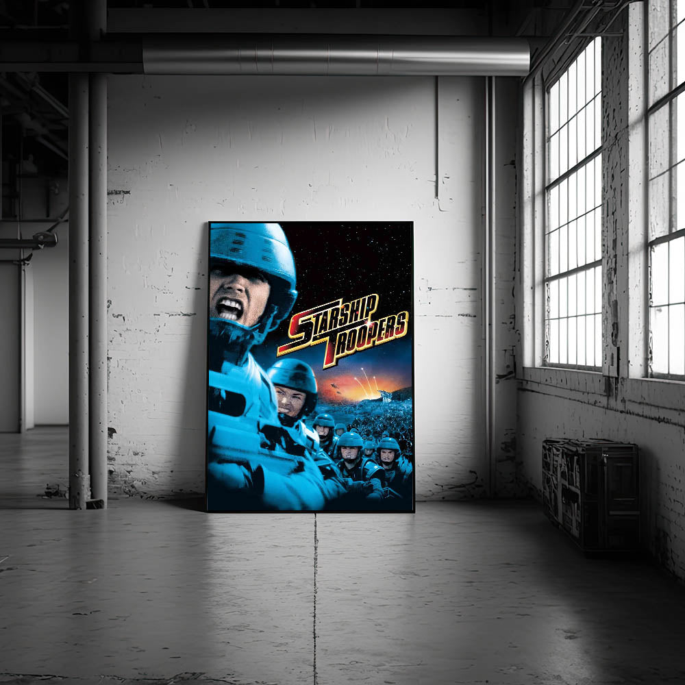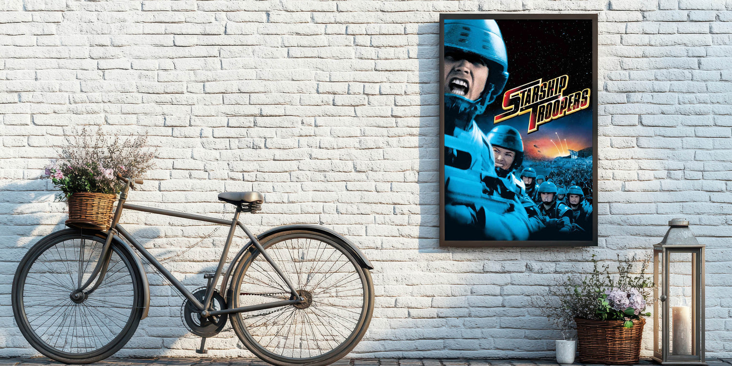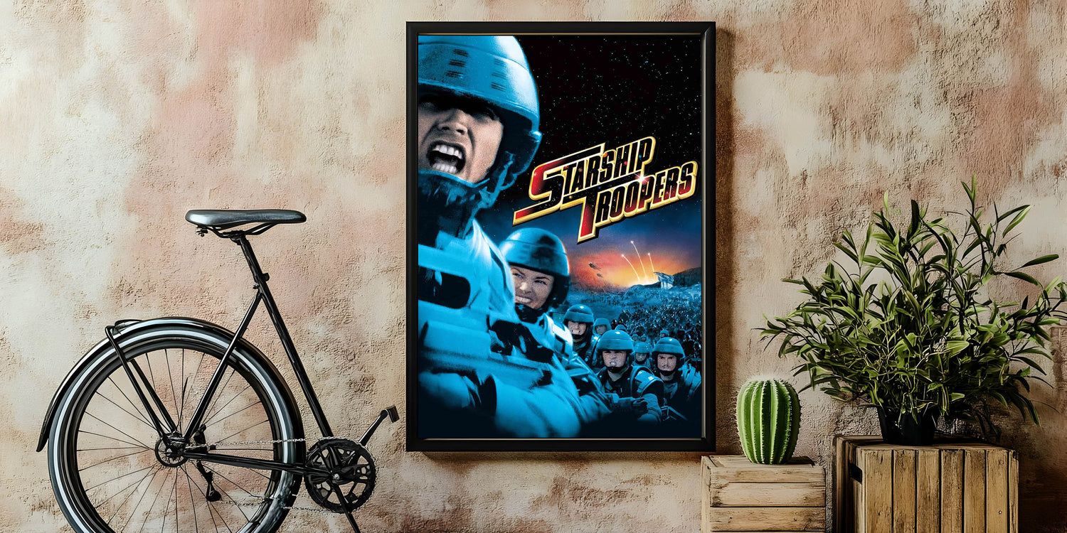 Immerse yourself in the nostalgic 90s cinema art with this vintage film poster from the 90s, featuring Starship Troopers. This iconic 90s film poster captures the action-packed energy of one of the most thrilling sci-fi films of the decade. With its bold visuals, dramatic battle scenes, and striking color contrast, this authentic 1990s movie collectible is a must-have for fans and collectors.