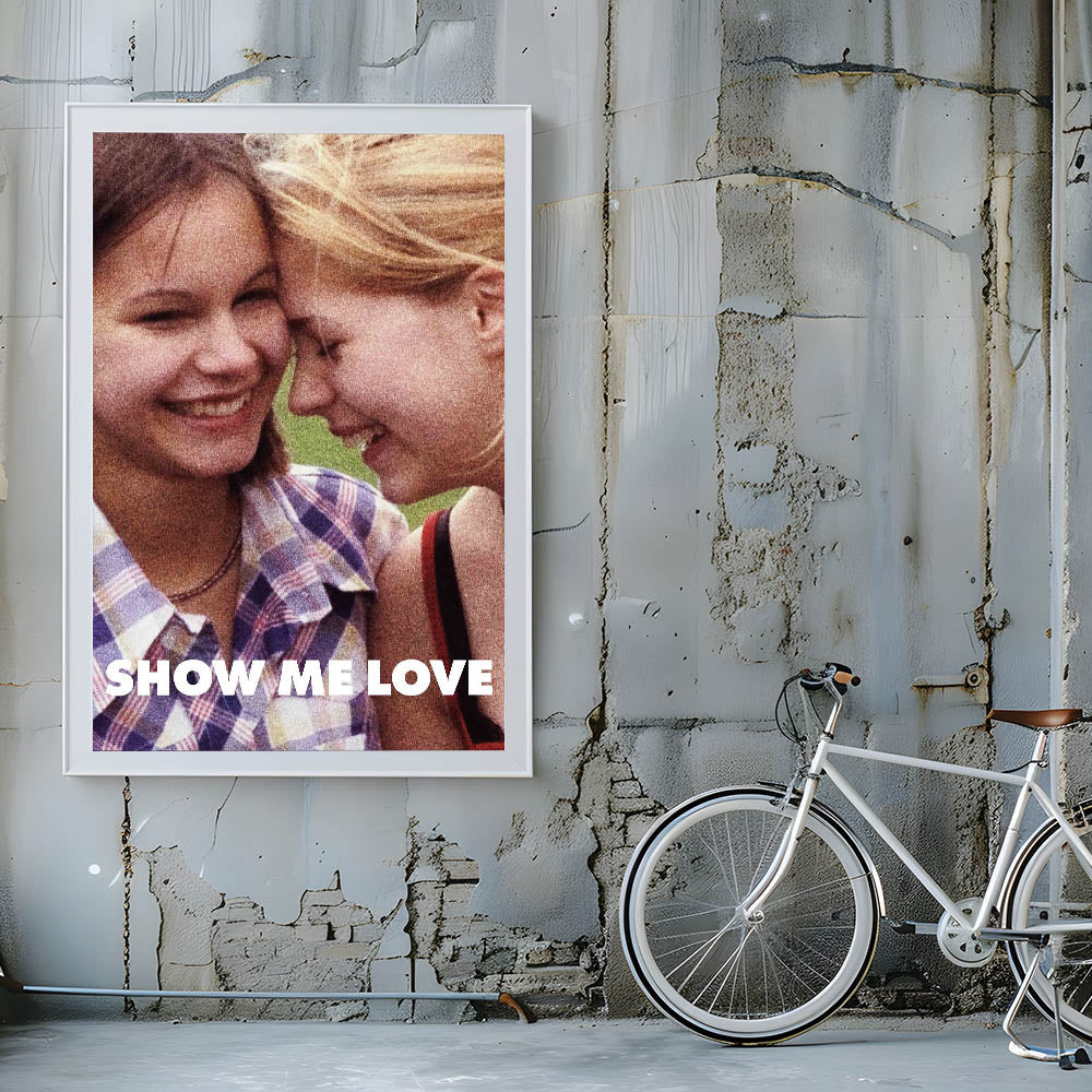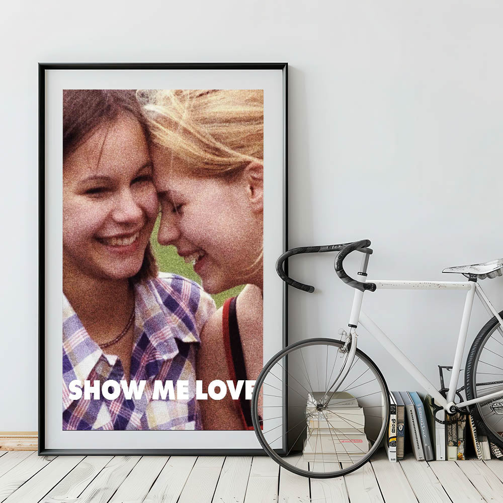Celebrate the spirit of young love and self-discovery with this 1990s vintage movie poster from Show Me Love (originally Fucking Åmål). A defining film of the late 90s, this classic 90s film art captures the raw emotions and authenticity of teenage romance and rebellion. The grainy, documentary-style image adds a nostalgic touch, making it a perfect addition to any nostalgic 90s cinema art collection.