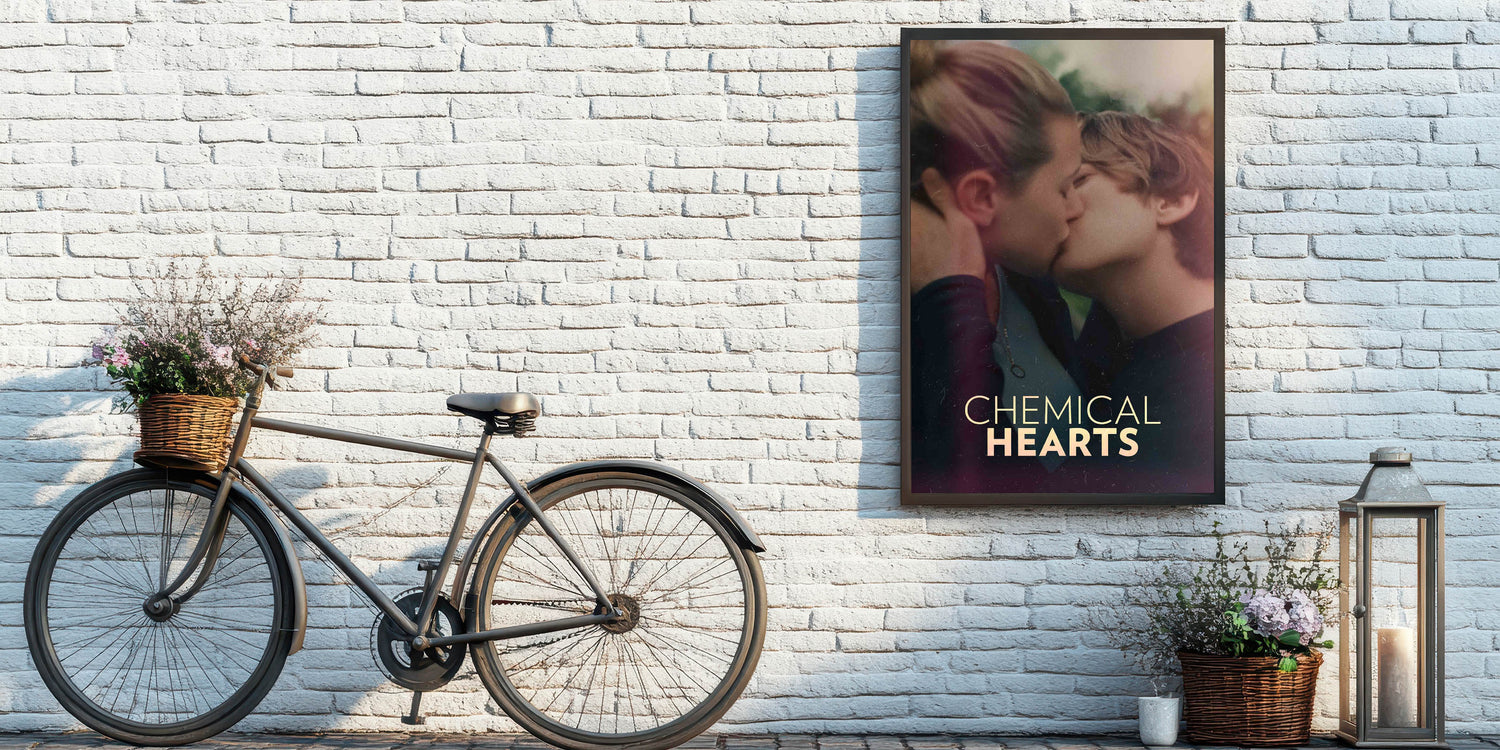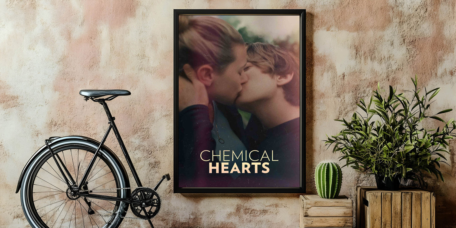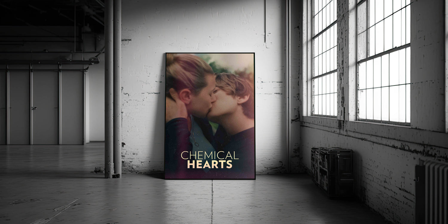 Capture the essence of young love with this striking Chemical Hearts vintage movie poster. The film explores the tender and complex emotions of a teenager as he navigates love, loss, and self-discovery. Featuring an intimate moment between the two leads, this poster beautifully conveys the raw, emotional nature of the story. Ideal for fans of coming-of-age films and romantic dramas, this art piece is a perfect addition to any collection.