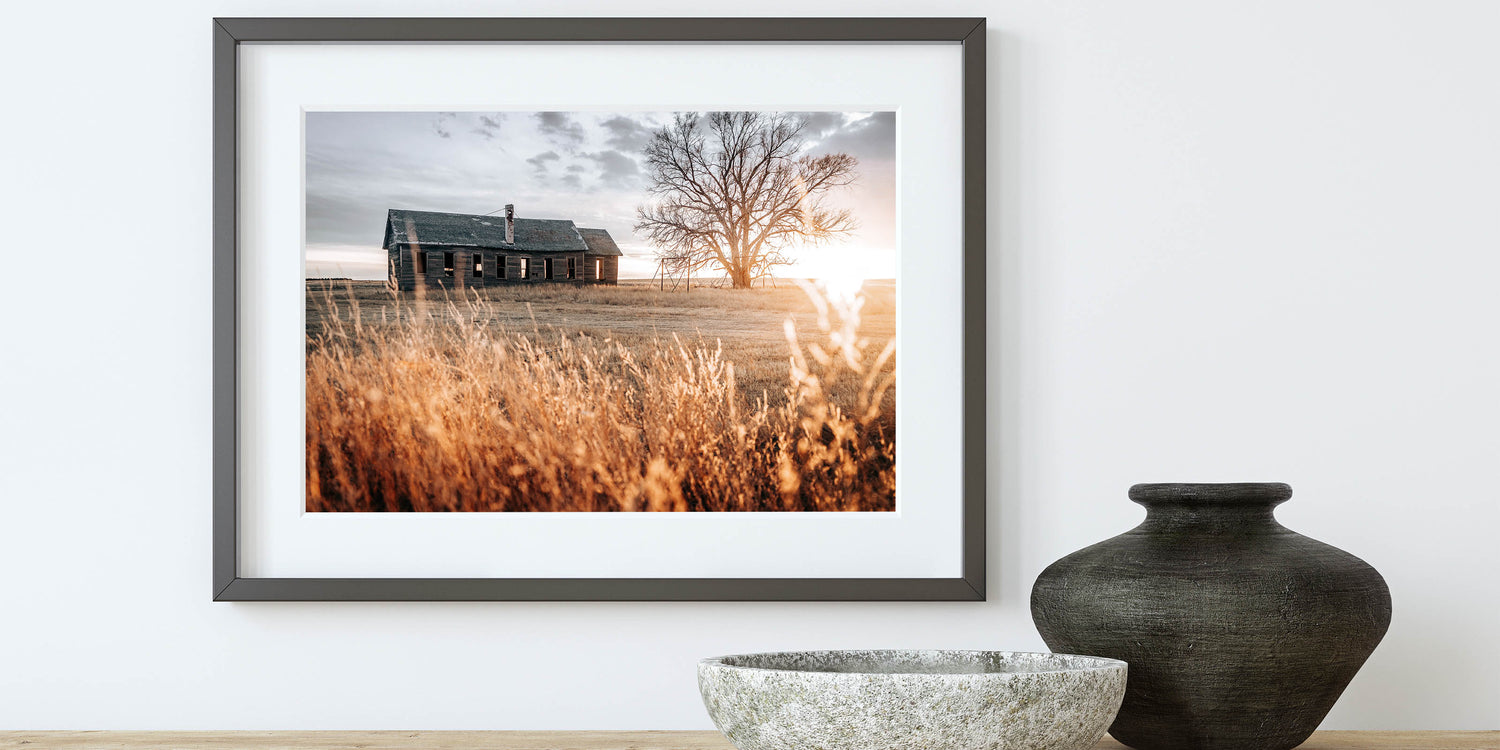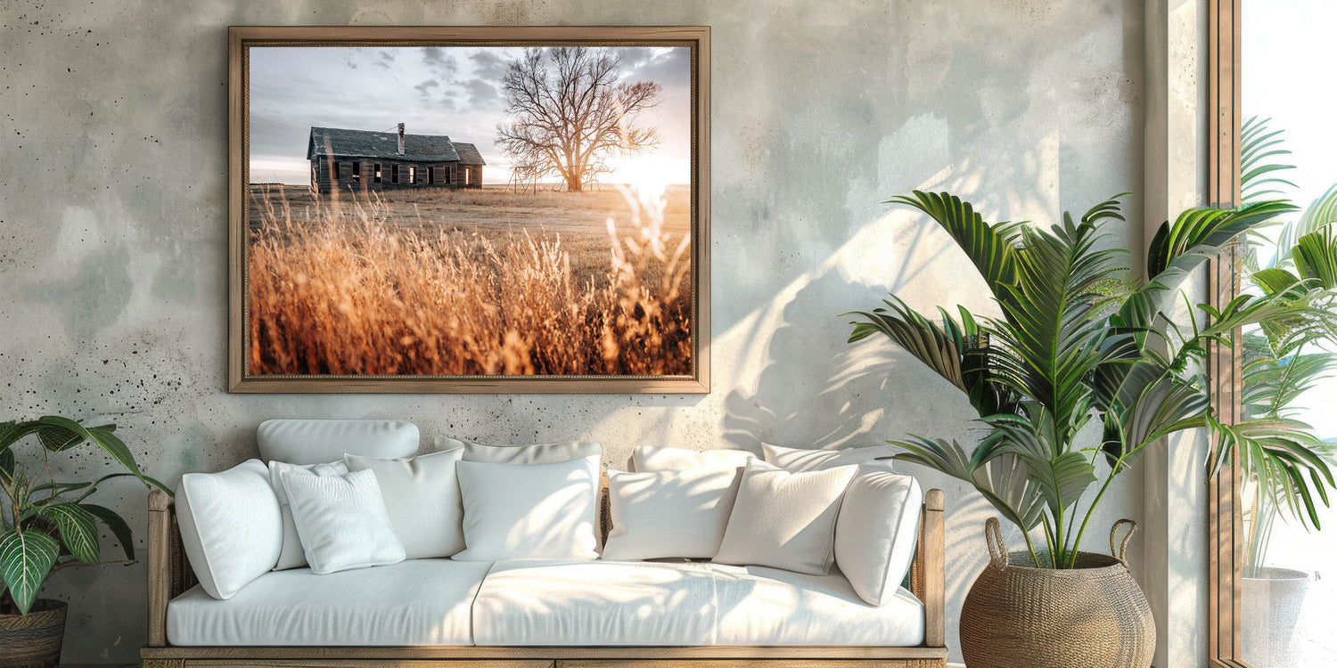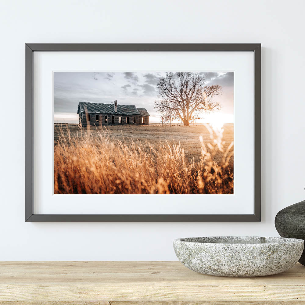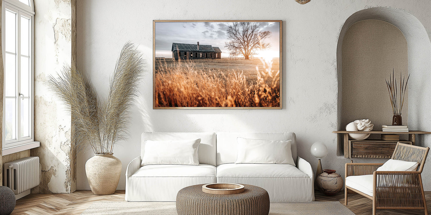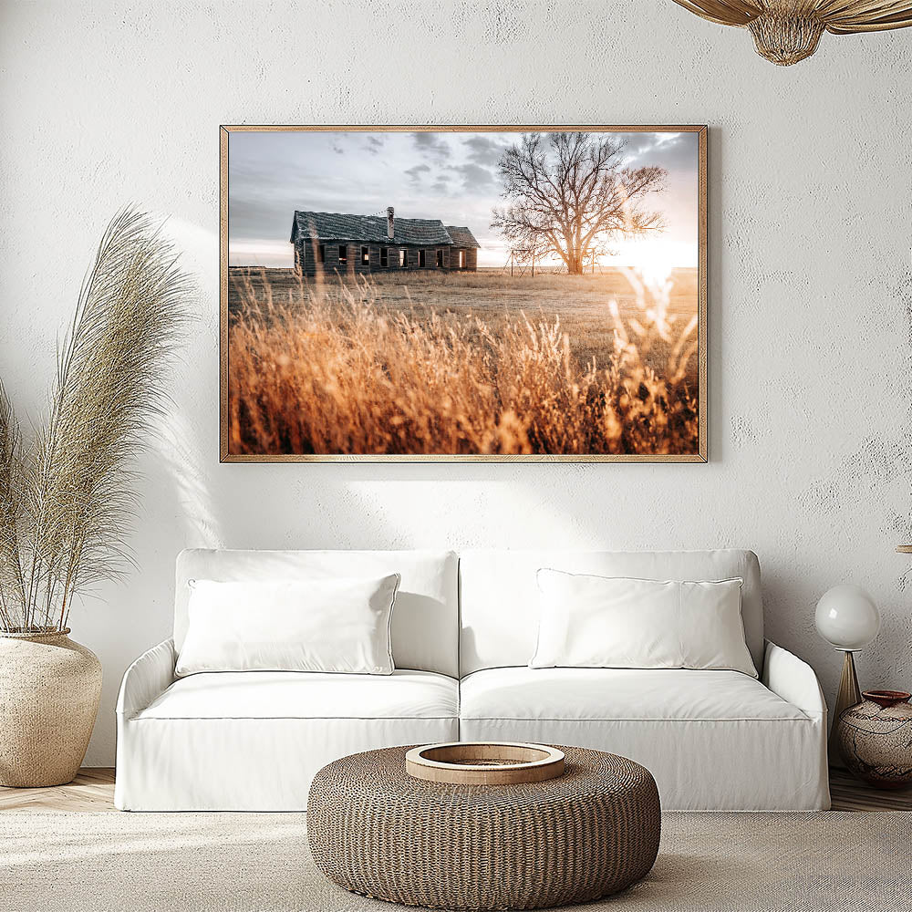 Abandoned Farmhouse at Sunset Wall Art – Rustic Country Decor Print