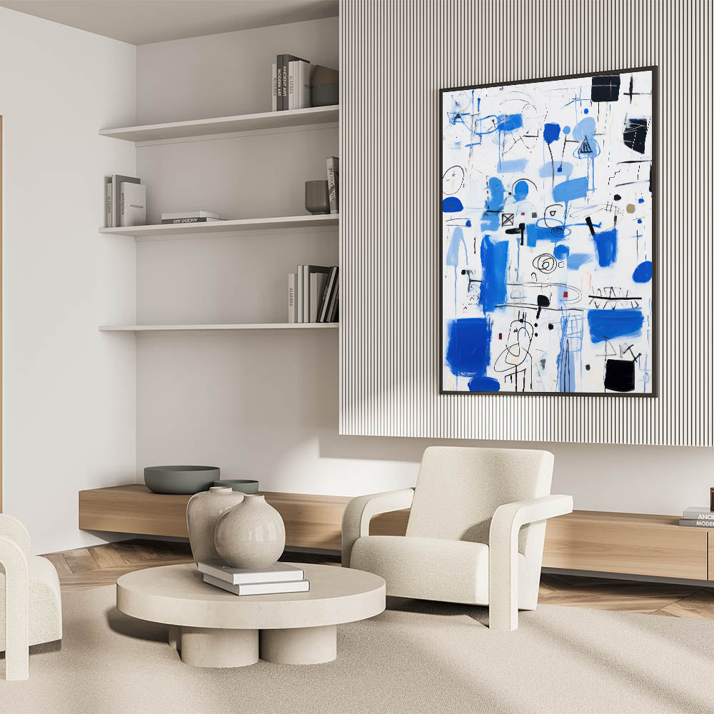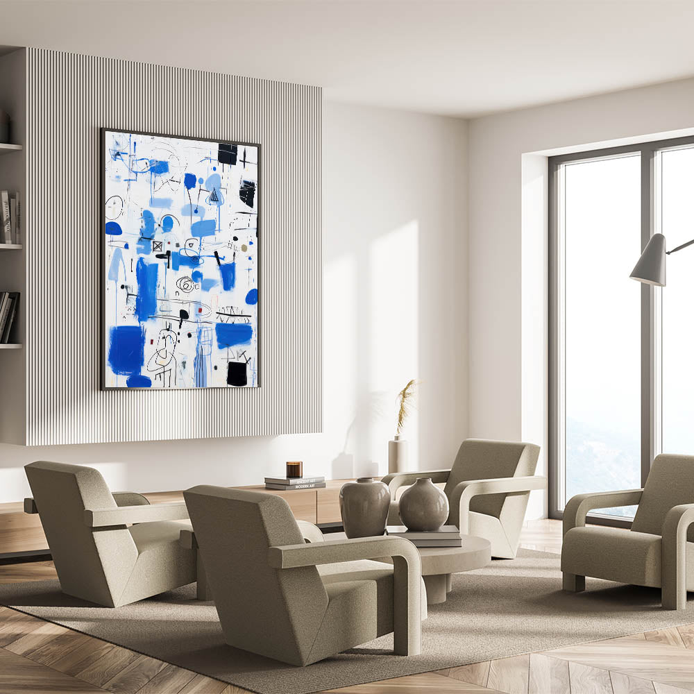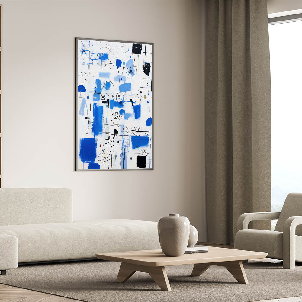 Bring energy and dynamism into your space with this abstract electric blue wall art. This modern piece features a captivating mix of vibrant blue strokes, black lines, and geometric forms. The composition is lively and free-flowing, making it a perfect addition to contemporary and electric-themed decor. Ideal for living rooms, offices, or creative spaces, this artwork serves as a bold focal point that draws attention and sparks conversation.