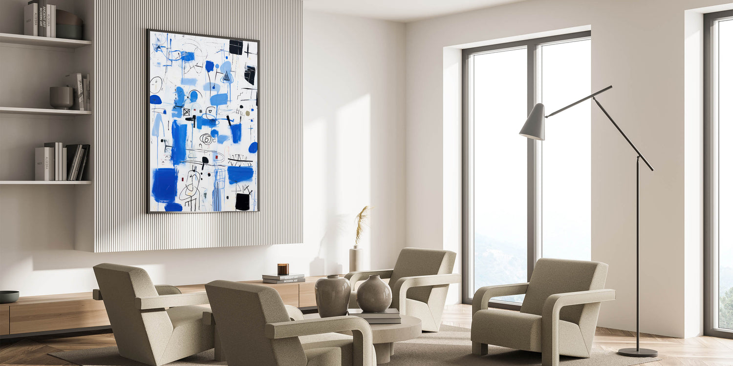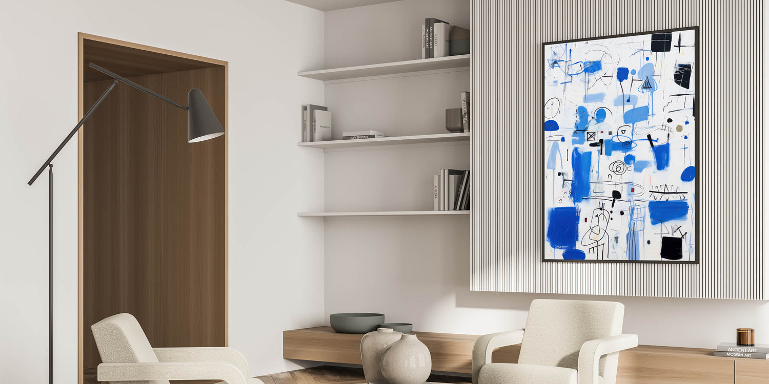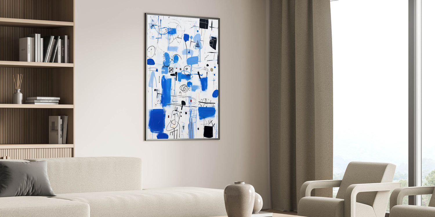 Bring energy and dynamism into your space with this abstract electric blue wall art. This modern piece features a captivating mix of vibrant blue strokes, black lines, and geometric forms. The composition is lively and free-flowing, making it a perfect addition to contemporary and electric-themed decor. Ideal for living rooms, offices, or creative spaces, this artwork serves as a bold focal point that draws attention and sparks conversation.