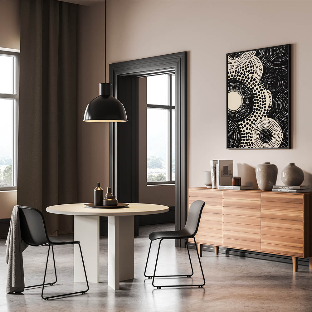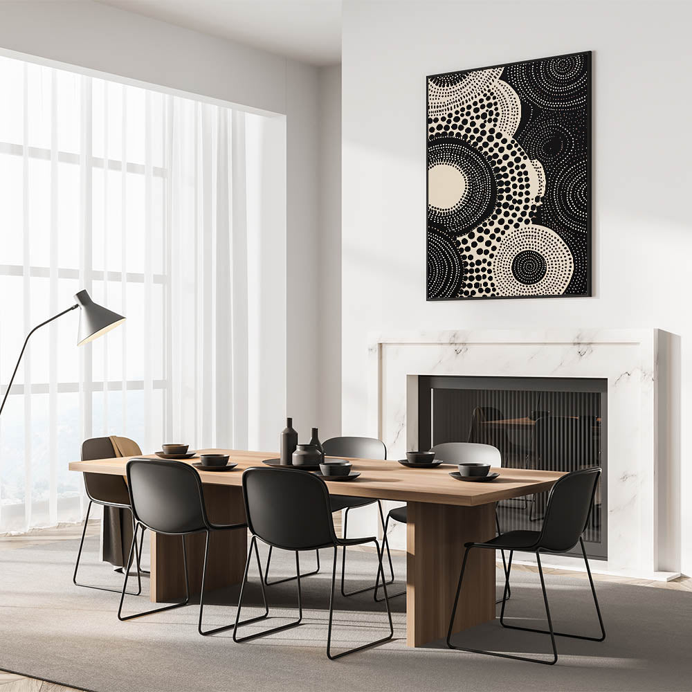 This colorful electric wall decor is ideal for those who appreciate abstract geometric patterns and a refined, monochrome look. The bold circles and detailed repetition make it a versatile piece that enhances any space, offering both style and sophistication.