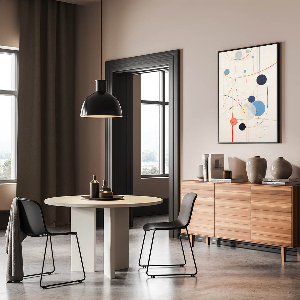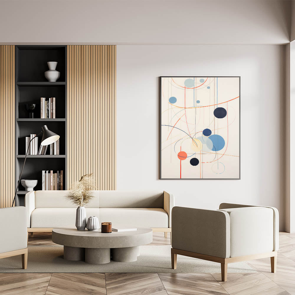 Bring dynamic energy into your space with the "Abstract Electric Geometric Canvas." This vibrant piece of electric wall art features an intricate composition of colorful geometric circles and lines, creating a visually captivating flow. With hues of blue, orange, and navy set against a soft background, this modern electric decor piece makes an ideal statement for contemporary and minimalist interiors.