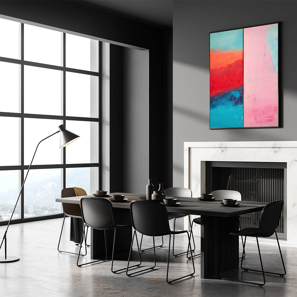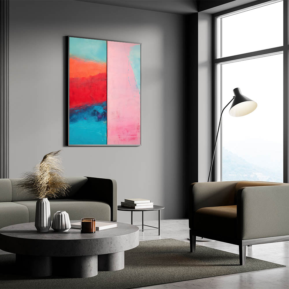 Add a bold and vibrant touch to your space with the Abstract Electric Pink and Turquoise Canvas. This stunning artwork features a striking combination of bright pink, rich red, and electric turquoise tones, creating a visually engaging and dynamic composition. The abstract brushstrokes and vivid colors bring an energetic and contemporary flair, perfect for those seeking to transform their interiors with modern electric-themed decor.