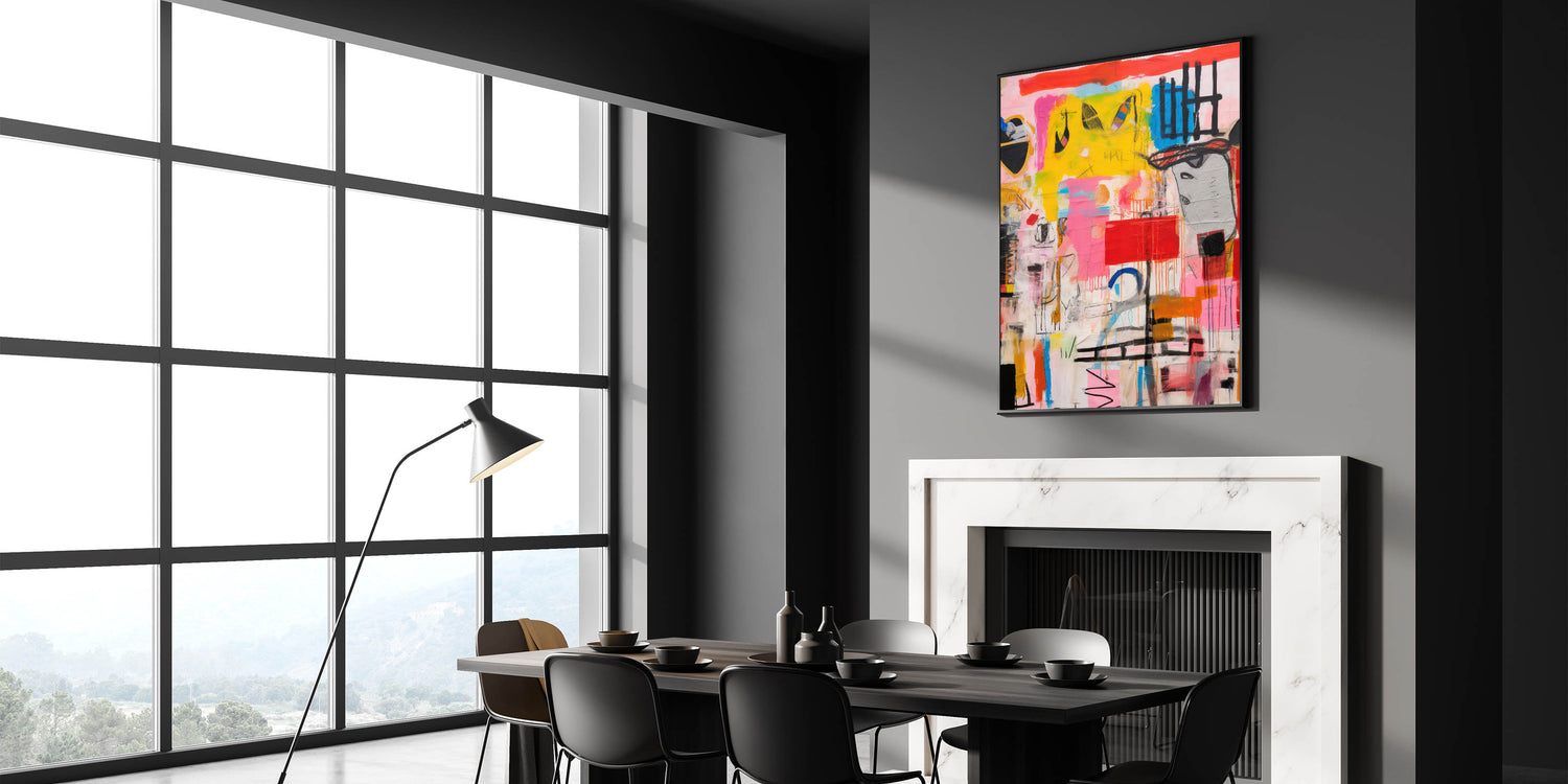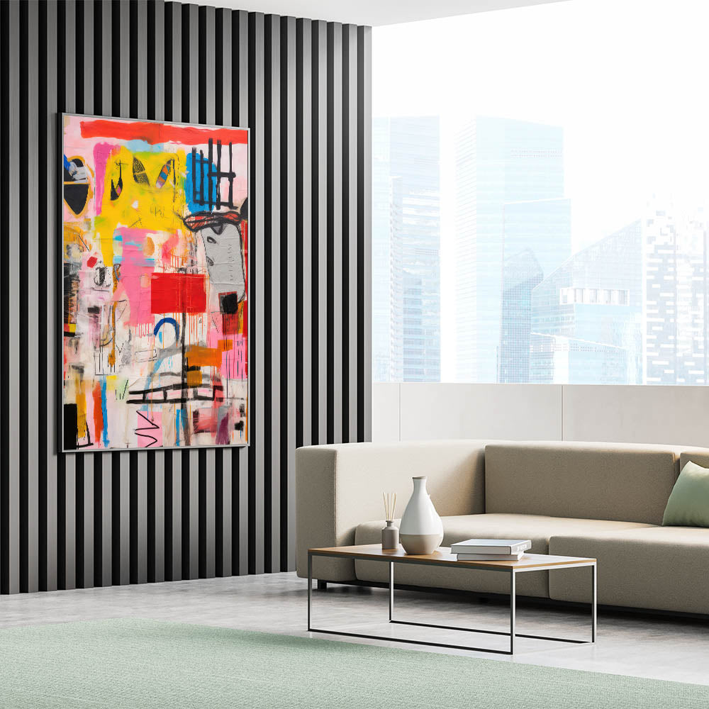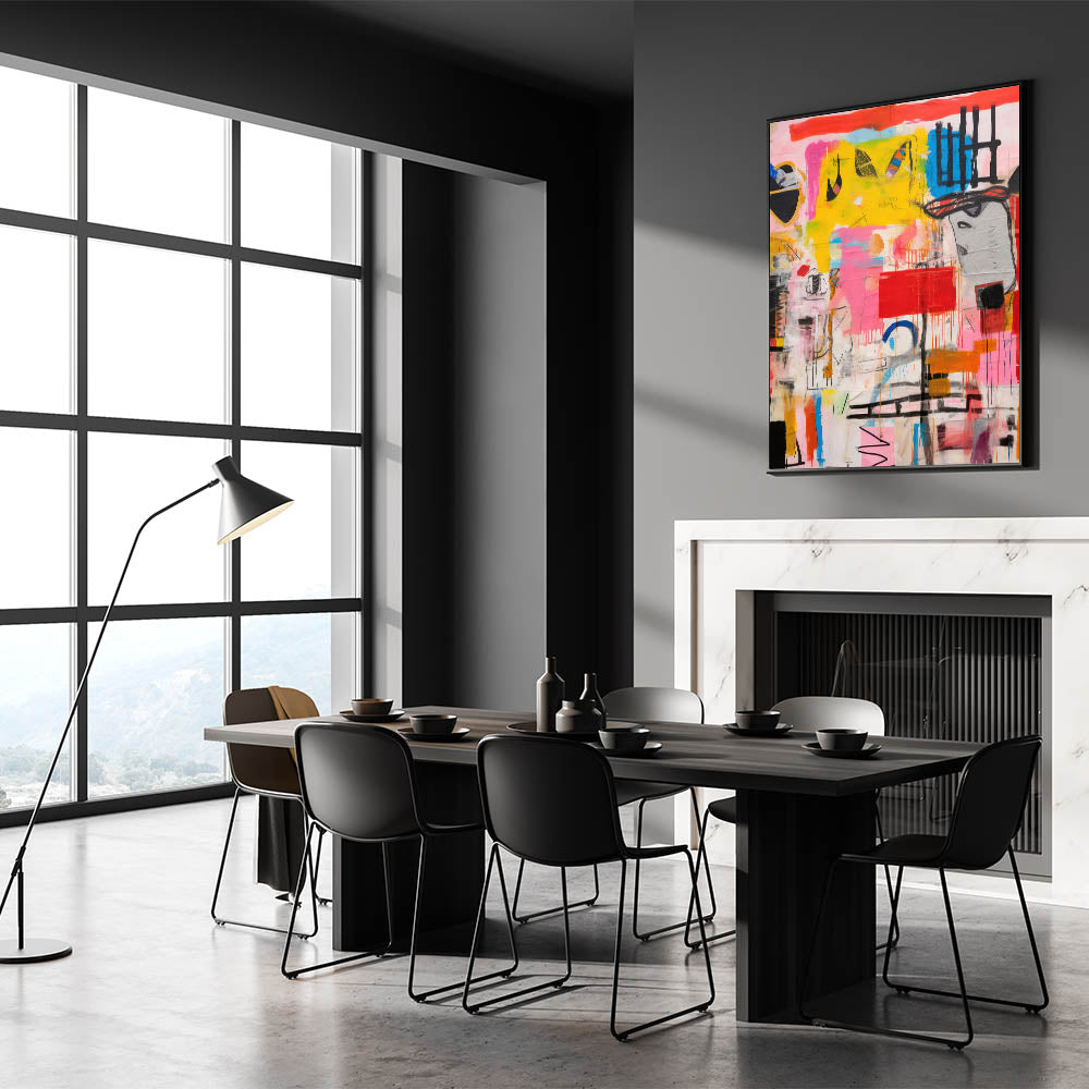 Add a bold and energetic touch to your space with the Abstract Electric Pop Art Canvas. This dynamic piece features a striking combination of bright yellows, pinks, blues, and reds, creating an eye-catching composition that embodies the electric and modern pop art aesthetic. The expressive brushstrokes and vivid colors bring a sense of movement and excitement, making it a perfect focal point for those looking to transform their interiors with an electric, contemporary flair.