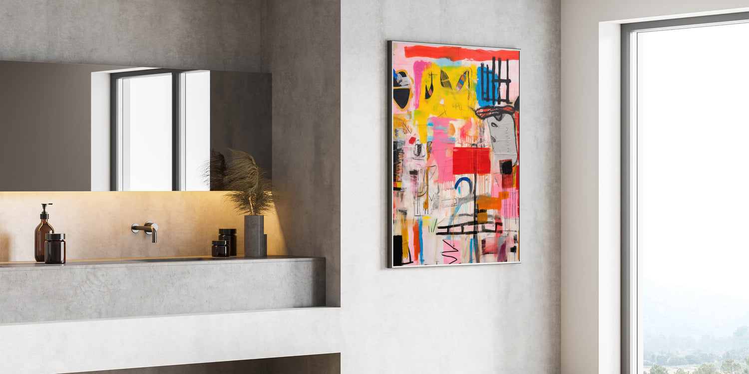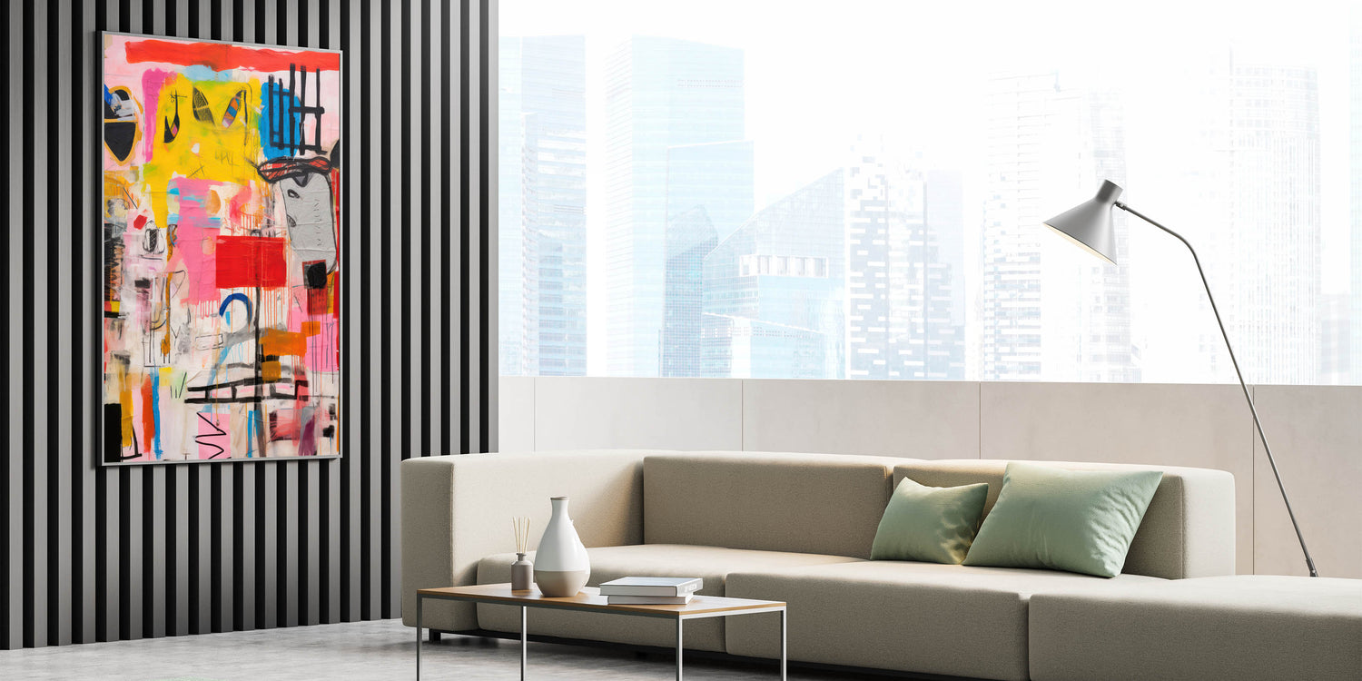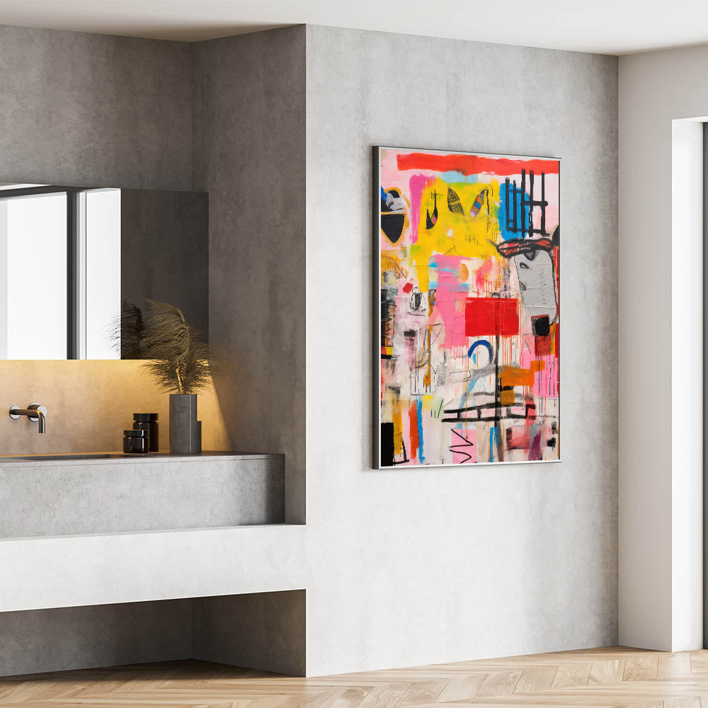 Add a bold and energetic touch to your space with the Abstract Electric Pop Art Canvas. This dynamic piece features a striking combination of bright yellows, pinks, blues, and reds, creating an eye-catching composition that embodies the electric and modern pop art aesthetic. The expressive brushstrokes and vivid colors bring a sense of movement and excitement, making it a perfect focal point for those looking to transform their interiors with an electric, contemporary flair.