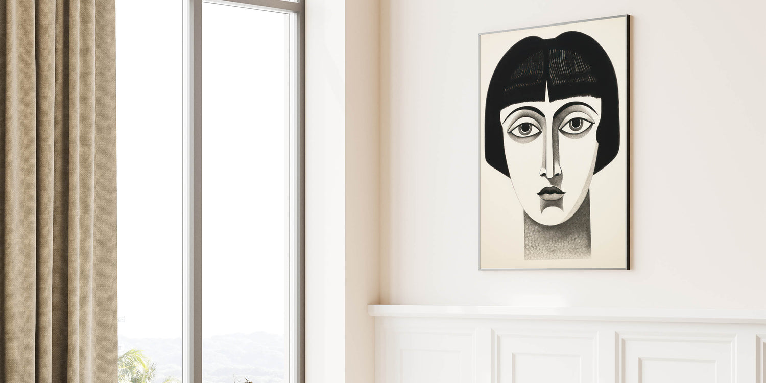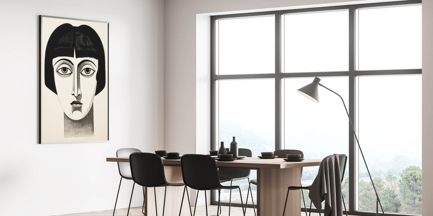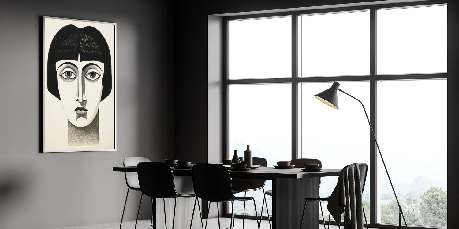 Add a striking and sophisticated touch to your decor with the Abstract Electric Portrait Canvas. This monochromatic artwork showcases a bold face with sharp, geometric lines and intense, expressive eyes, rendered in black and white. The clean and minimalistic design captures an electric aesthetic that merges modern and classic styles. This piece is perfect for those who appreciate contemporary, abstract portraiture with a touch of elegance.