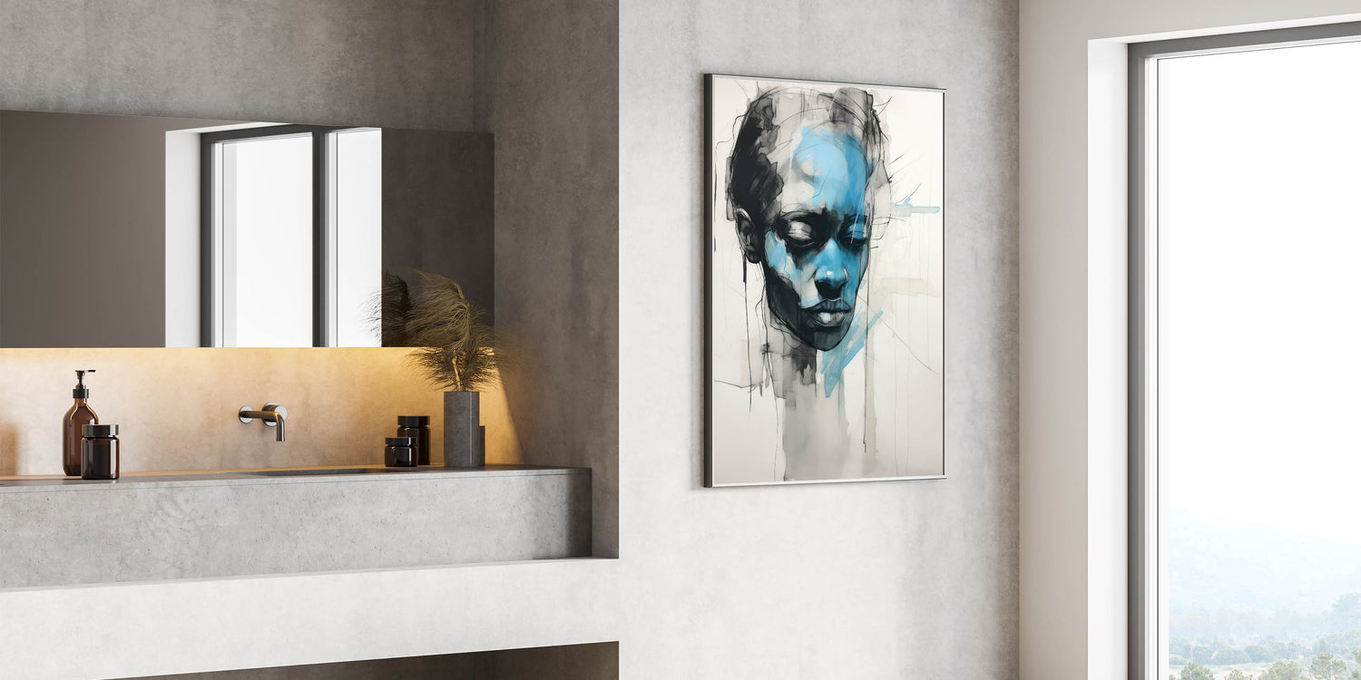 This colorful electric wall decor is ideal for art enthusiasts who appreciate abstract expression and emotive portraiture. The combination of subtle gray tones and striking blue accents creates a visually impactful and versatile piece that enhances any space with elegance and artistic depth.